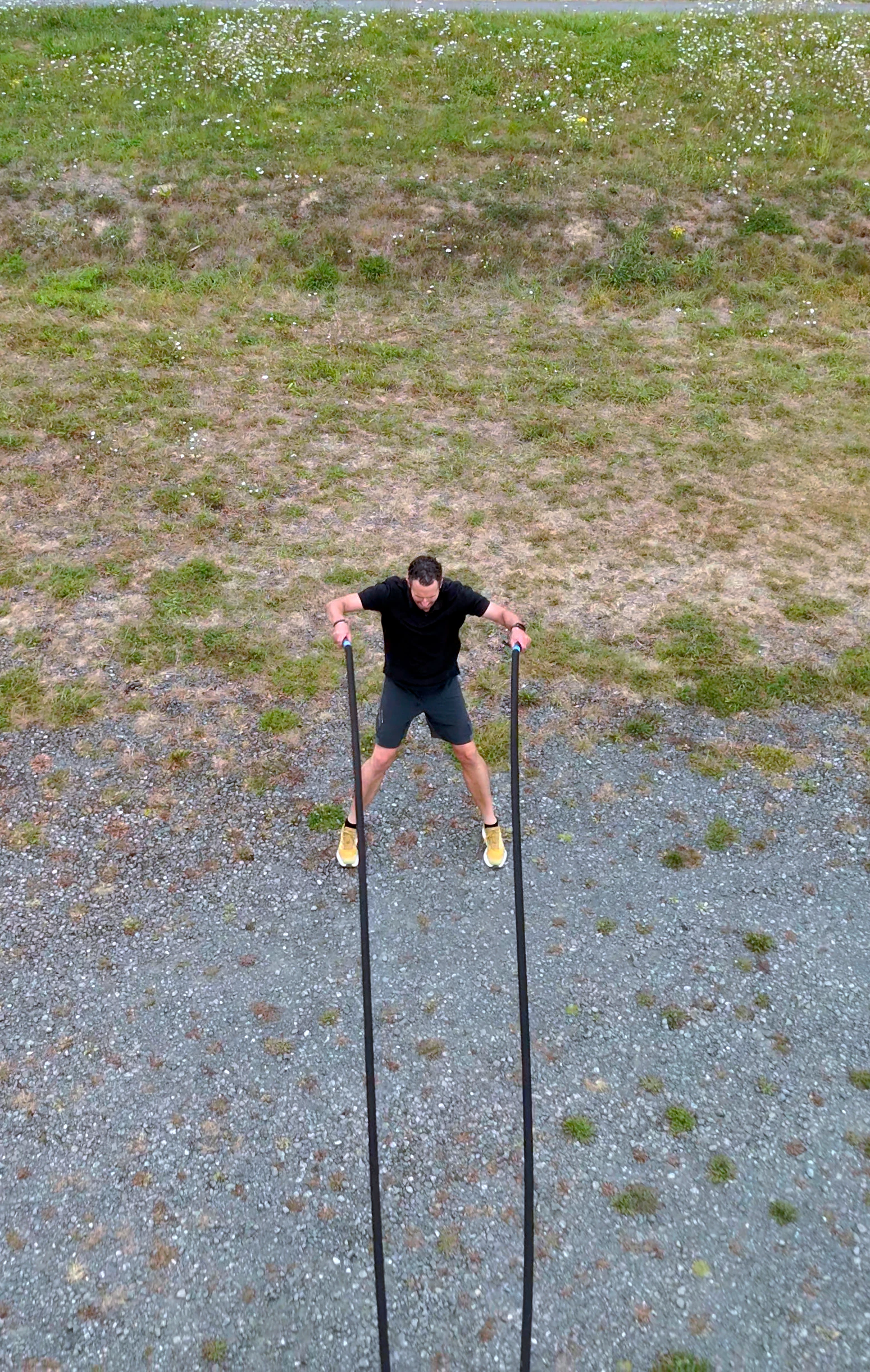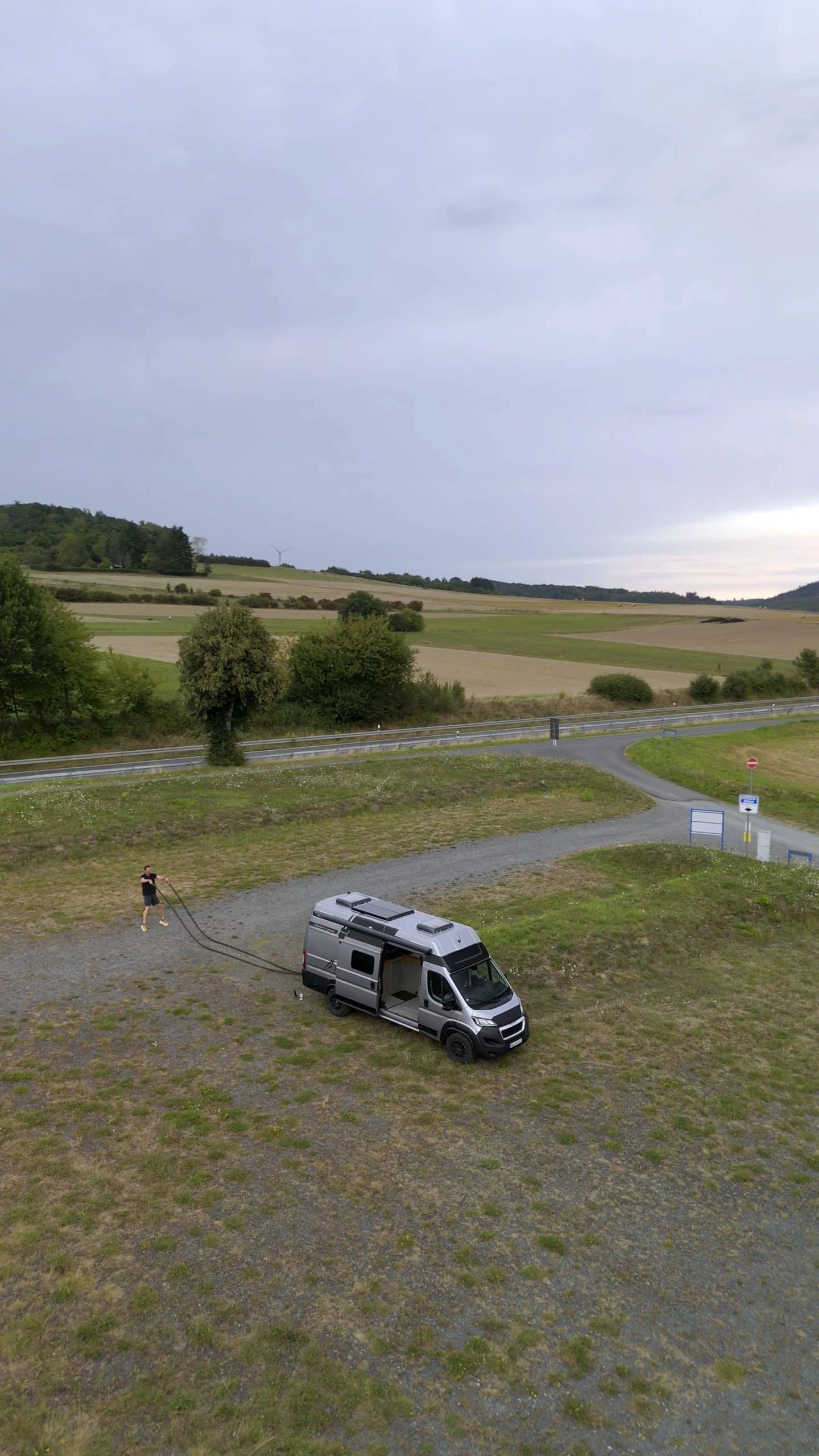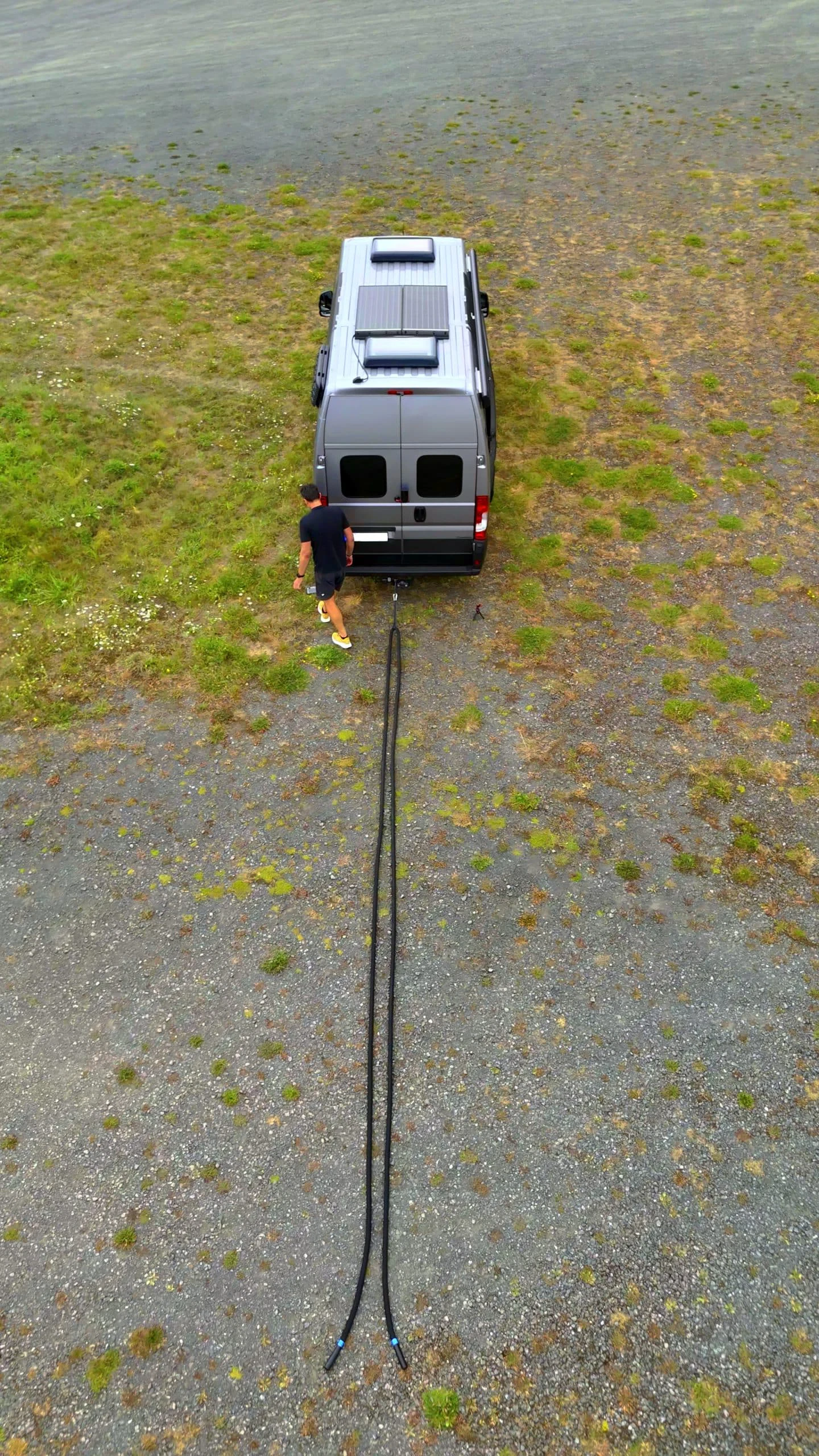 Das Training mit dem 12-kg-Seil war intensiver als erwartet. Die hohe Belastung sorgt dafür, dass Arme, Schultern, Rumpf und Beine gleichermaßen gefordert werden – ein effektives Ganzkörpertraining, das schnell an die eigenen Grenzen bringt. Wichtig: Für Workouts am Camper sollte man mindestens acht Meter Platz hinter dem Fahrzeug einplanen.
