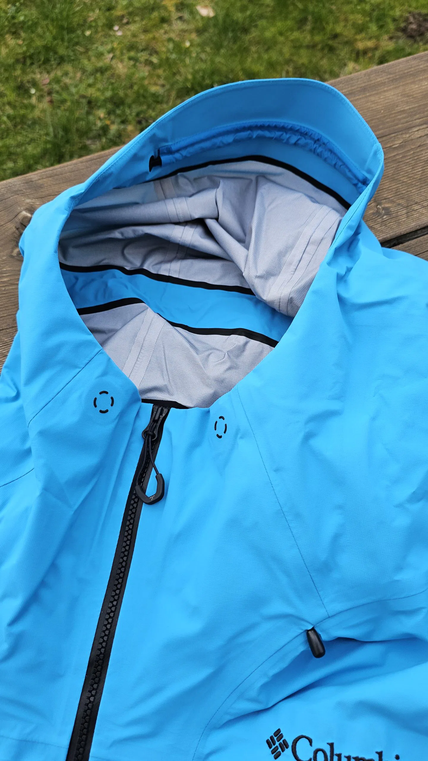 Die auffällige Farbgebung der Jacke sticht direkt ins Auge und unterstreicht den technischen, alpinen Anspruch. Das Material wirkt von Anfang an sehr robust und nahezu „unkaputtbar“, bringt dadurch aber auch ein spürbar höheres Gewicht sowie eine gewisse Steifigkeit mit sich. Typisch für die OutDry™ Extreme Konstruktion liegt die Membran außen, was der Jacke eine etwas ungewohnte, leicht gummiartige Haptik verleiht. Gleichzeitig sorgt genau diese Bauweise dafür, dass sich das Material nicht mit Wasser vollsaugt. Die Verarbeitung ist durchweg auf hohem Niveau: sauber verschweißte Nähte, stabile Reißverschlüsse und insgesamt ein sehr wertiger Eindruck. Auch Details wie die präzise einstellbare, helmkompatible Kapuze und die gut integrierten Belüftungsöffnungen fügen sich stimmig ins Gesamtbild ein.