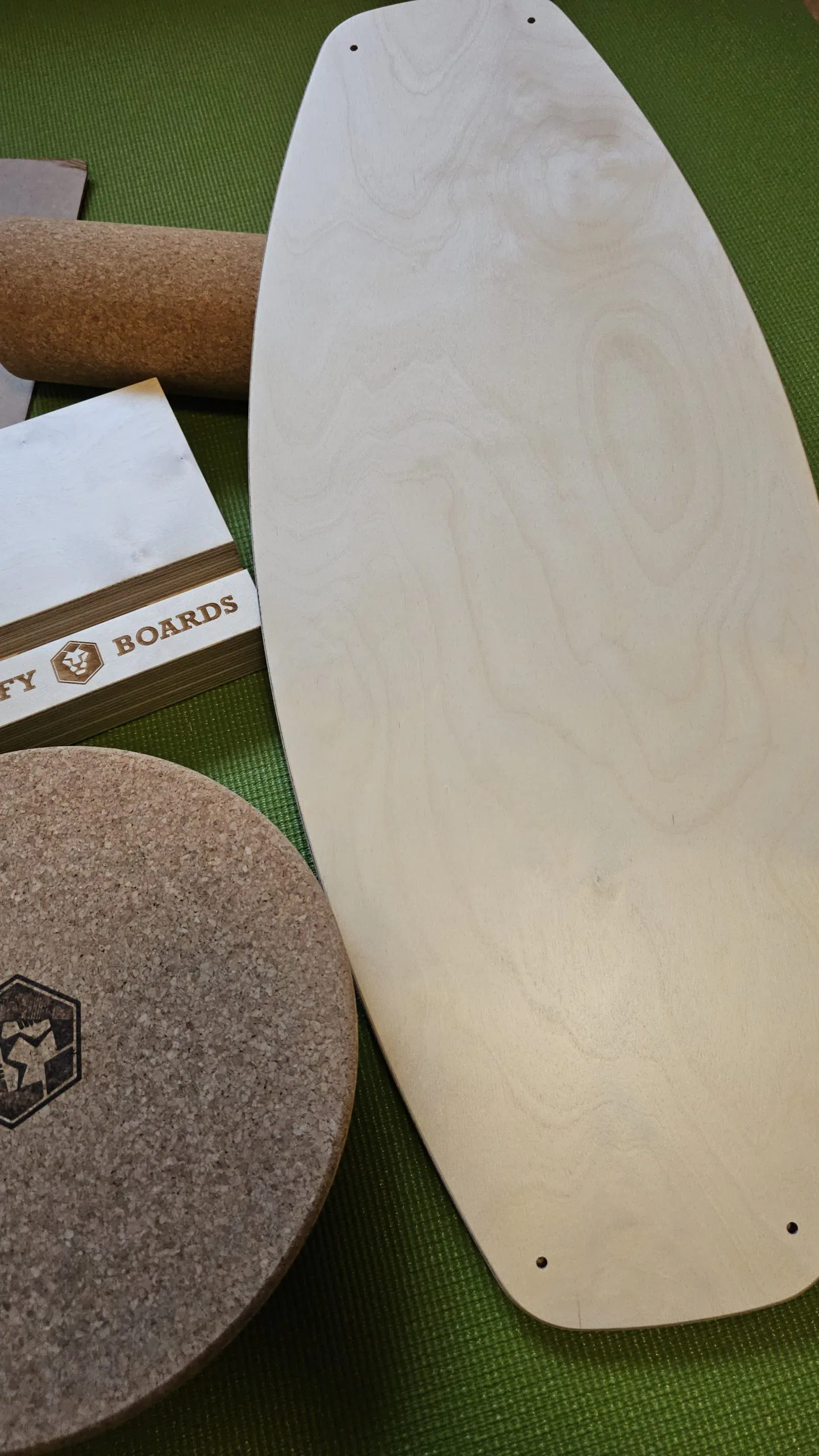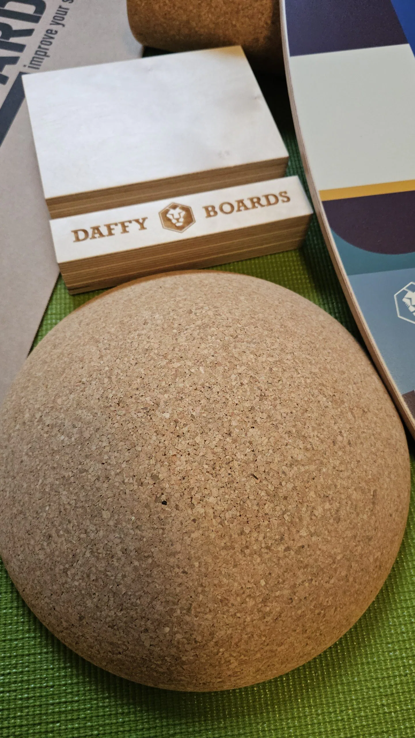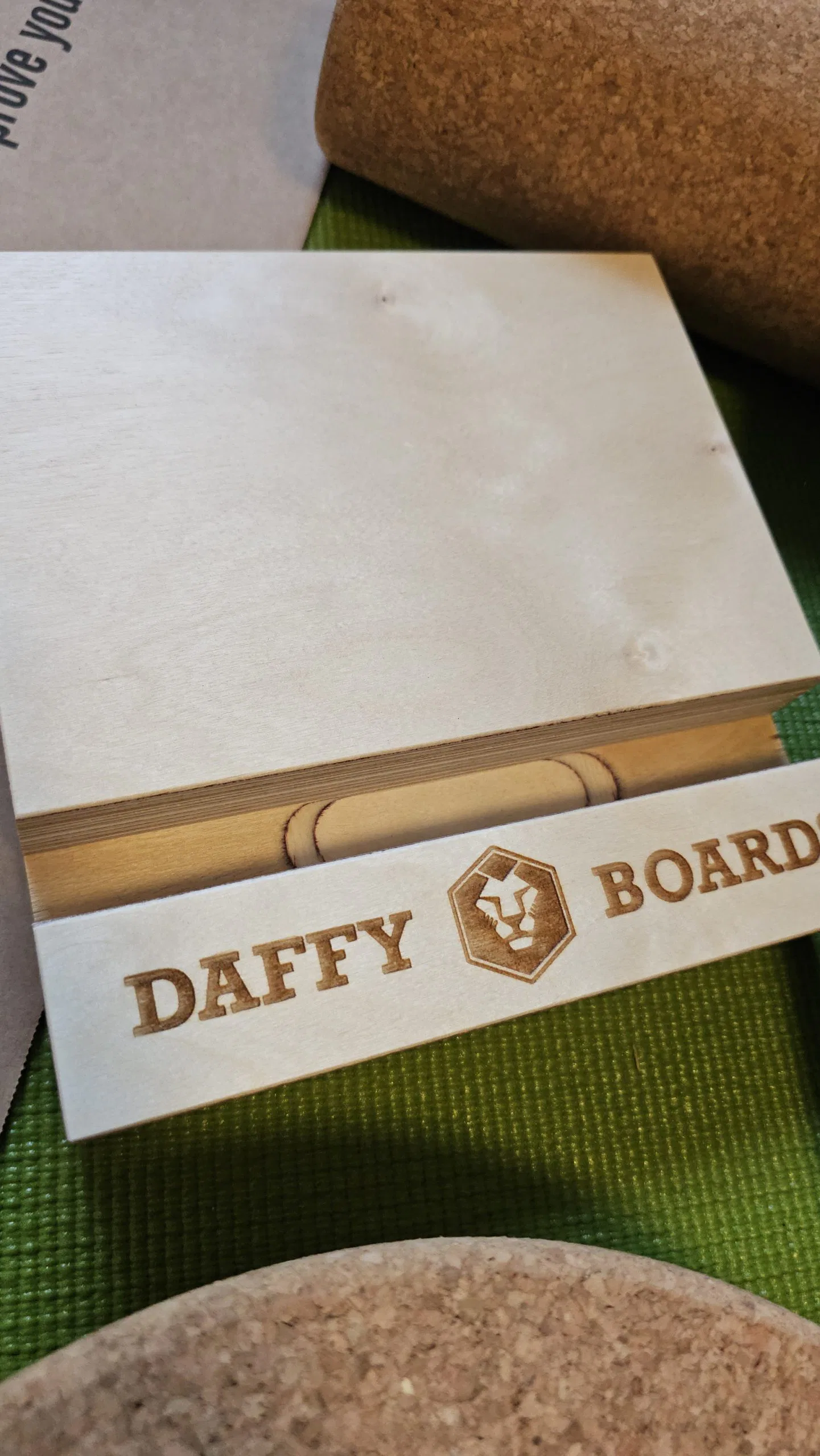 Beim Auspacken hinterlässt das Daffy Boards Balance Board sofort einen hochwertigen Eindruck. Das mehrschichtig verleimte Holzdeck ist sauber verarbeitet, die Oberfläche gleichmäßig beschichtet und angenehm griffig. Die Kanten sind sauber gerundet, nichts wirkt scharf oder unsauber. Auch die Korkrolle überzeugt durch feste Struktur und gleichmäßige Form. Sie läuft ruhig, ohne Ruckeln oder seitliches Wegrutschen. Insgesamt wirkt das Set durchdacht, stabil und langlebig – ein Balanceboard, das vom ersten Moment an Vertrauen schafft.
