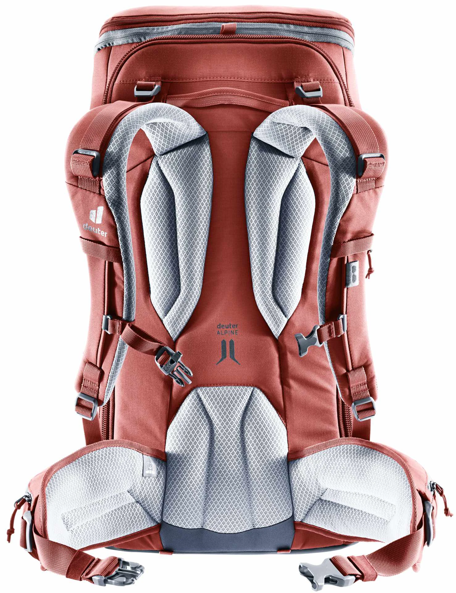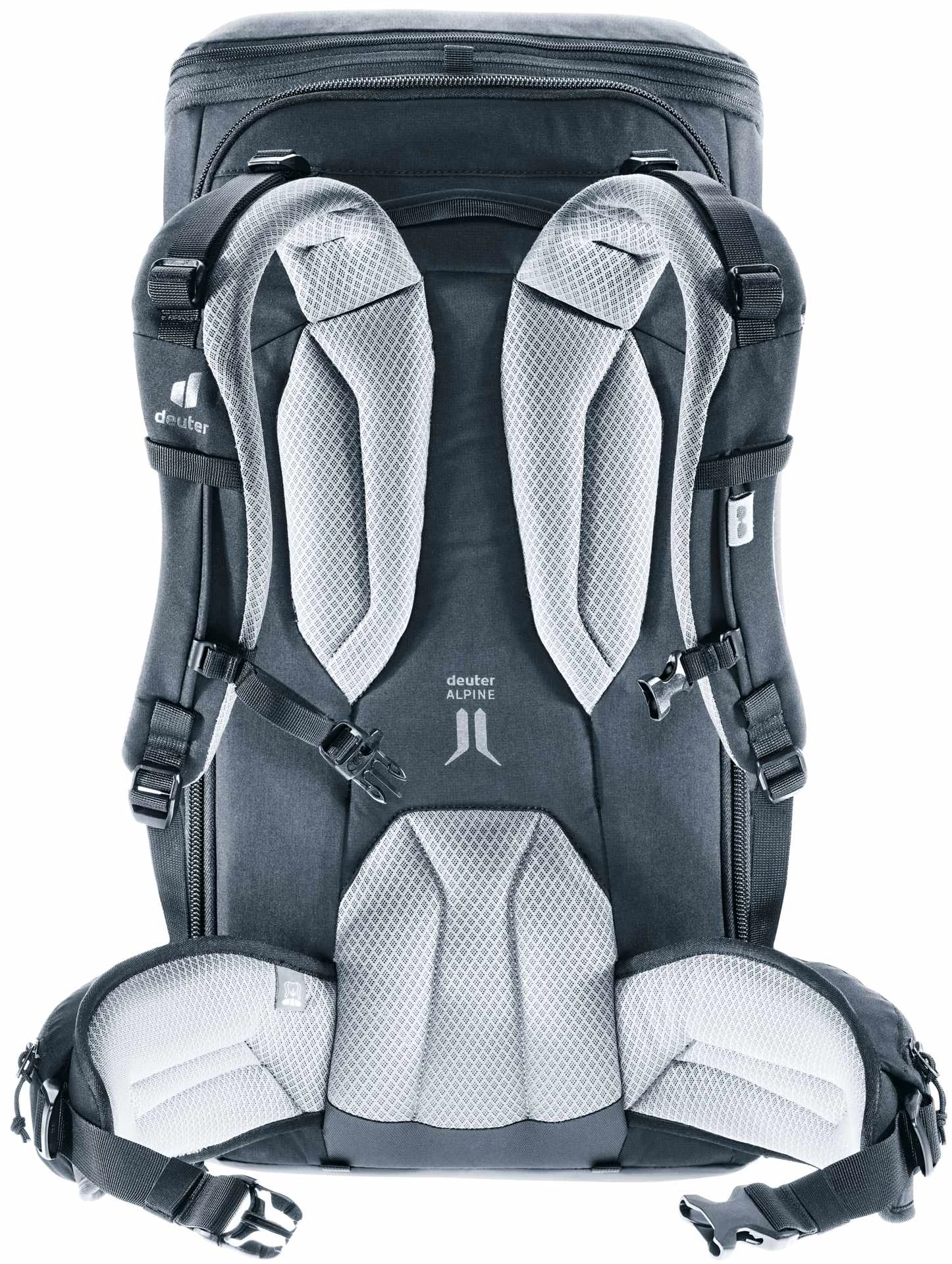 Den Rucksack gibt es nur in einer Größe. Das Rückenpanel mit den Tragriemen und dem Hüftgurt ist aus dem deuter ALPINE Back System und hier merkt man einfach die enorme Erfahrung, die deuter mit Rucksäcken hat! Dank einer großartigen Polsterung an den Riemen und den gut positionierten Rücken- und Hüftpolterelementen lässt sich der Rucksack nach dem ersten Einstellen auch beladen sehr angenehm tragen. Beim Testen wurden dabei zwischen 6 und 9 kg Material im und am Rucksack getragen und damit kommt dieser aus sehr gut zurecht. Hier ist gefühlt noch einiges mehr an Gewicht möglich, bis der Rucksack an seine Grenzen kommt. Zwischen den Polsterelementen ist zur Belüftung des Rückens etwas Platz vorhanden. Wie gut dies funktioniert, konnte im Winter allerdings nicht getestet werden. Wer mag, kann den Hüftgurt auch einfach abnehmen, was bei einem vollen Rucksack dieser Größe allerdings weniger sinnvoll erscheint.