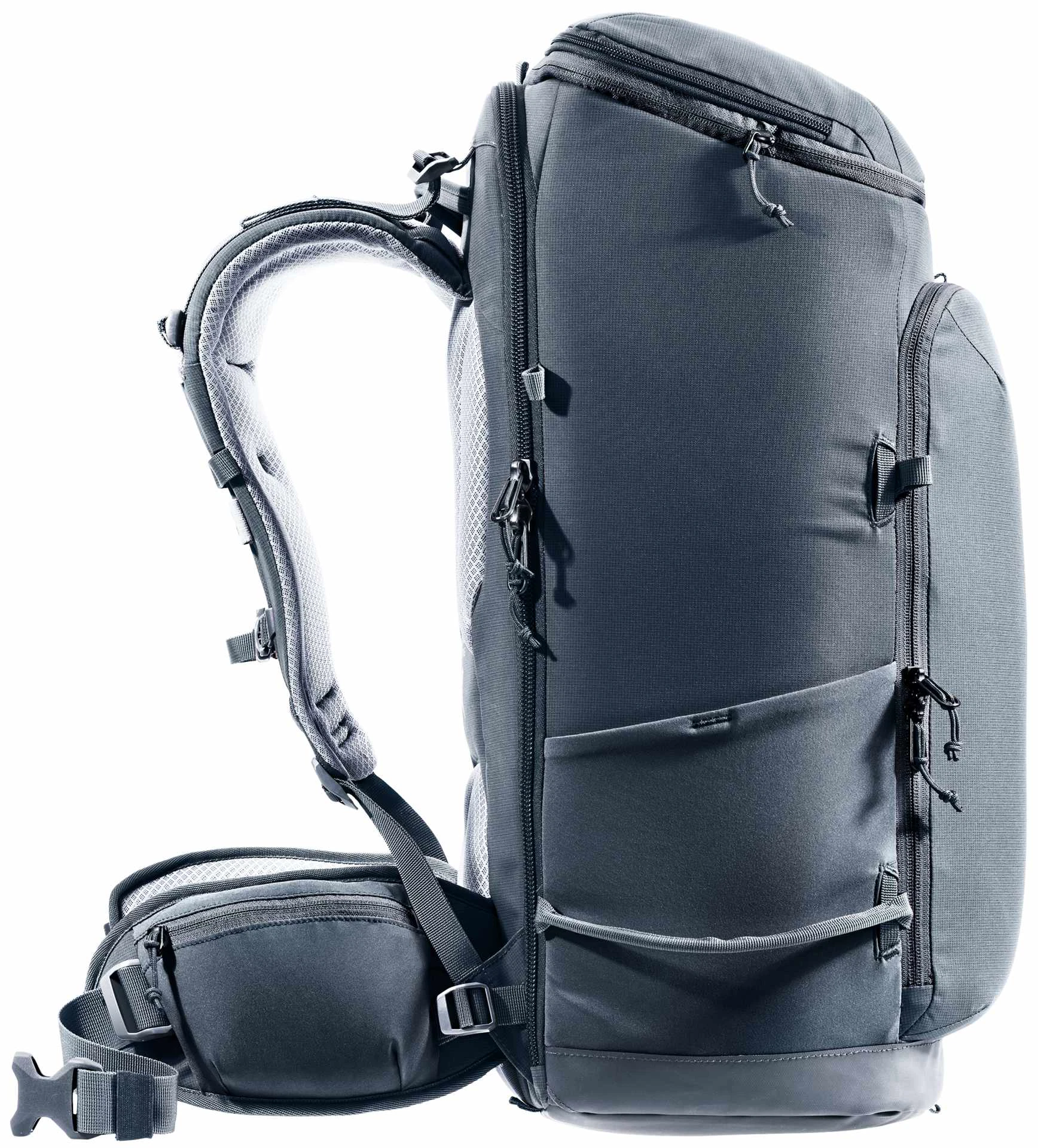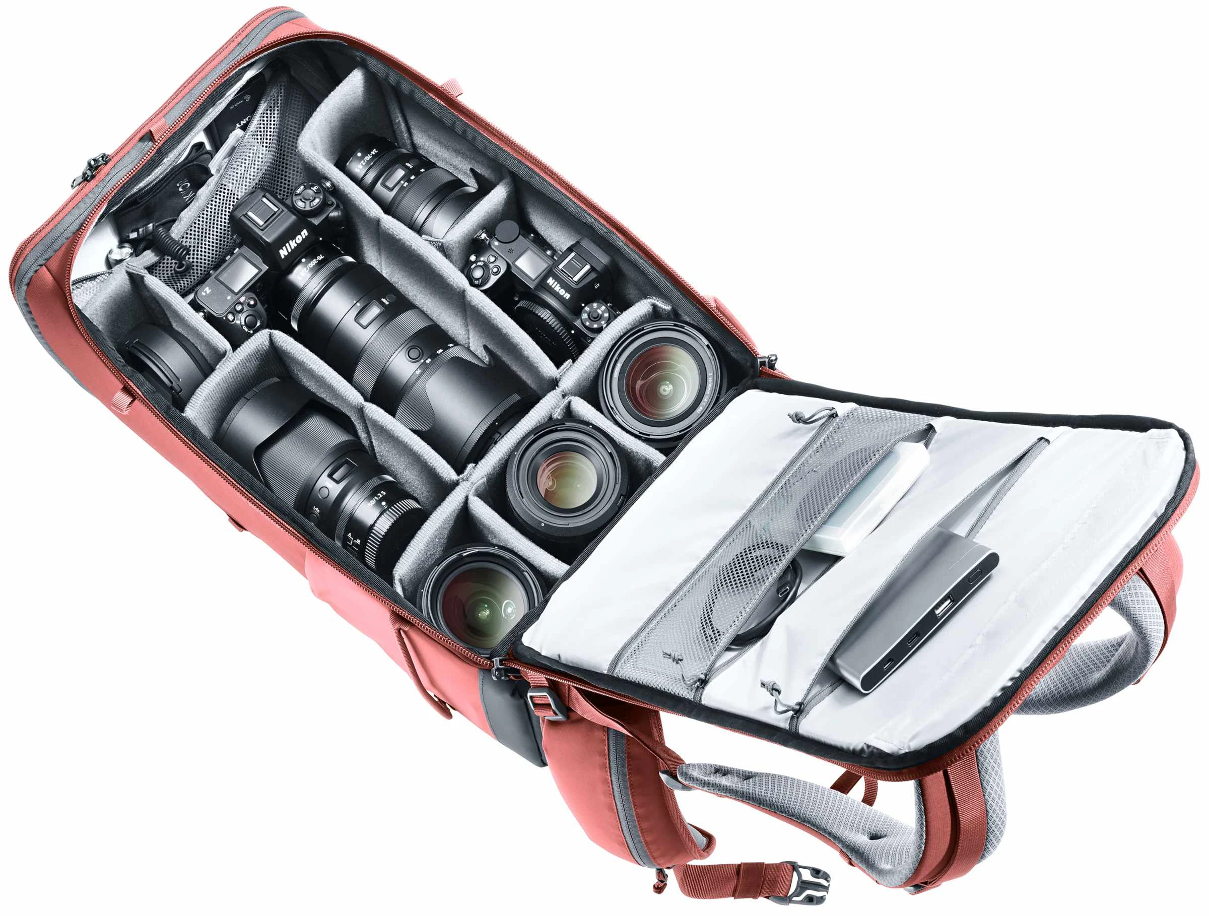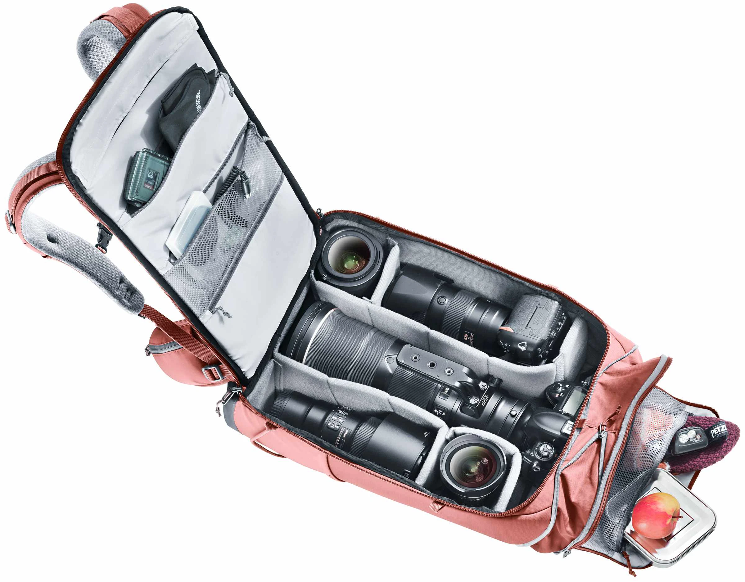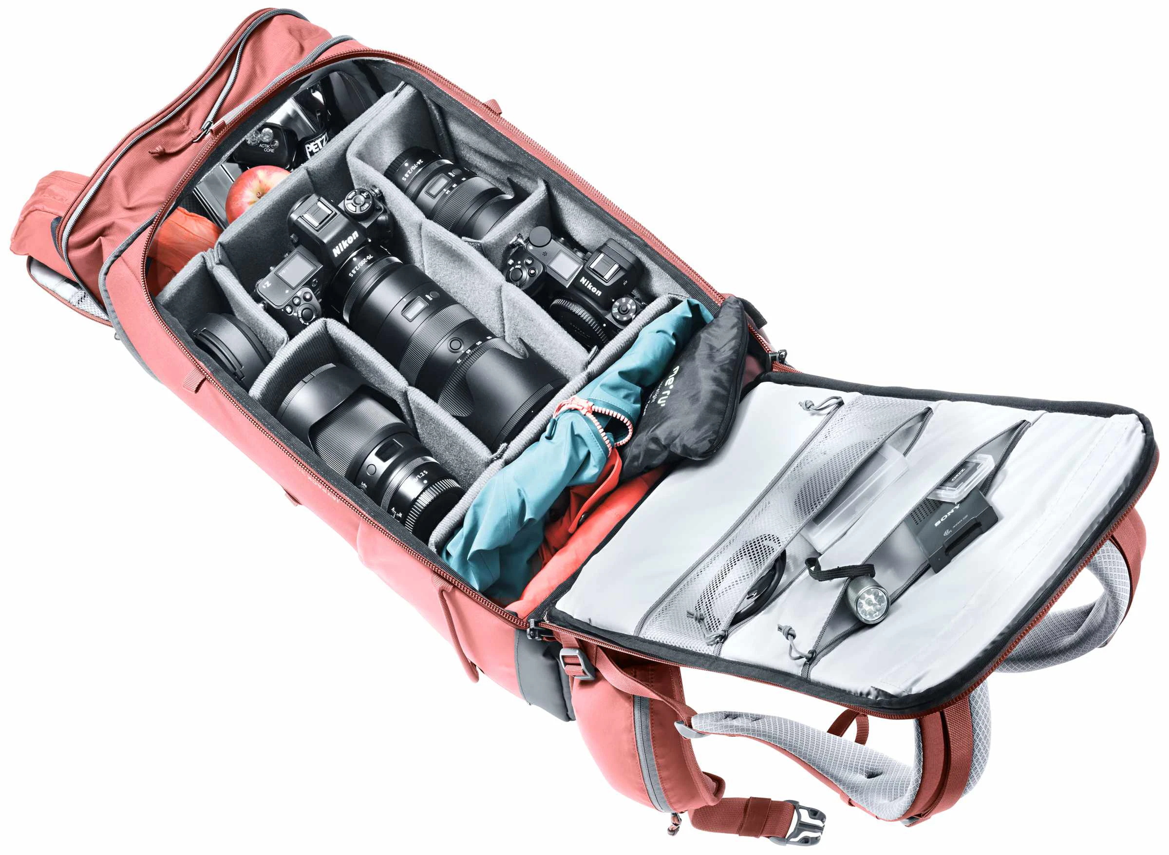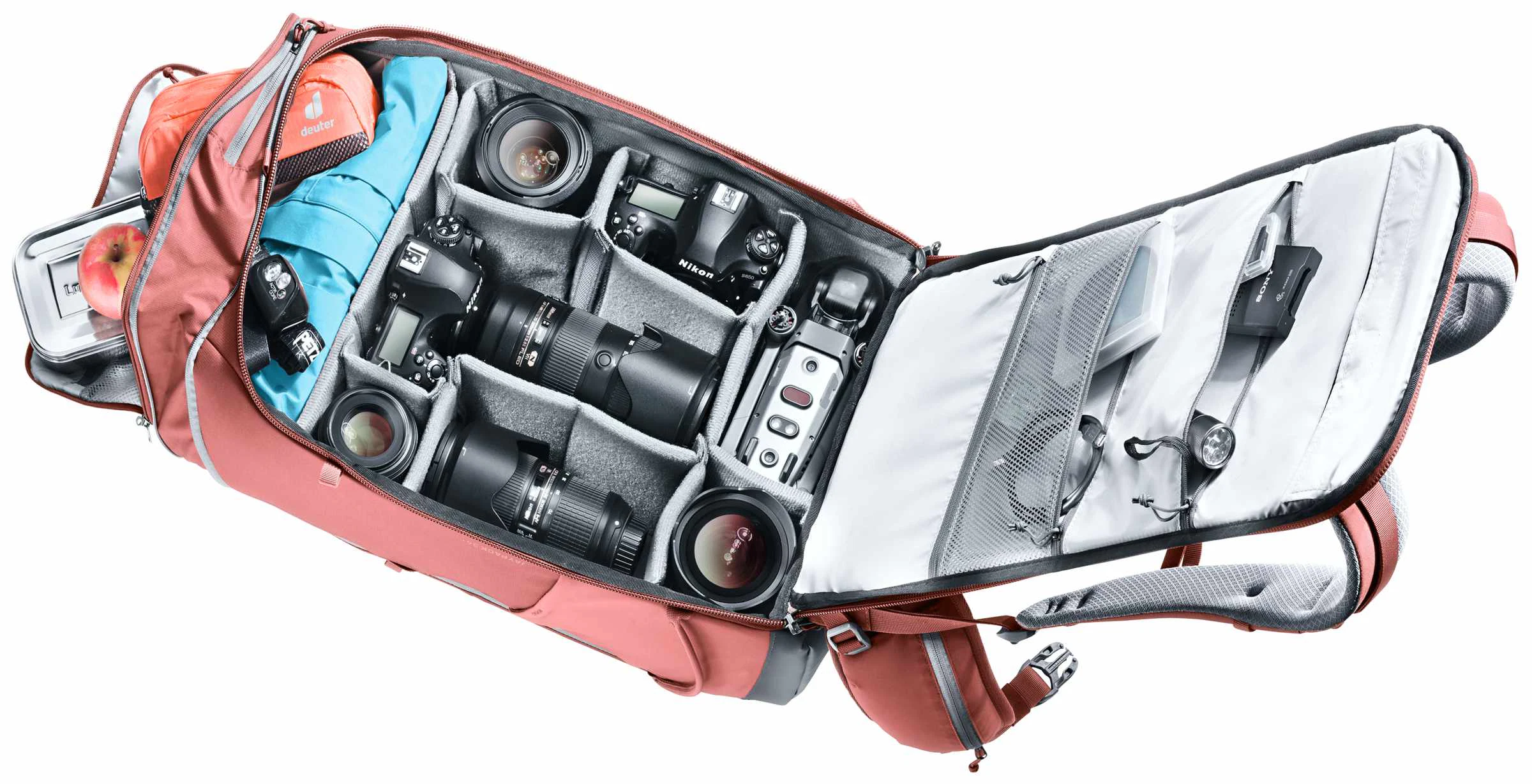 Der deuter Jaypack 34+ Fotorucksack ist ein sehr großer Fotorucksack, welcher sich auch komplett beladen super tragen lässt. Die mitgelieferten Klett-Trennwände ermöglichen eine an die Ausrüstung anpassbare Aufteilung des Hauptfaches und in Verbindung mit den abnehmbaren Gurtbändern kann eine wirklich große Fotoausrüstung absolut problemlos auch über weite Strecken und in unwegsamen Geländen sicher und angenehm transportiert werden.