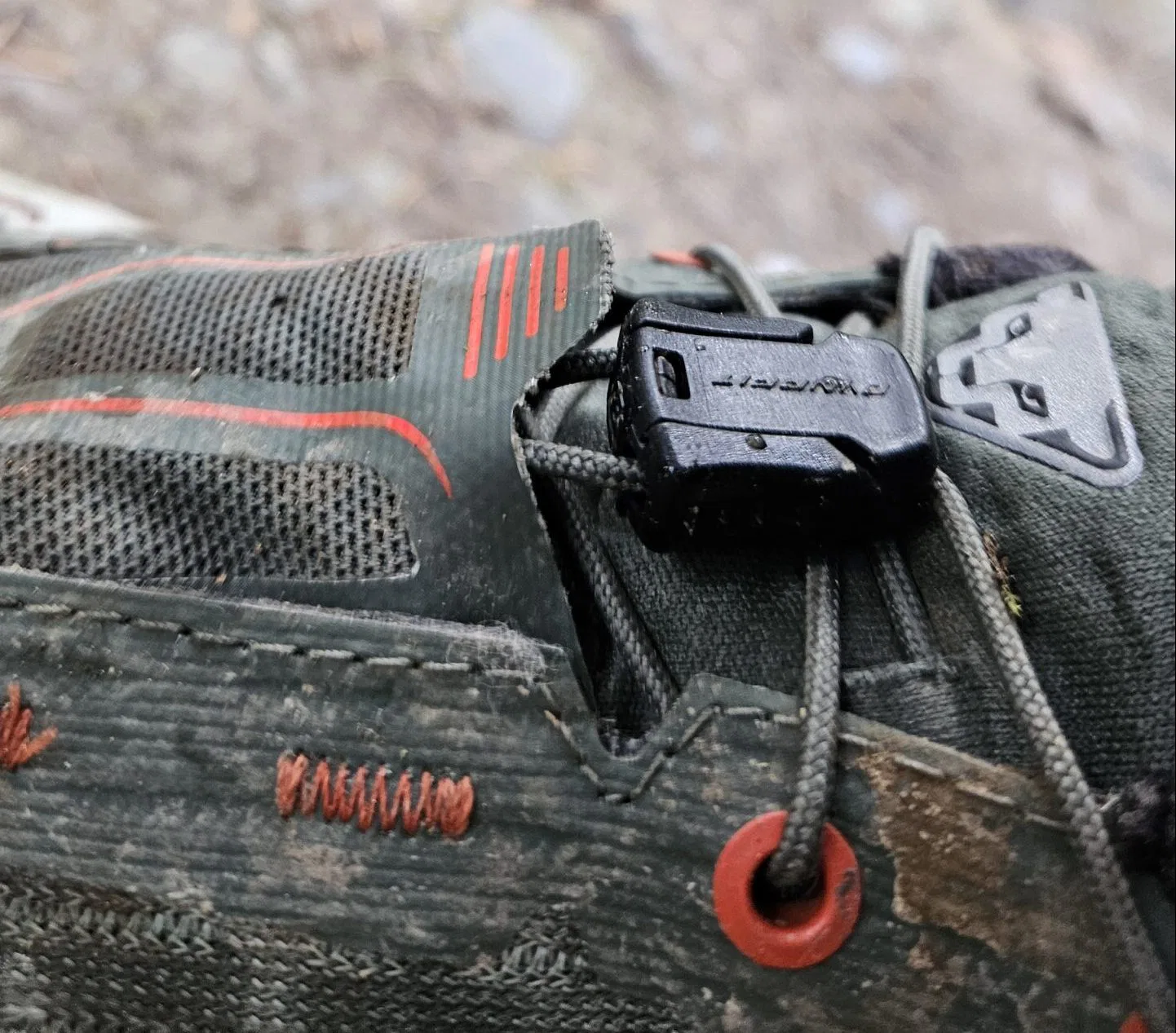 Die Zehenbox ist breit und der Fuß fühlt sich direkt wohl in dem Schuh. Das Schnellschnürsystem ist klasse und funktioniert tadellos. Kein Nachziehen ist unterwegs notwendig und das Öffnen geht einfach. Zum Verstauen der Senkel gibt es vorne auf dem Spann eine kleine Tasche.