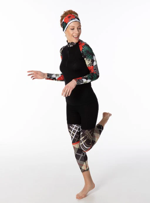 „Twisted“ heißt ins Deutsche übersetzt “verdreht” – aber auch “verrückt”. Und das sind auch die Merino – Mix Shirts. Diese Variante mit Reißverschluss und Stehkragen – auch farbenfroh bedruckt. Einfarbig schwarzer 100 % Merino Body gemixt mit 70er Jahre Blumendruck inklusive verstecktem Karomuster an den Ärmeln. Macht gute Laune – bereits beim Anziehen! Die Merino – Mix Funktionshosen sind am Gesäß 100 % Merino gemixt mit den Karo Motiven aus den Shirts TwistedLech und TwistedArlberg an den Beinen. Die Pant passt zu diesen beiden Styles. Die Merinowolle ist aus tiergerechter Haltung (museling-frei d.h. keine schmerzhafte Methode, um die Schafe vor Fliegenbefall zu schützen), dass Garn ist chlorfrei gebleicht und extrem fein.