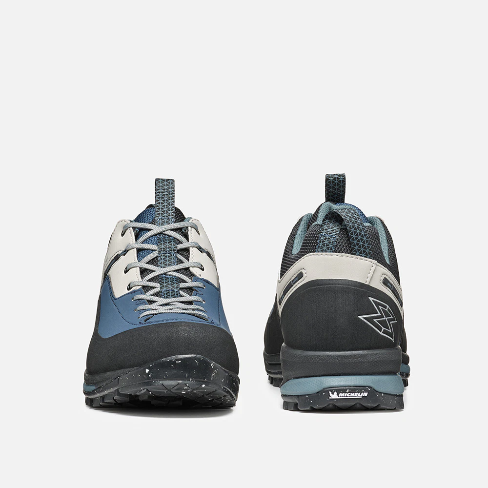 Die Sohle des Dragontail Tech ist eine der herausragenden Eigenschaften dieses Schuhs. Die Michelin® Doppelmischung-Laufsohle bietet sowohl auf trockenem als auch auf nassem Untergrund einen tollen Grip. Besonders die feinprofilierte Sohle mit den dreieckigen Stollen an der Ferse sorgt für zusätzliche Stabilität und verhindert ein Abrutschen selbst auf schwierigem Terrain. Die Kombination aus Flexibilität und Traktion macht den Dragontail Tech zu einem verlässlichen Begleiter, selbst auf anspruchsvollen Wegen​.