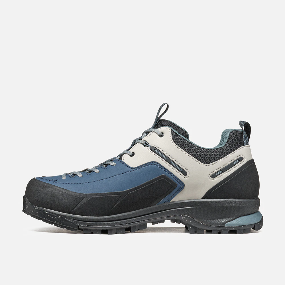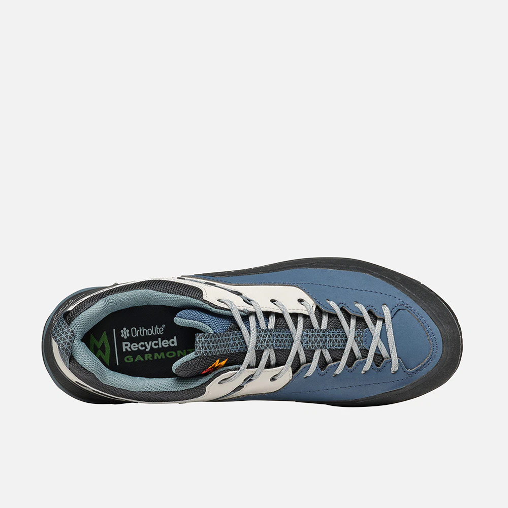Die Dragontail Tech Geo für Herren von Garmont sind die umweltbewussten Allrounder für den Berg. Die leichten Wanderschuhe sind  mit einem robusten Obermaterial aus umweltfreundlichem Mikrofasergewebe ausgestattet, ein abriebfester Geröllschutzrand schützt die Schuhe vor Beschädigungen. Das atmungsaktive Innenmaterial aus Polyester (recyceltem) sorgt für ein angenehmes Trageklima, während die Zwischensohle aus EVA und biobasiertem Schaumstoff eine optimale Dämpfung garantiert. Hinzu kommt ein recyceltes PU-Fußbett aus dem Hause OrthoLite sowie eine speziell angefertigte Michelin Off Road Außensohle, die einen hervorragenden Grip in unwegsamem Terrain bietet.
