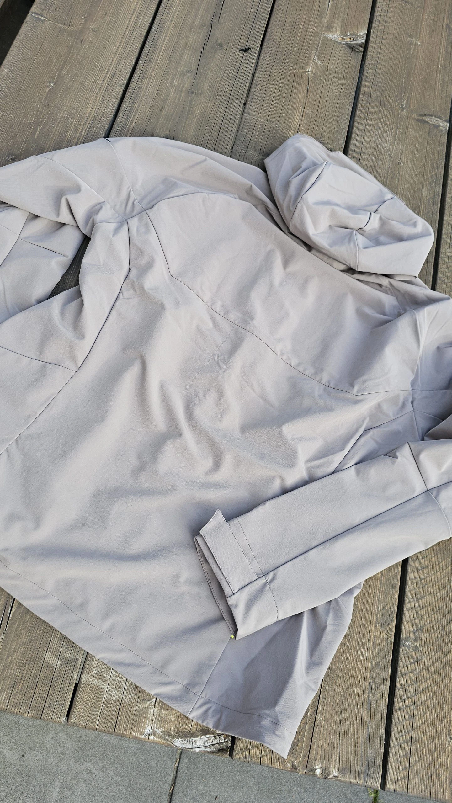 Der Schnitt der Trail Jacket M fällt etwas großzügig aus, was besonders Herren in ihrer gewohnten Größe spüren. Das sorgt zwar für Bewegungsfreiheit – vor allem beim Biken –, kann aber etwas luftig wirken. Auf der Haut liegt die Jacke angenehm, auch längere Tragezeiten sind komfortabel. Die Ärmelweite bietet genug Spielraum, wirkt aber bei schlankeren Trägern minimal oversized.