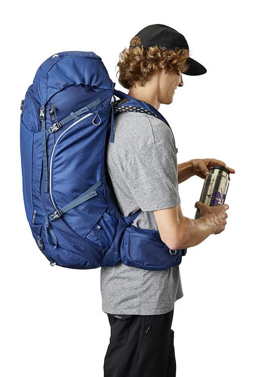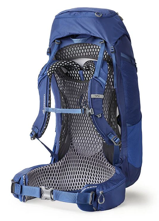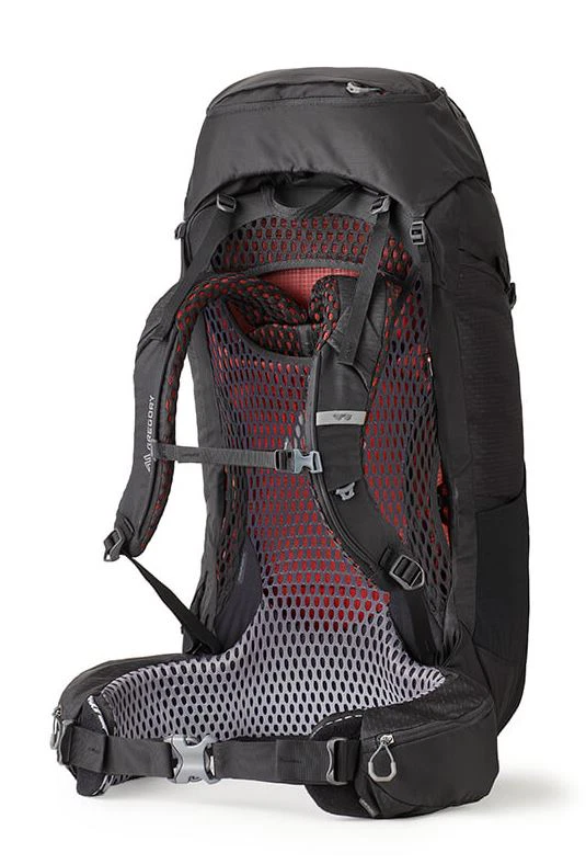 Besten Komfort und ordentlich Platz, das bietet der Katmai 55 von Gregory. Dieser vielseitige Trekkingrucksack wurde so entworfen, dass er auch bei langen Tagesetappen noch angenehm zu tragen ist und dabei die Bewegungsfreiheit nicht übermäßig einschränkt. Schaut man sich die Rücken- und Schulterpolsterung einmal näher an, fällt auf, dass diese aus einem besonderen Mesh-Gewebe besteht. Hierdurch kann die Luft dauerhaft zwischen Körper und Rucksack zirkulieren und entstehende Feuchtigkeit abtransportieren. Zusätzlich wurde das Tragesystem so entworfen, dass es den Körper vergleichsweise eng umschließt, dabei aber beweglich bleibt.