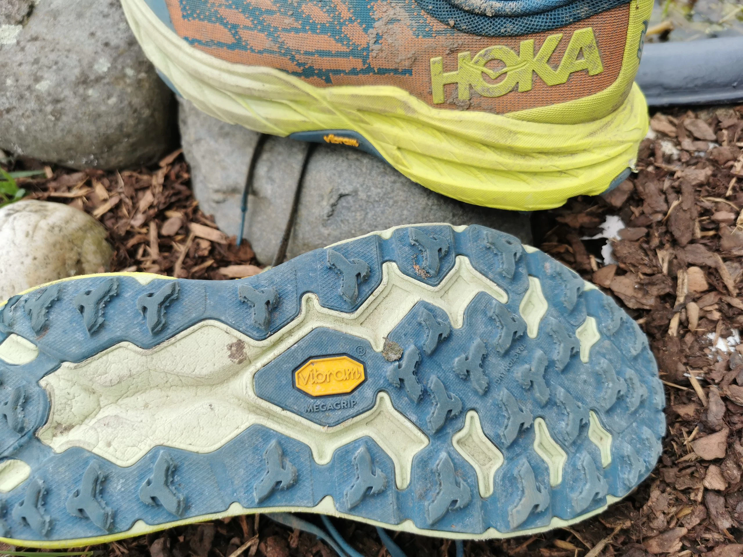 Lasst uns zum Einstieg mal die Neuerungen bzw. Änderungen im Gegensatz zum Speedgoat 4 aufzeigen. Die Sohle ist immer noch eine Vibram Megagrip, aber die Stollen wurden etwas geändert, ein Update der Verbundstoffe an der Zwischensohle sowie andere Material-Updates führen zu einer leichten Gewichtsreduktion (14 g) und die Oberkonstruktion bietet laut Hersteller jetzt mehr Platz und mehr Komfort. Ansonsten ist die Verarbeitung top und der erste Eindruck wirkt wieder “klobiger”, als er ist. Dazu später mehr. Farblich gab es einige Updates und es gibt auch den Speedgoat 5 in vielen unterschiedlichen Farben.