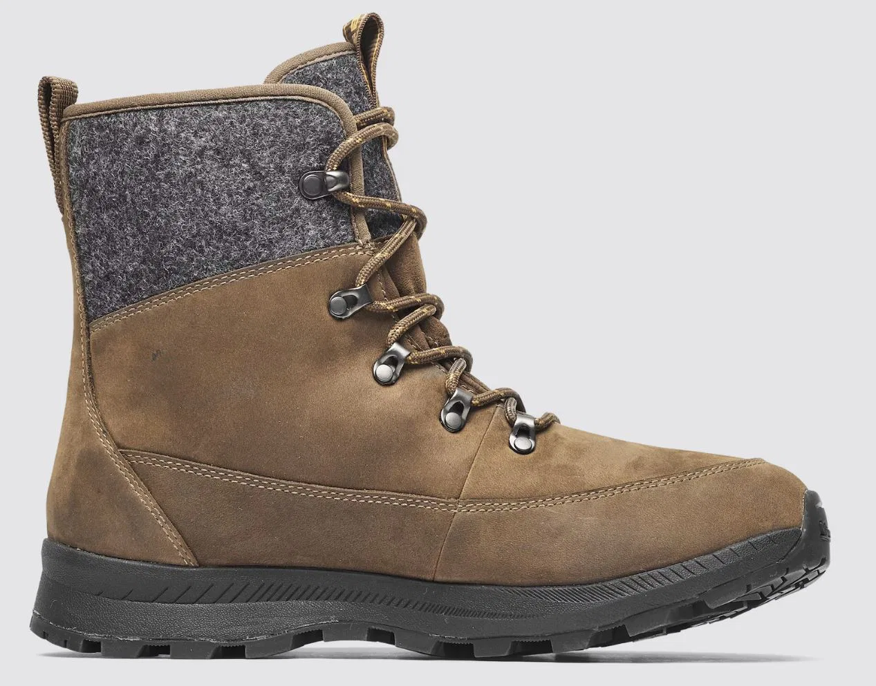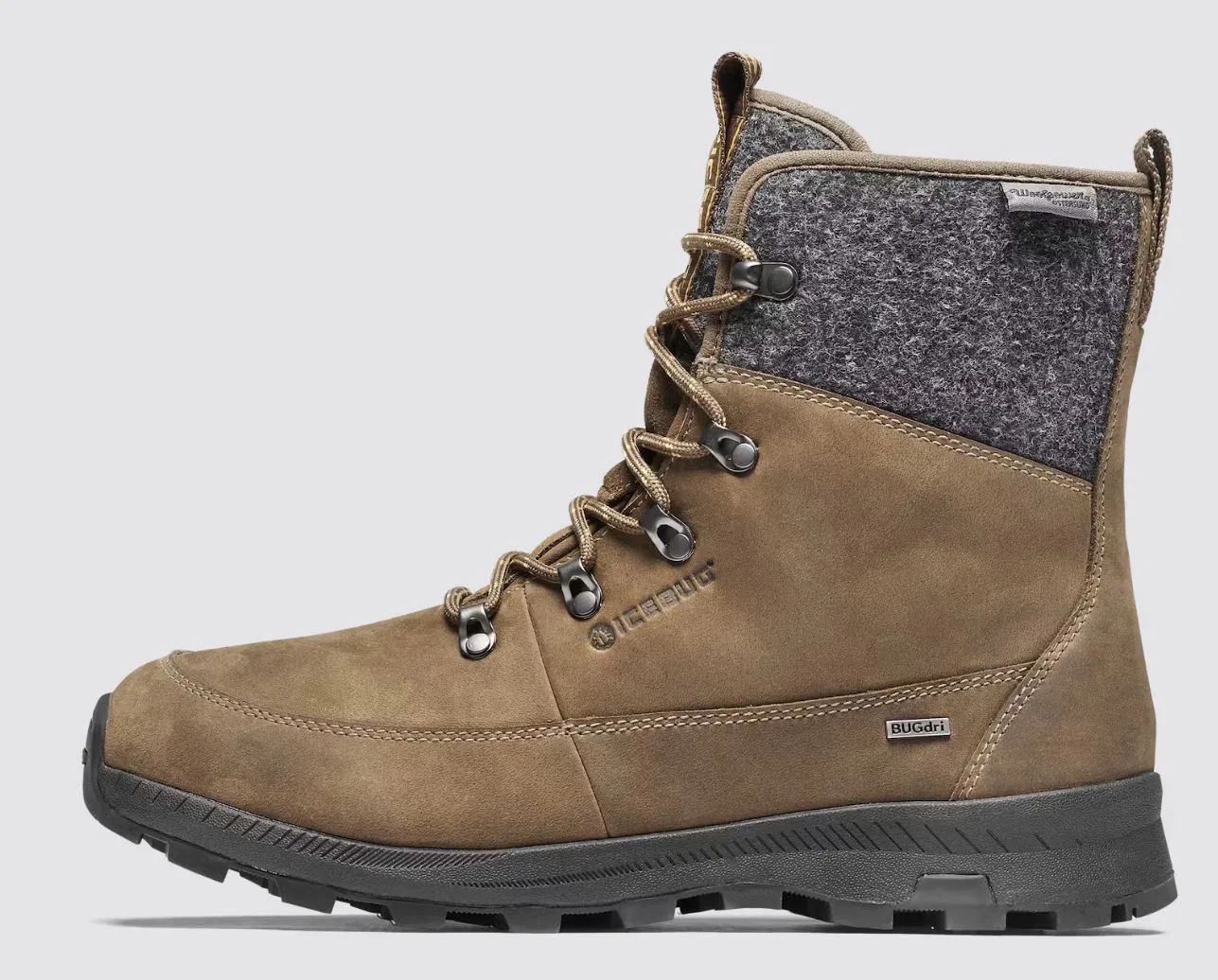 Als Björn den Icebug Adak ReWool auf der Website sah, fand er ihn auf Anhieb Klasse. Die Optik gefiel Björn direkt, schön schlicht und im zeitlosen skandinavischen Design. Der aus 40% biobasierten und 20% recyceltem Material hergestellte Winterstiefel ist erstklassig verarbeitet. Die Kombination des Schaftes aus Filzwolle mit dem öligen Nubukleder ist tadellos zusammengefügt. Den Adak gibt es alternativ auch mit der BUGrip Sohle und Spikes. Björn wählte aber die Variante ohne Spikes. Die Michelin WIC Außensohle wirkt sehr robust und die groben Stollen machen Vorfreude auf den ersten Test.