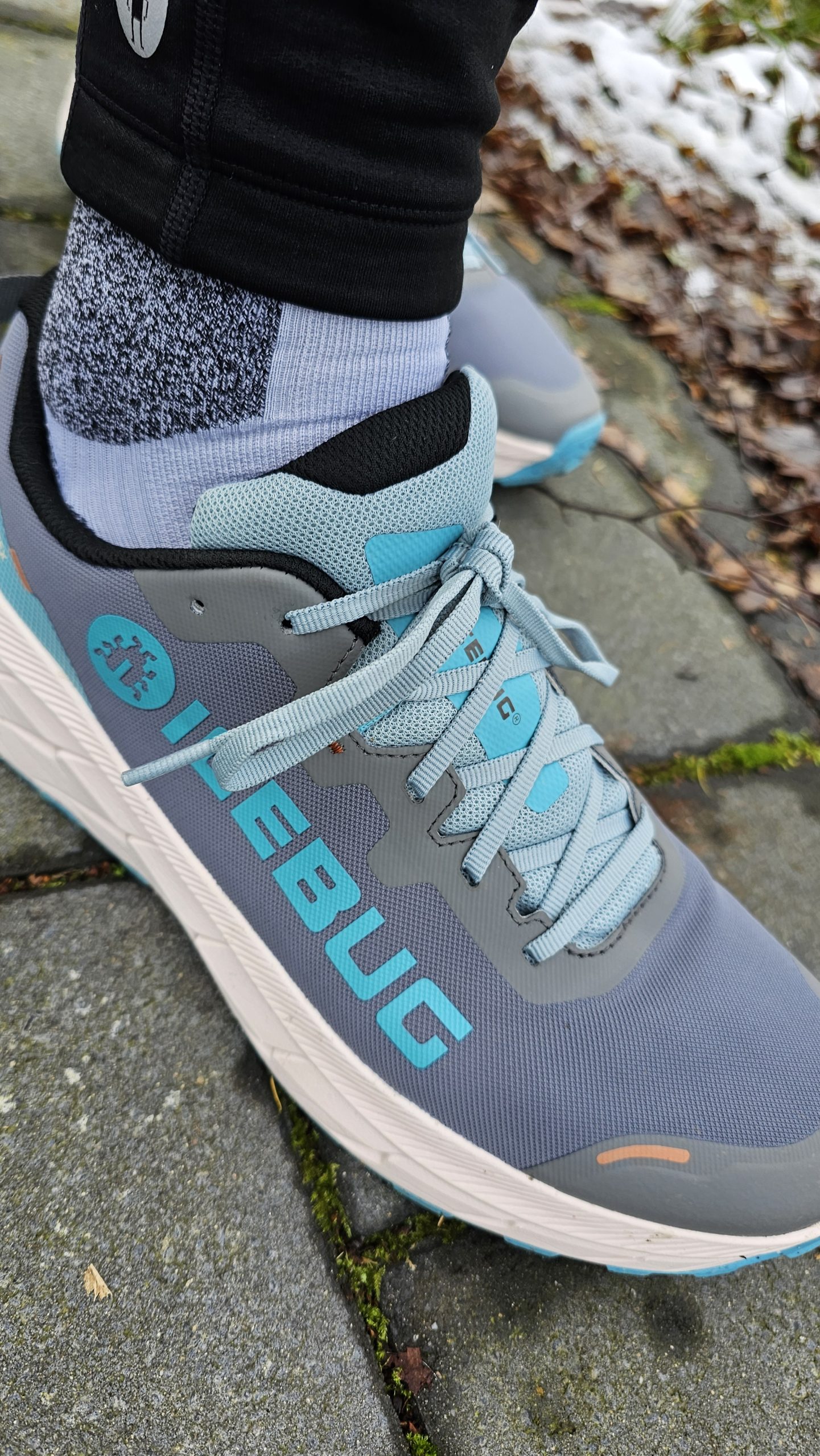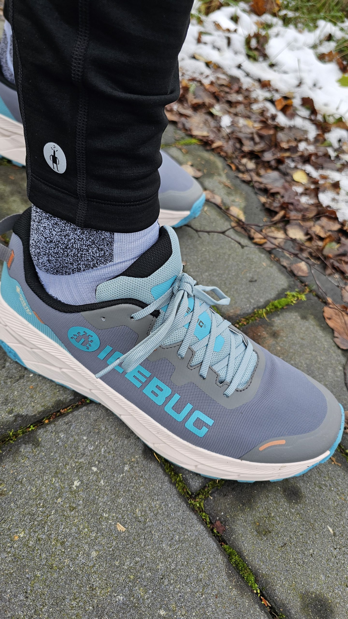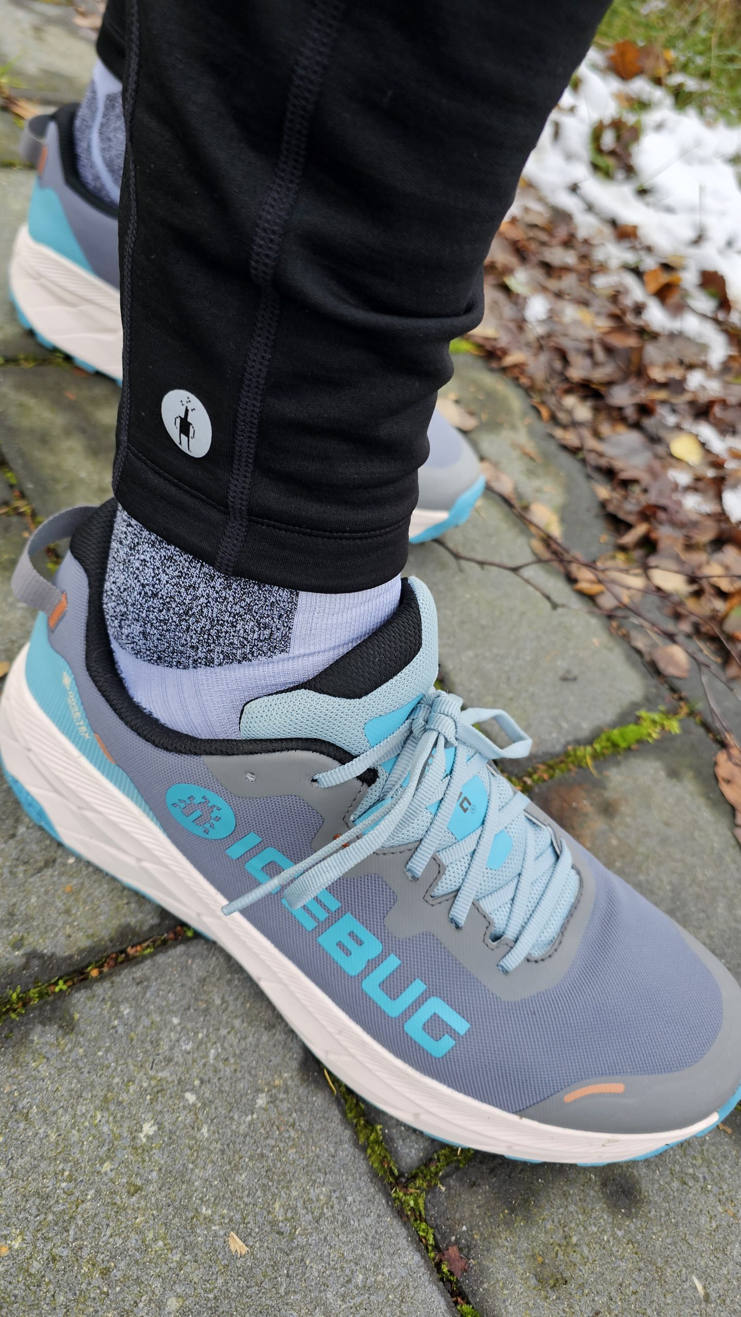 Der Icebug Arcus 2 RB9X GTX macht auf den ersten Blick einen hochwertigen Eindruck. Das Obermaterial fühlt sich robust an, ist aber gleichzeitig flexibel genug, um sich dem Fuß gut anzupassen. Die Verarbeitung ist sauber, es gibt keine sichtbaren Klebereste oder unsaubere Nähte. Das Design ist modern, aber eher schlicht. Die Farbgebung in „Mistblue“ wirkt dezent und unaufdringlich. Besonders auffällig ist die eher breite Passform des Schuhs, die schon beim ersten Anprobieren für ein angenehmes Tragegefühl sorgt. Die Sohle mit der RB9X-Gummimischung verspricht guten Grip, während die GORE-TEX-Membran für wasserdichten Schutz sorgt. Das Innenfutter fühlt sich angenehm an, und die Polsterung an Zunge und Ferse ist ausreichend, ohne zu dick zu sein. Insgesamt macht der Schuh einen durchdachten und gut verarbeiteten Eindruck – kein Highspeed-Racer, sondern ein Schuh für Komfort und Schutz auf langen Strecken.