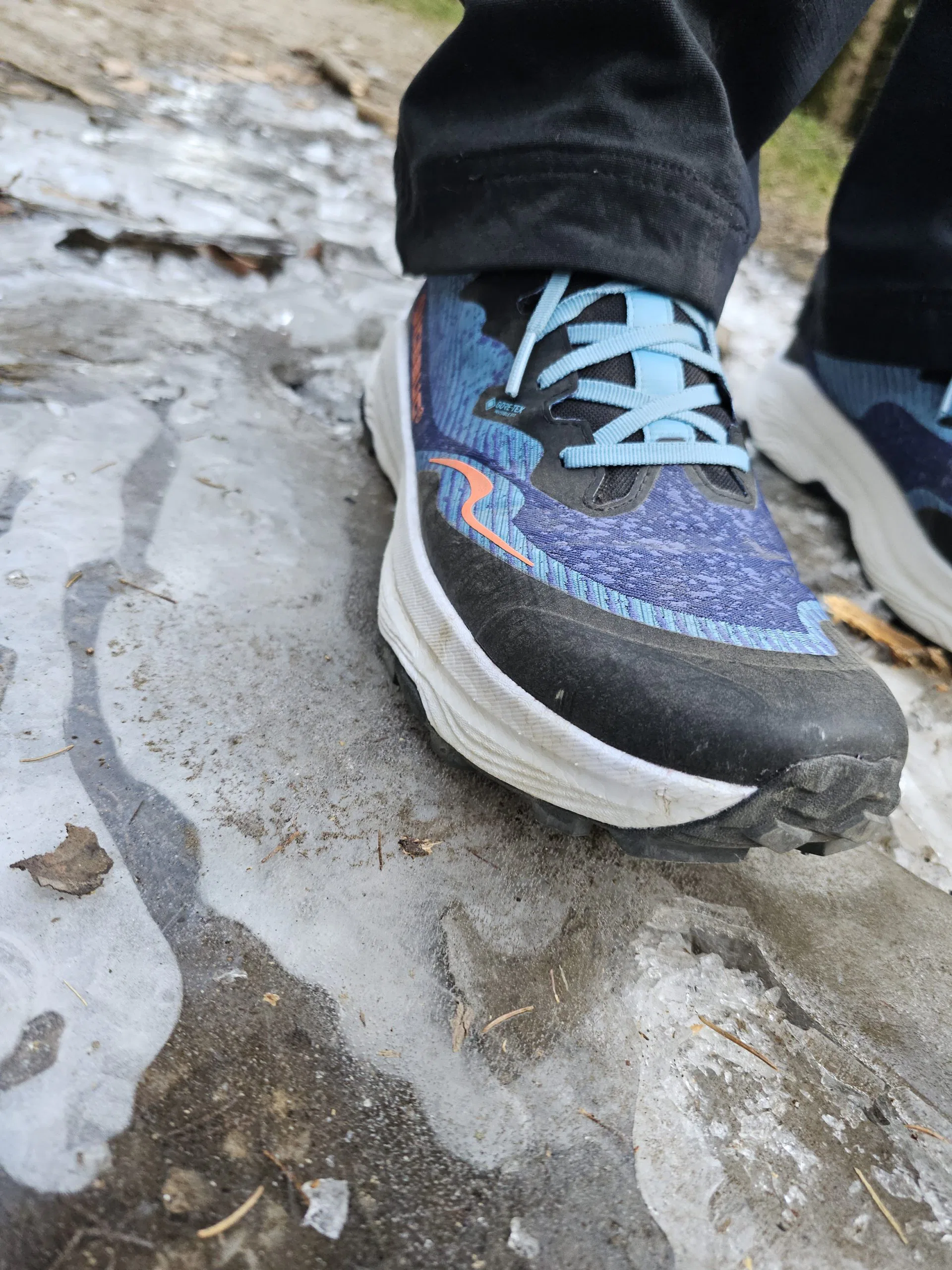 Der Schuh wird klassisch geschnürt, die Schnürung lässt sich gut dosieren und hielt auch nach rund zwei Stunden Laufzeit zuverlässig. Die Passform wurde von Björn als komfortabel beschrieben, ohne Druckstellen oder einengendes Gefühl. Besonders im Vorfußbereich empfand er den Schuh als angenehm breit, was sich vor allem auf längeren Läufen und mit dickeren Wintersocken positiv bemerkbar macht.