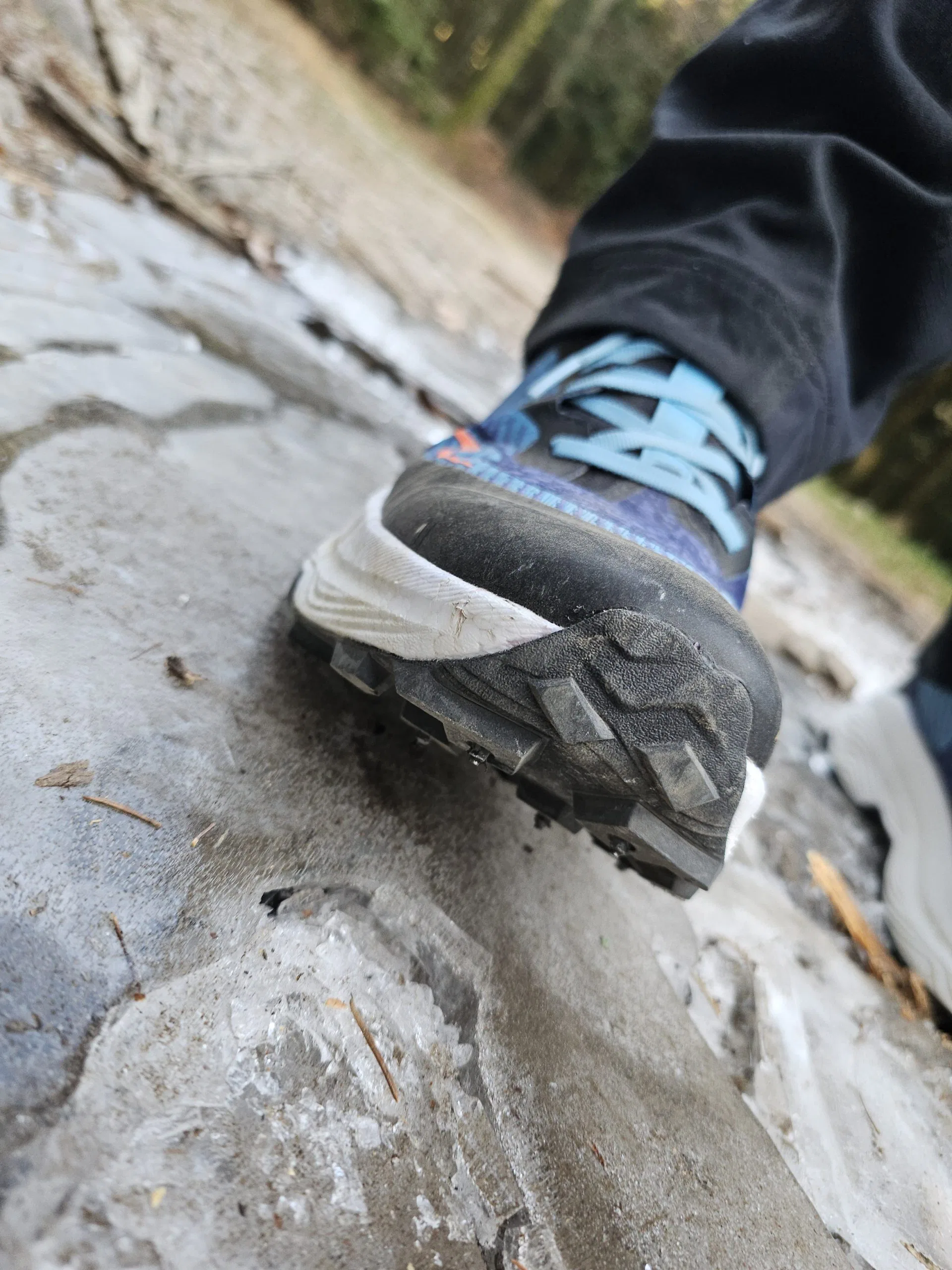 Björn konnte den Schuh bei winterlichen Bedingungen im Taunus testen. Auch ohne Schnee und mit nur wenig Eis kam er sehr gut mit dem Schuh zurecht. Auf Waldwegen, Trails und naturbelassenem Untergrund ließ sich der Schuh problemlos und natürlich laufen. Besonders positiv: Abseits von Asphalt fällt kaum auf, dass man einen Schuh mit Spikes trägt. Das Laufgefühl bleibt ruhig und kontrolliert, erst auf sehr harten Untergründen wie Asphalt werden die Spikes deutlicher wahrnehmbar.
