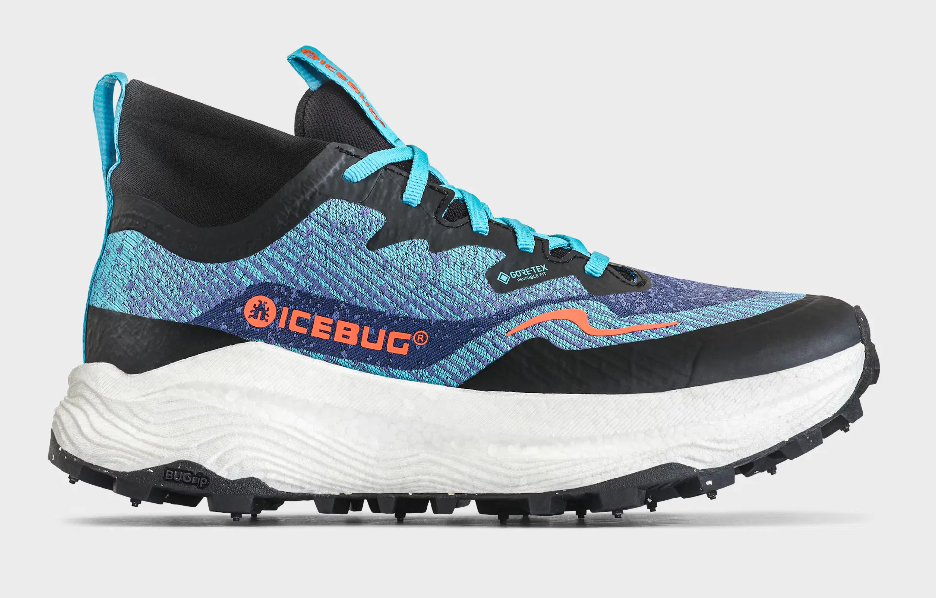 Dank der BUGrip®-Außensohle mit 18 Stahlspikes bietet der Schuh exzellenten Halt auf Eis und rutschigem Untergrund.