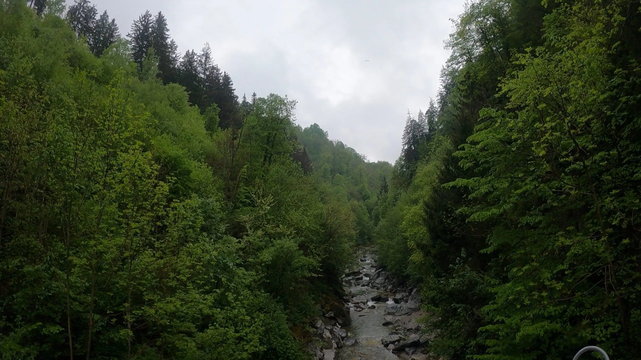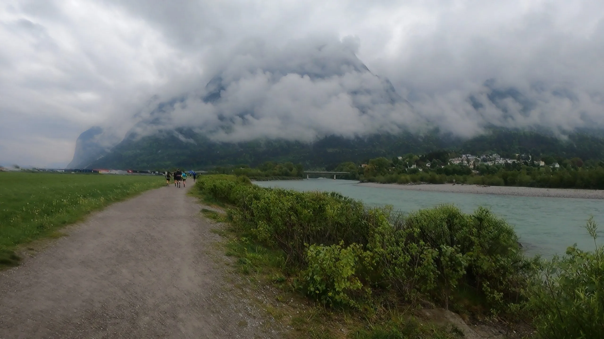 Endlich kann es losgehen. Mit einem Knall startete die Welle an Läuferinnen und Läufern aus der Olympia World heraus. Erstes Ziel war die Sillschlucht. Zunächst ging es auf ein paar Asphaltkilometern aus der Stadt heraus und dann direkt schon berghoch. Beim ersten Anstieg zog ich auch schon direkt die Regenjacke aus. Wir liefen durch die schöne Sillschlucht auf sehr schmalen Pfaden auf dem Sillschluchtweg. Das war ein sehr schöner Einstieg. Im ständigen Auf und Ab ging es zügig über die Trails.