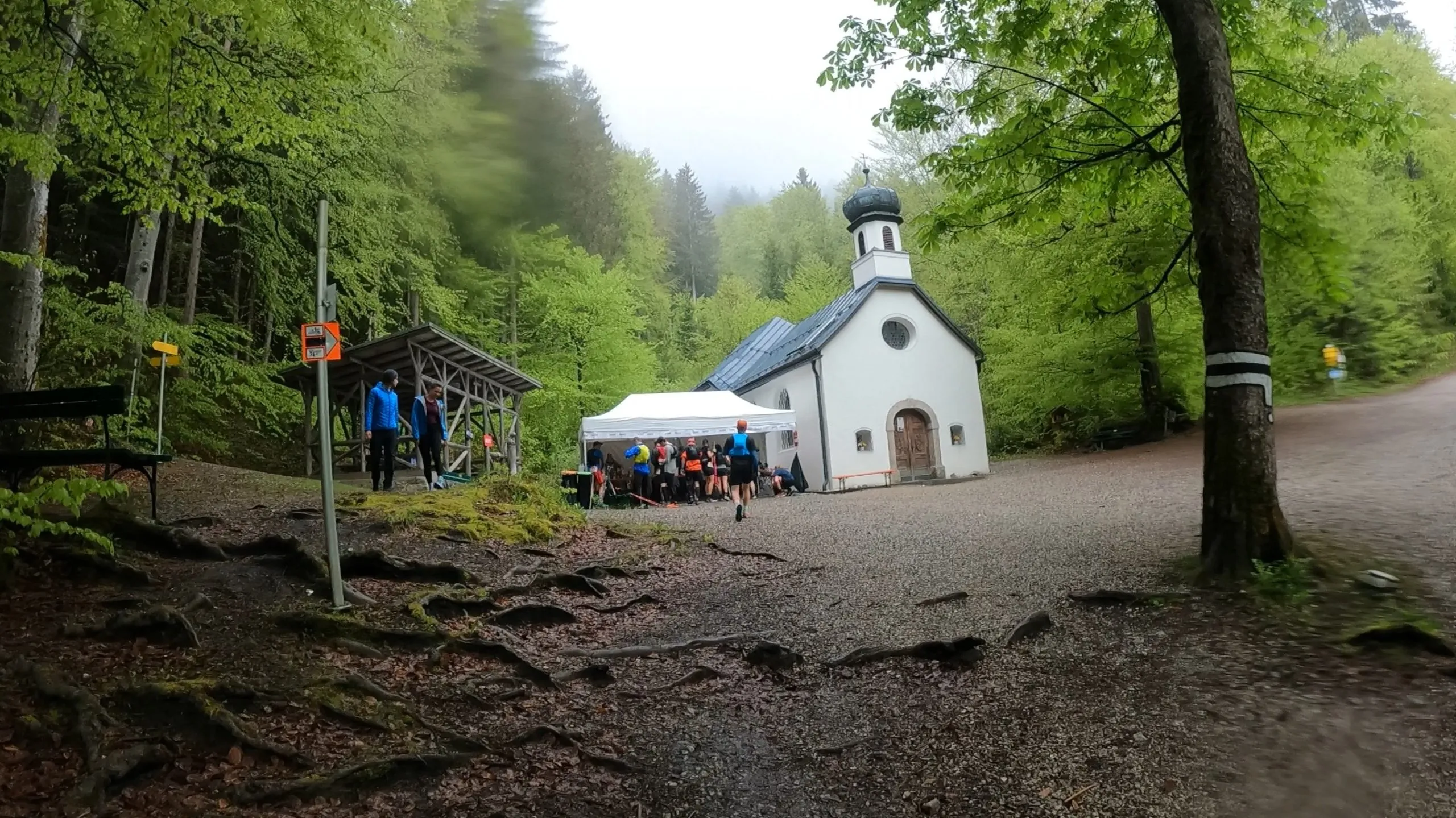 An der Kapelle (Romedikirchl) war dann auch VP 4. Km 42, der Marathon ist im Kasten. Hier gönnte ich mir kurz eine lauwarme Kartoffelsuppe, Laugenbrot und paar Gurkenscheiben. Ich stellte kurz meine Stöcke an einem Baumstamm ab. Nachdem ich aufgegessen und aufgefüllt hatte lief ich fröhlich mit einem Mitläufer den Berg im Downhill runter. Tja, aber ohne die Stöcke und das bemerkte ich erst als mein Mitläufer meinte, wo meine Stöcke seien. 400 m runter und jetzt wieder hoch. Das darf jetzt wirklich nicht wahr sein, dachte ich mir. Ich fluchte ein paar unschöne Wörter. Es brachte aber nichts. Ich brauch ja die Stöcke, vor allem für den letzten Anstieg. Ich kam oben an und eine Helferin sah, dass ich anscheinend zurückgelaufen bin. Ich schnaufte kurz durch nahm die Stöcke und lief wieder runter. Aus Fehlern lernt man. Es ist zwar manchmal bitter und frustrierend, aber man kann viel daraus mitnehmen. Für mich hatte es ein großen Lerneffekt. Kontrolle, ob du alles dabei hast, wenn du aus der VP schießt. Es hört sich echt banal und blöd an, aber solche Fehler können schnell passieren. Im Nachhinein kann ich über mich selbst lachen und es ist auf jeden Fall eine witzige Story.