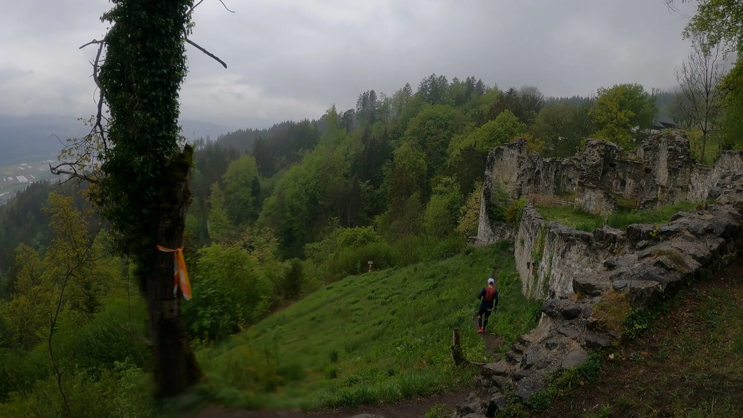 Ich passierte die Burgruine Thaur mit einem fabelhaften Ausblick auf Innsbruck und lief dann zur Romediwirt. Generell blieb die Aussicht hin und wieder leider verwehrt, da es sehr bedeckt und nebelig im Gebirge war.