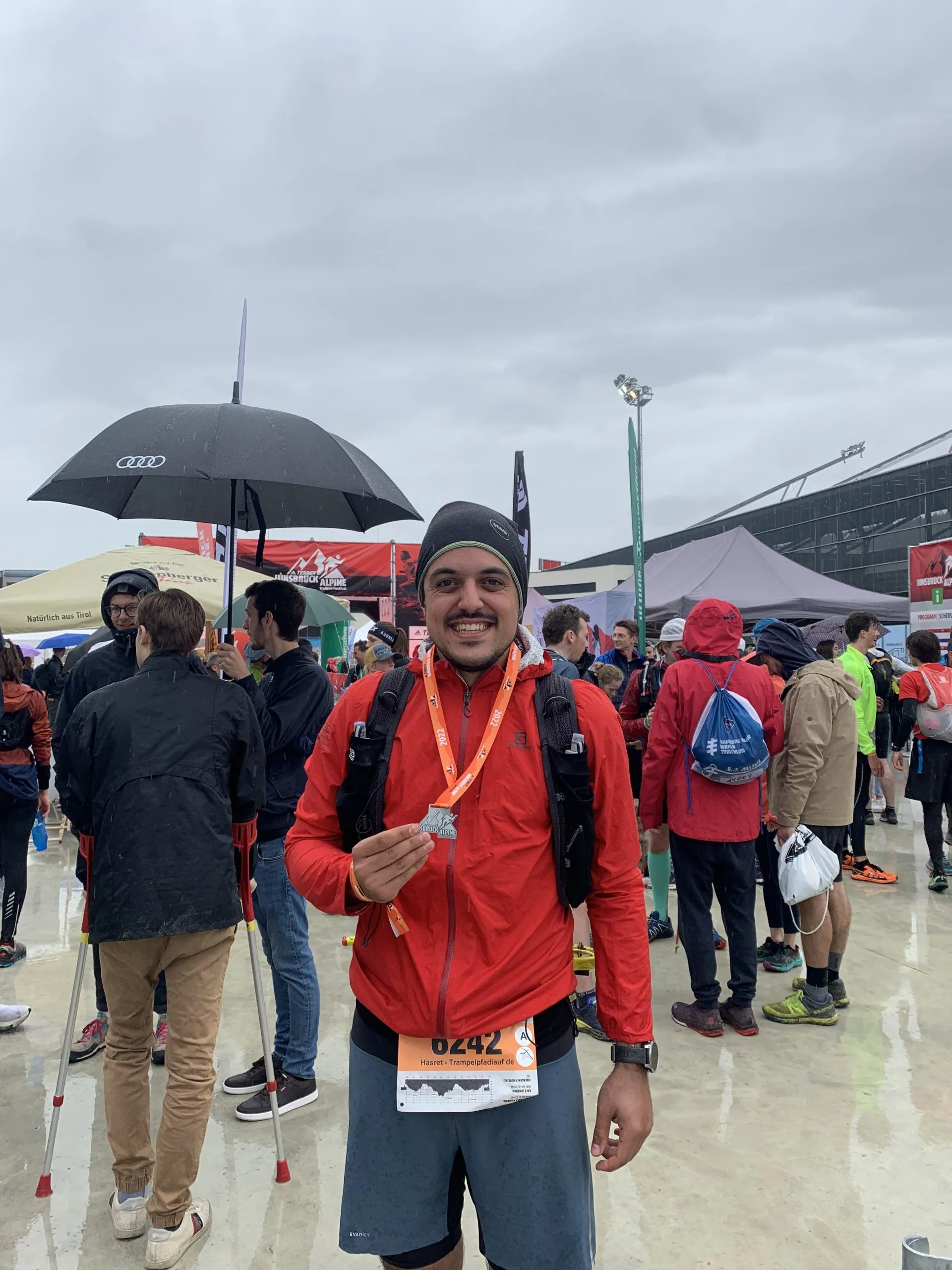 Am Freitag ging es dann für mich zur Expo vom IATF, wo ich auch meine Startunterlagen abholen wollte. Abends sollte es dann auch ein Race Briefing für alle Distanzen geben. Ich fuhr mit dem Auto dorthin. Zu erwähnen ist auch, dass es, seitdem ich in Innsbruck ankam, im Wechsel regnete. Die Sonne ließ sich echt vermissen. Ich parkte in einem Parkhaus, welches ebenfalls ausgeschildert war und durch den Veranstalter kommuniziert wurde. Generell waren alle Informationen vor dem Rennen und auch auf der Veranstaltung sehr transparent und hervorragend kommuniziert. Generell kostete das Parken ca. max. 10 Euro für den ganzen Tag, was in Ordnung war.