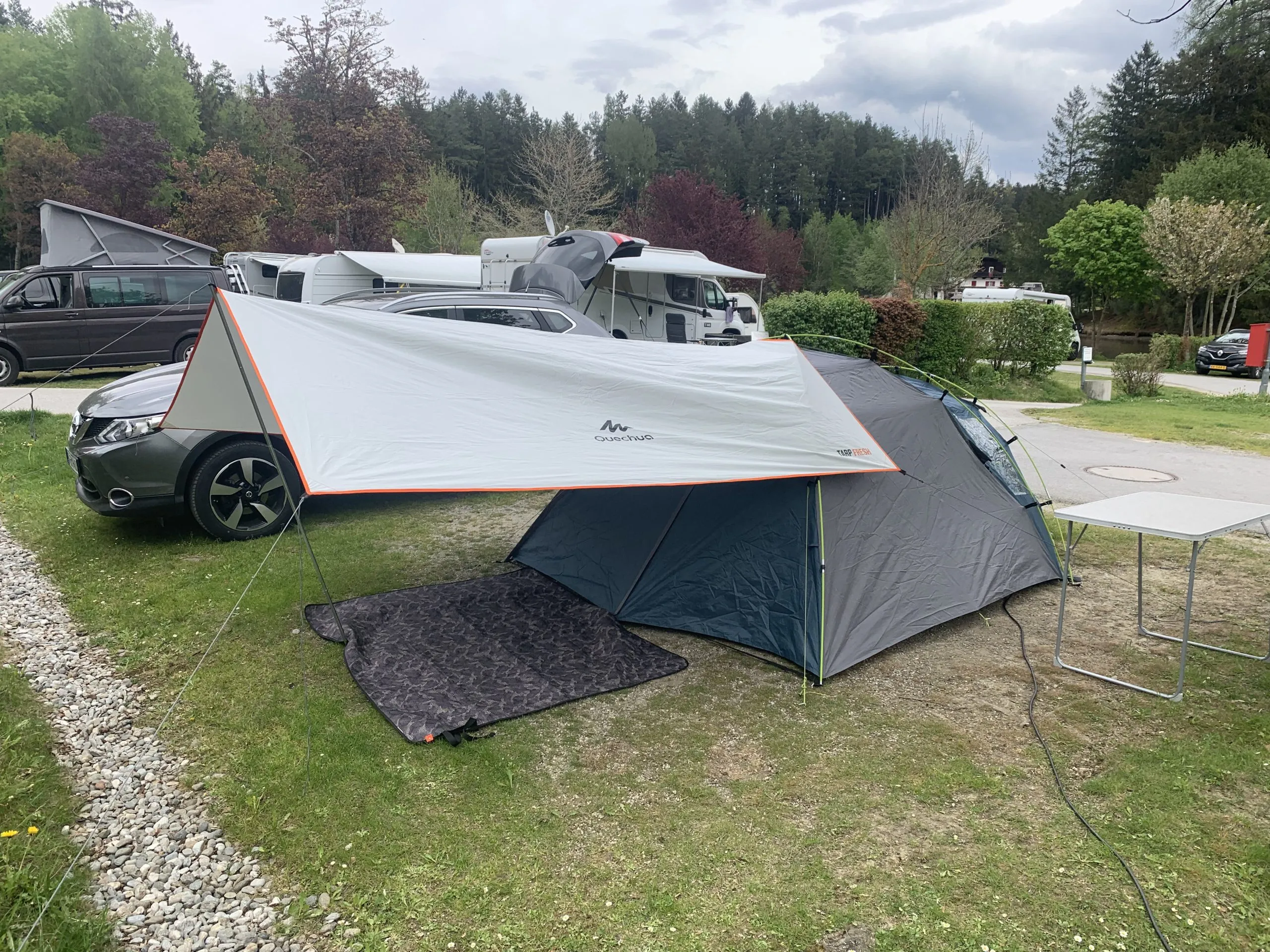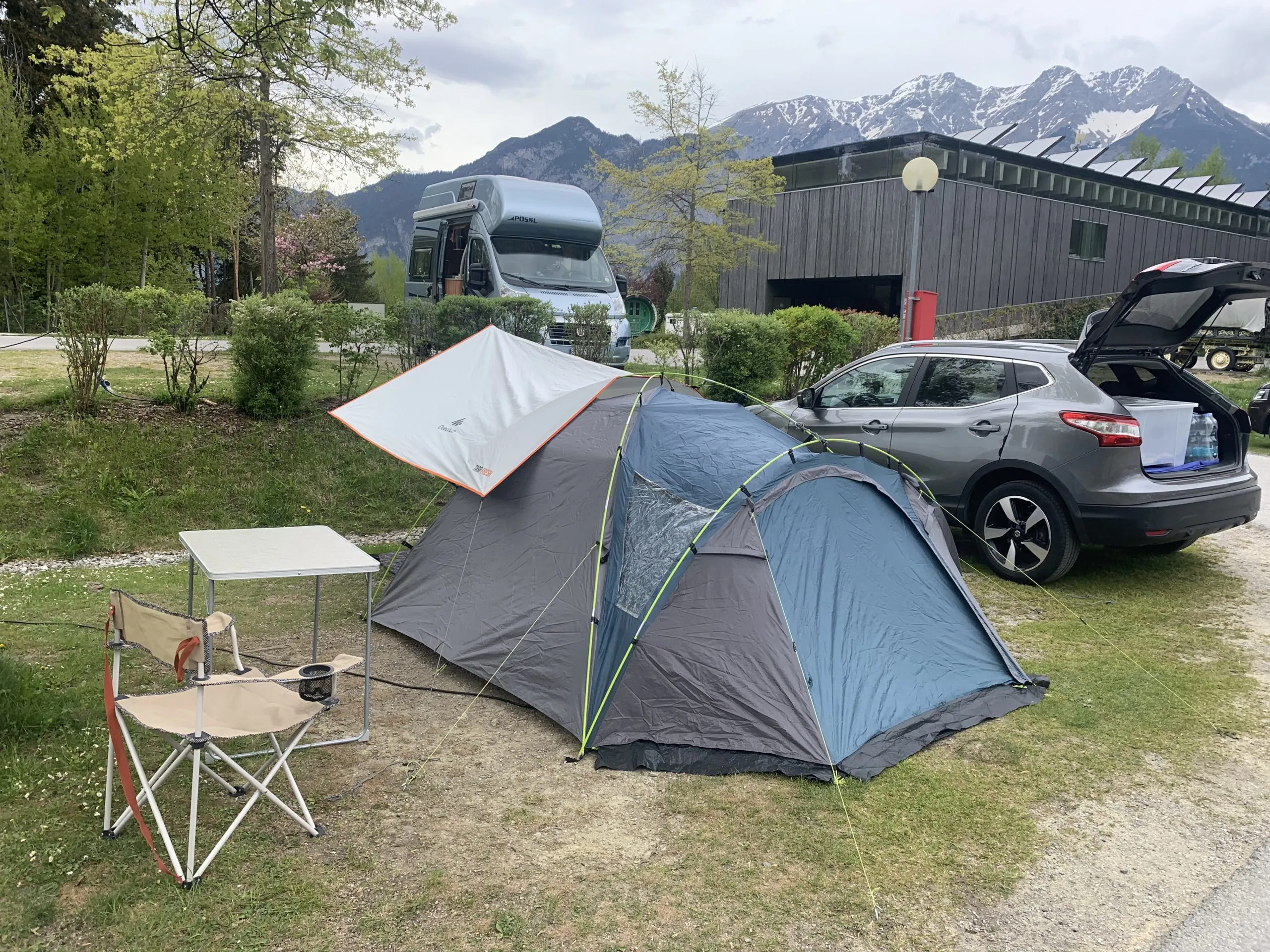 Ich fuhr mit dem Auto Donnerstag am 05.05.22 von Köln aus Richtung Innsbruck los. Das Auto vollgepackt mit meinen Campingsachen, den ich hatte vor, auf einem Campingplatz mein Lager aufzuschlagen. Ich buchte mir im Vorfeld einen Zeltplatz beim Campingplatz am Natterer See. Dieser liegt, wie der Name schon verrät, bei Natters. Ein kleines Dorf, welches direkt an Innsbruck gelegen ist. Mit dem Auto waren es 15 min Fahrzeit zur Olympia World (Start/Zielbereich und Messegelände). Aber erstmal musste ich 7 h Fahrzeit überwinden. Mit wenig Stau kam ich am frühen Nachmittag in Innsbruck an. Es gibt aber auch die Möglichkeit, mit dem Zug nach Innsbruck anzureisen. Beispielsweise gibt es auch einen Nachtzug oder ebenfalls andere Verbindungen zum Hauptbahnhof von Innsbruck. Da ich aber viel Zeug mit mir hatte, habe ich mich doch fürs Auto entschieden.