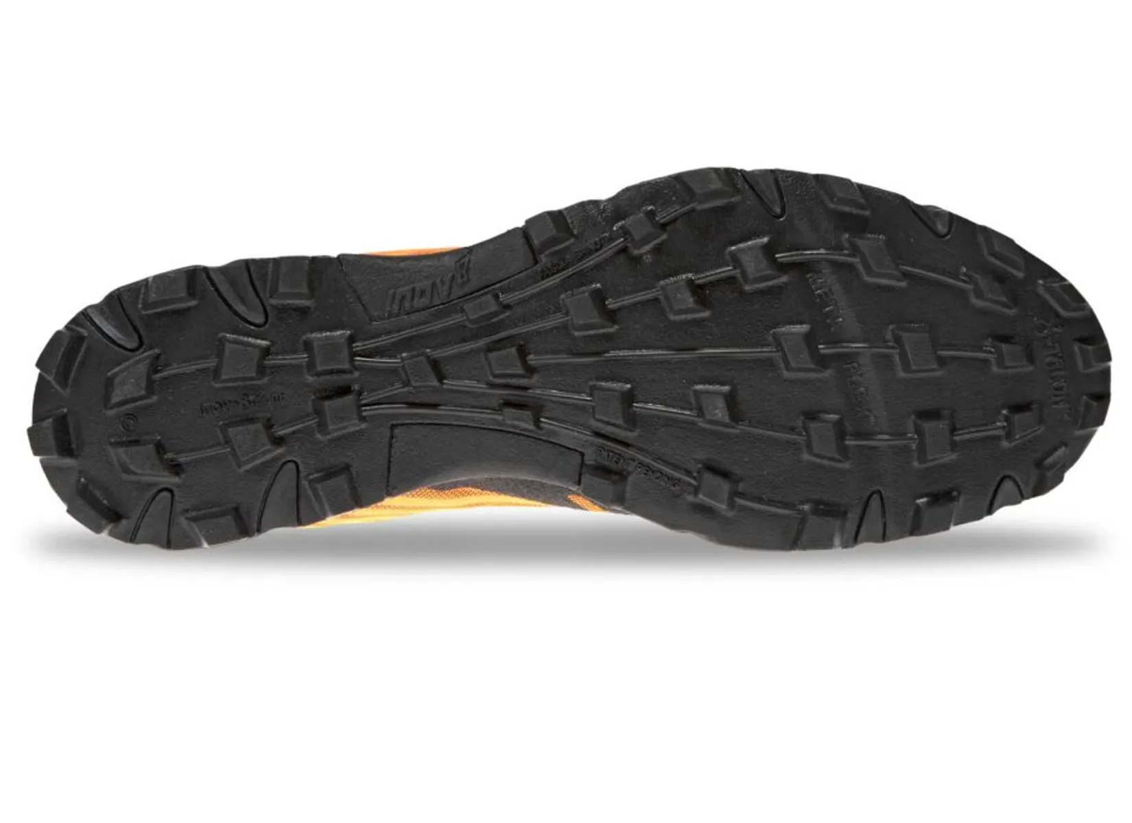Der Schuh macht optisch einen guten Eindruck. Er kombiniert knalliges Orange mit zurückhaltenden Tönen und sorgt dadurch für einen farblichen Akzent ohne Übertreibung. Der Schuh liegt leicht in der Hand, das Obermaterial ist nahtlos gefertigt. Besonders ins Auge sticht natürlich das aggressive Sohlenprofil mit seinen kantigen 8 mm langen Stollen.