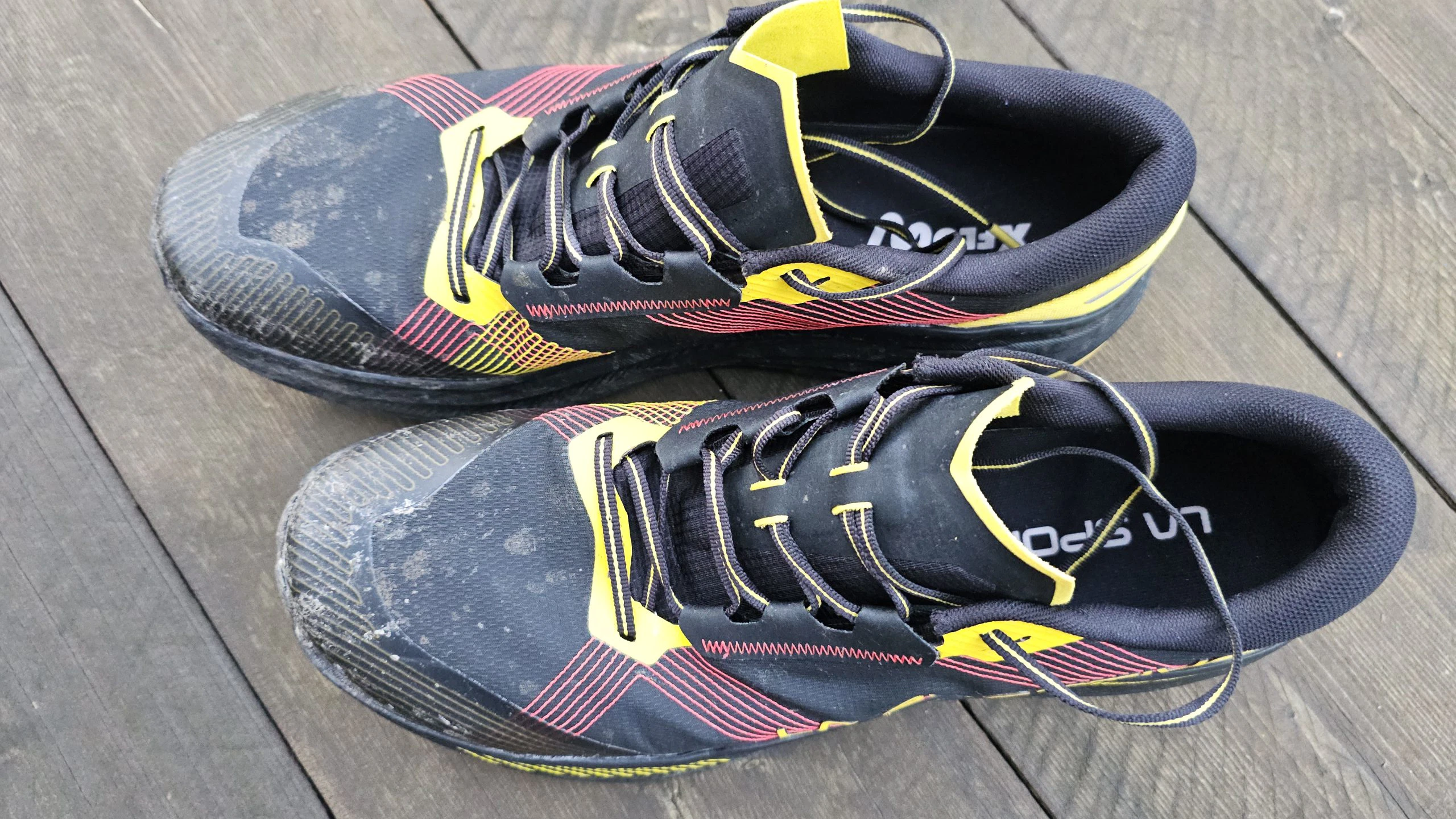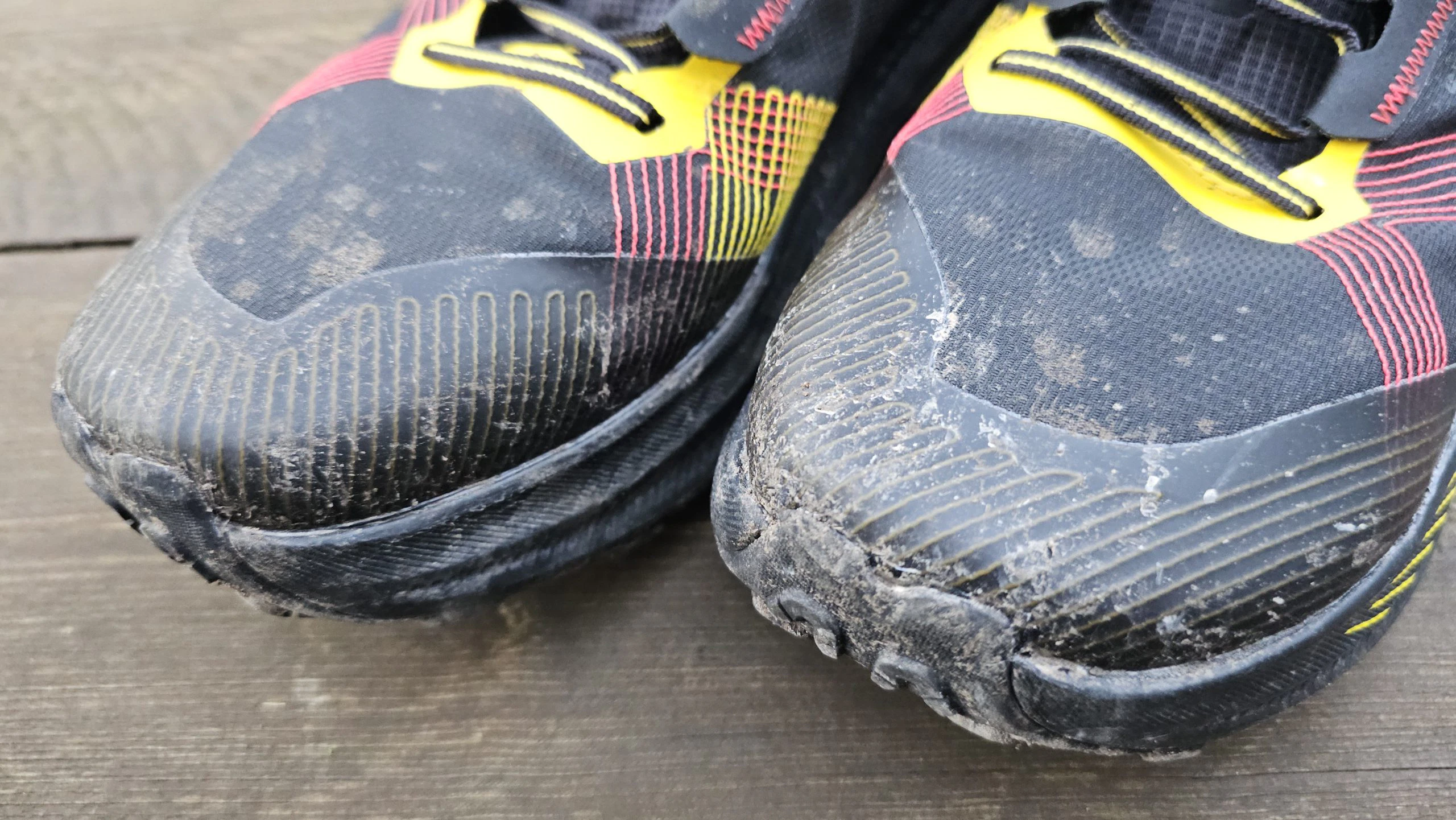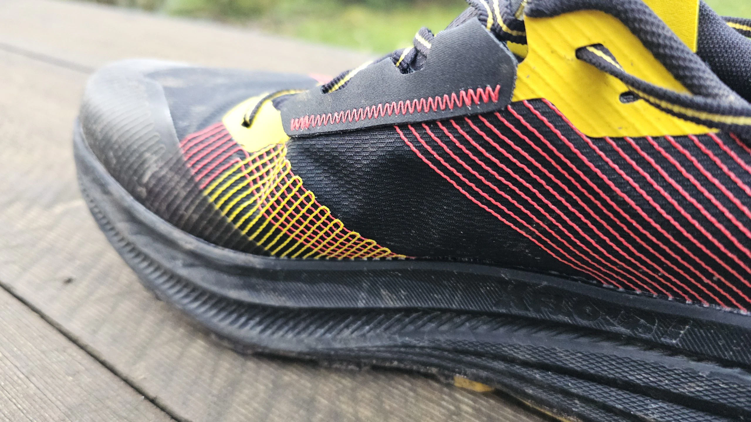 Im Test zeigte der La Sportiva Prodigio Max eine insgesamt solide Performance in puncto Grip und Stabilität. Die FriXion® Red Dual-Density Außensohle bietet eine gute Mischung aus Halt und Langlebigkeit. Besonders auf felsigem, trockenem Untergrund konnte der Schuh überzeugen – hier griff die Gummimischung zuverlässig und vermittelte ein sicheres Laufgefühl. In matschigen Passagen hingegen ließ die Traktion etwas nach, was vor allem an der moderaten Stollenhöhe von 4 mm liegt.