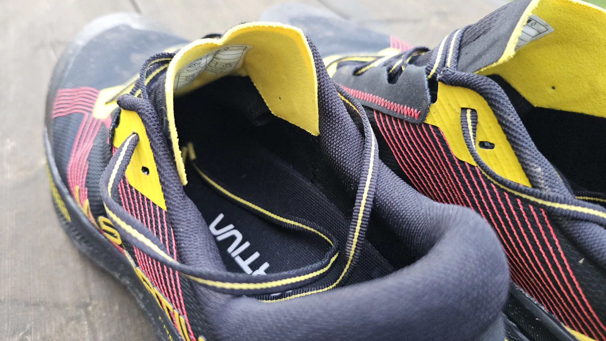 Björn fühlte sich im La Sportiva Prodigio Max von Anfang an wohl. Die Passform ist angenehm und etwas weiter geschnitten, was vor allem auf langen Distanzen für hohen Komfort sorgt und auch Läufern mit breiterem Vorderfuß entgegenkommt. Der Schuh sitzt sicher, ohne einzuengen. Die klassische Schnürung funktioniert grundsätzlich gut, allerdings zeigen die flachen Schnürsenkel Schwächen: Sie neigen dazu, sich zu lockern, weshalb ein Doppelknoten notwendig ist, um zuverlässigen Halt zu gewährleisten. Insgesamt bietet der Prodigio Max eine komfortable und stabile Passform mit kleinen Abstrichen bei der Schnürung.