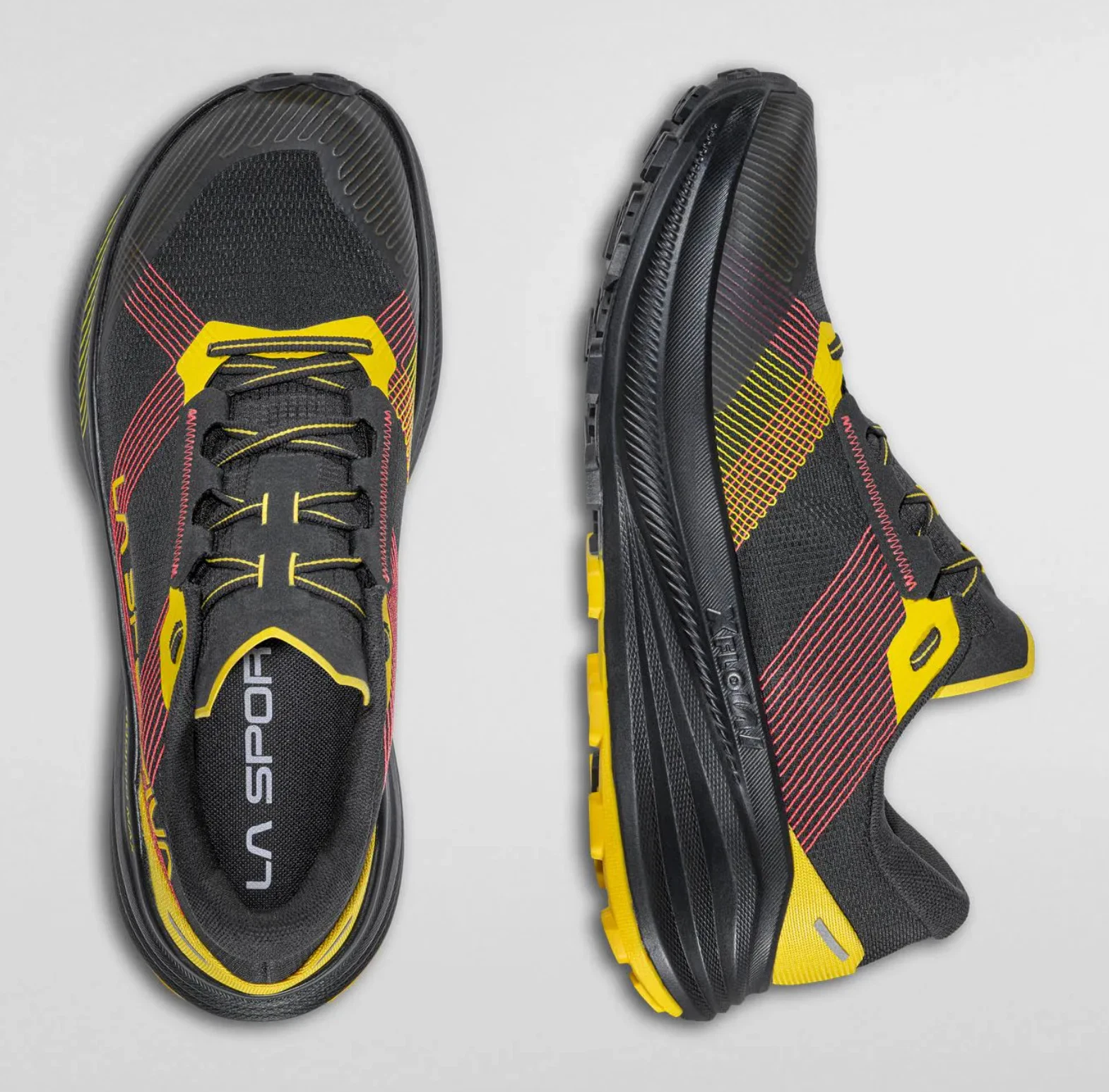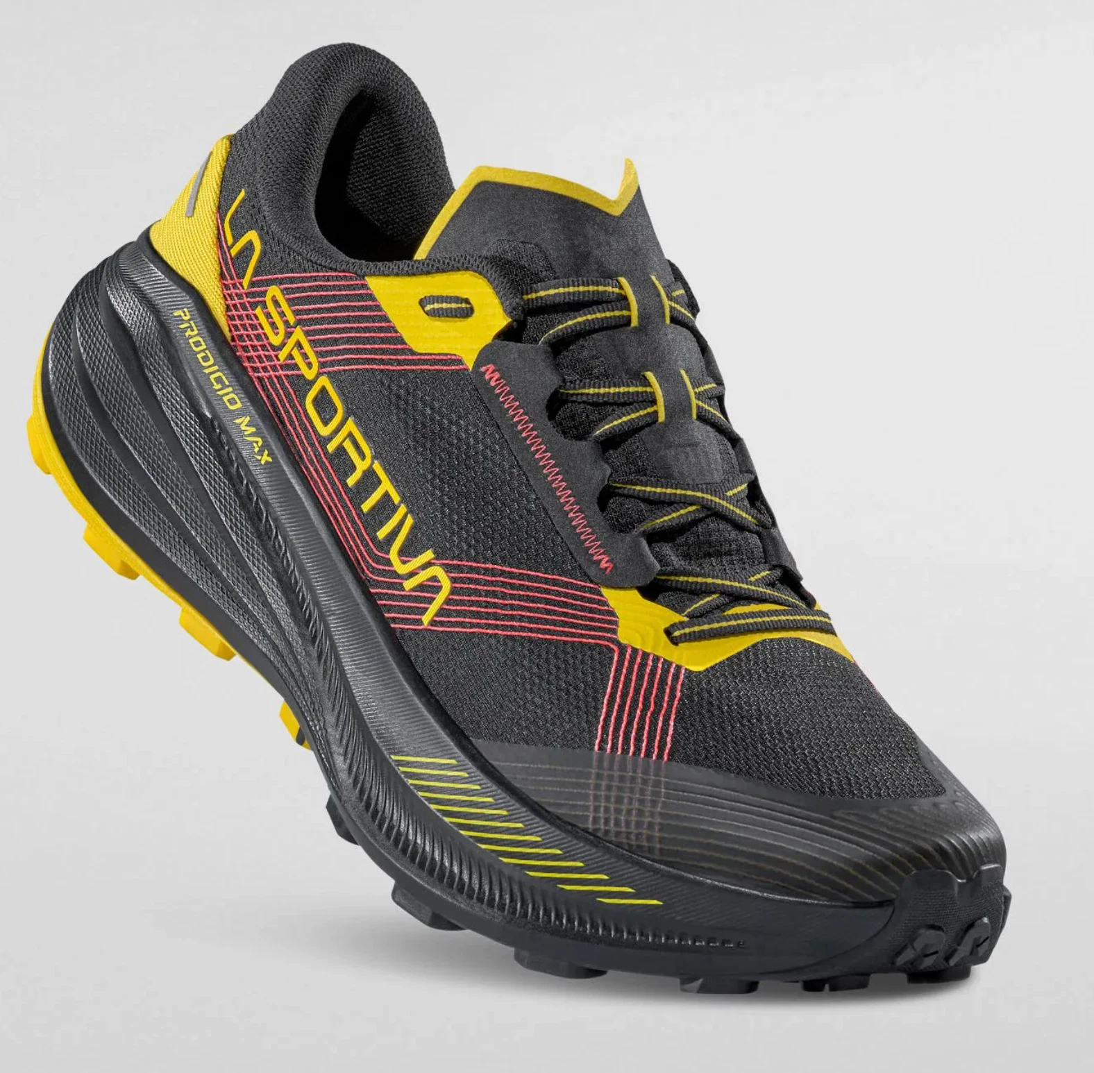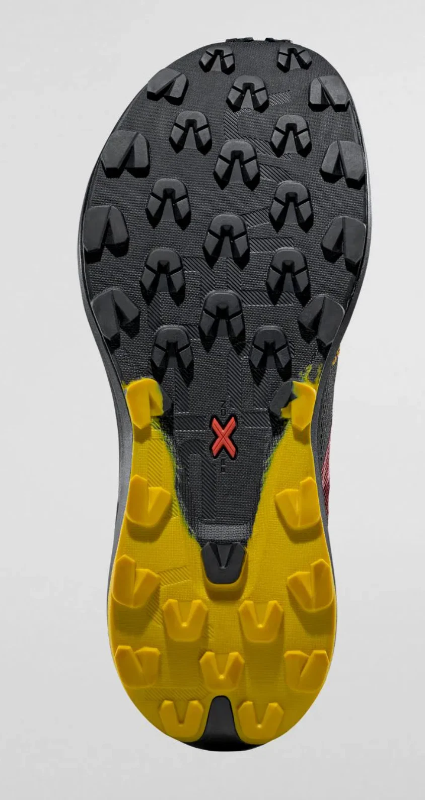 Die Dämpfung des La Sportiva Prodigio Max gehört zu den auffälligsten Stärken dieses Modells. Verantwortlich dafür ist die XFlow ENDURANCE™ Zwischensohle, die auf einer modernen Supercritical-Schaumtechnologie basiert. Dieser Materialaufbau sorgt für eine außergewöhnlich weiche, aber zugleich reaktionsfreudige Dämpfung mit hoher Energierückgabe und deutlich verbesserter Haltbarkeit im Vergleich zu herkömmlichem EVA-Schaum. Auf langen Läufen – egal ob im Gelände oder auf Asphalt – bietet der Schuh dadurch ein sehr geschmeidiges, ermüdungsarmes Laufgefühl.