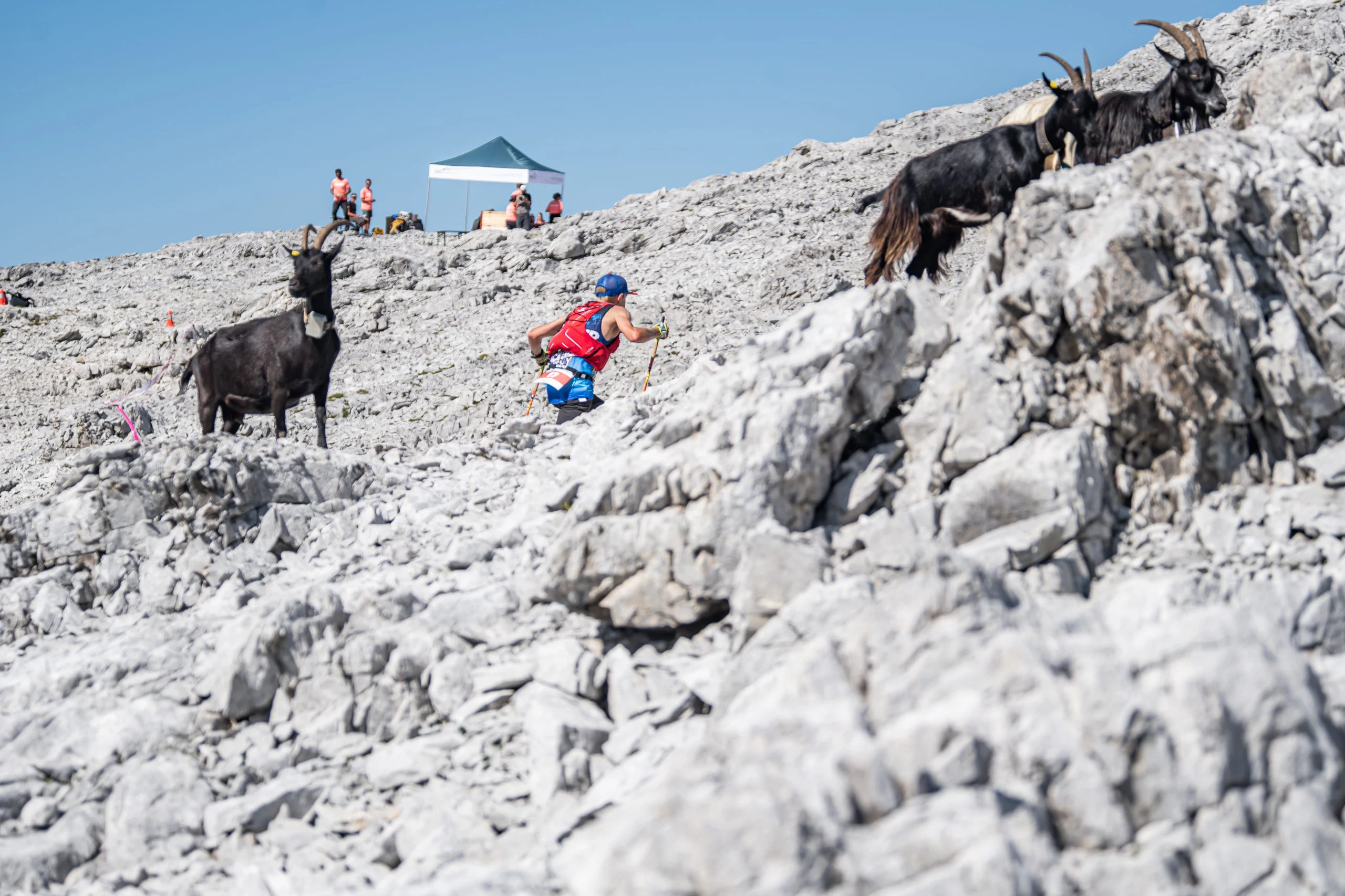 Auf dem Weg zur dritten Verpflegungsstation ist einiges geboten: der Anstieg zum Jägglisch Horn, einem tollen Aussichtspunkt, der Abstieg zur Aschariner Alp, ein relativ steiler Anstieg zum Eggberg und schließlich hinauf zum Start der Sonderwertung “Top Rock Prättigäu” in Gafia. Diese Sonderwertung prämiert die schnellste Zeit der Damen und der Herren auf einer knapp 9 km langen Strecke ab Gafia bis zum höchsten Punkt des Rennens, dem Rätschenhorn mit einer Hotelübernachtung inkl. Halbpension im Hotel Madrisajoch. Bei Erreichen der 3. VP waren die Wasserreserven fast aufgebraucht und so füllte ich nochmals alles auf, schnappte ein Stück Banane und ein Nusstörtli und machte mich nach kurzem Halt auf in den zweiten, wohl anstrengender Teil des Rennens.