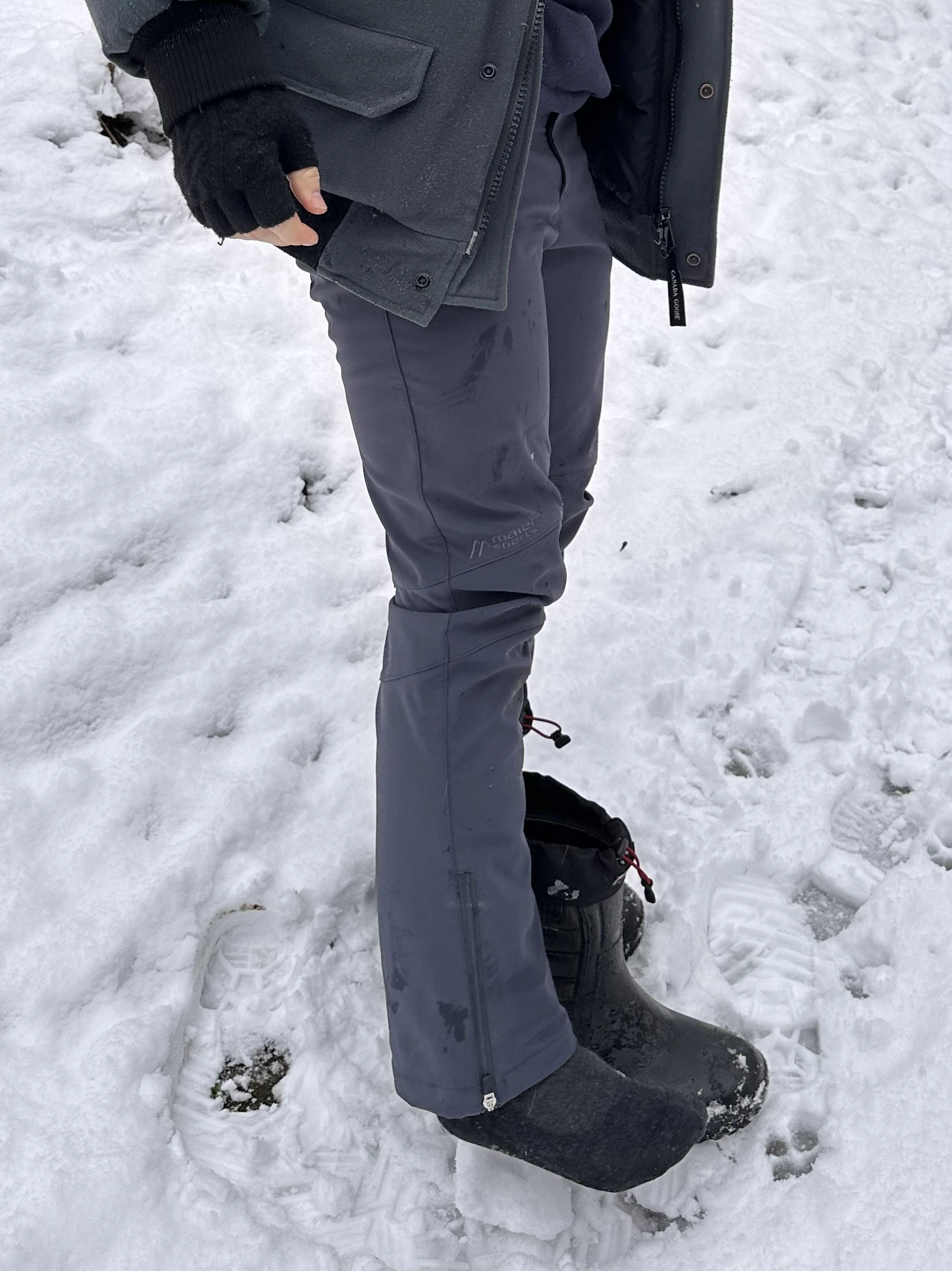 Christian konnte die Hose in verschiedenen Situationen bei winterlichen Bedingungen testen, wobei die Witterungsbedingungen sowie der Aktivitätslevel stark variierten. Unangenehm warm wurde es in der Hose bei über 12° Celsius bei moderater bis hoher Aktivität, und ab etwa 8° Celsius bei starker Aktivität. Zu kalt wurde es bei etwa -3° Celsius, als Christian inaktiv war und nur stand. Sobald Christian jedoch wieder aktiv wurde, konnte er auch noch angenehm bis unter -7° Celsius unterwegs sein, ohne dass es unangenehm kalt wurde. Alle Angaben sind an sonnigen Tagen und grob nach einer Stunde Aktivität/Inaktivität bei moderatem Wind getestet worden. Sollte es zudem doch mal zu warm gewesen sein, so konnte Christian die Hosenbeine mit Hilfe des großzügigen Reißverschlusses einfach hochkrempeln. Der Wind- und Wetterschutz hat durchweg immer zuverlässig funktioniert. Starker Wind war quasi nicht spürbar. Moderater Regen beziehungsweise das Laufen im Tiefschnee haben keinen akuten Feuchte-Durchbruch an den Beinen erzeugt.