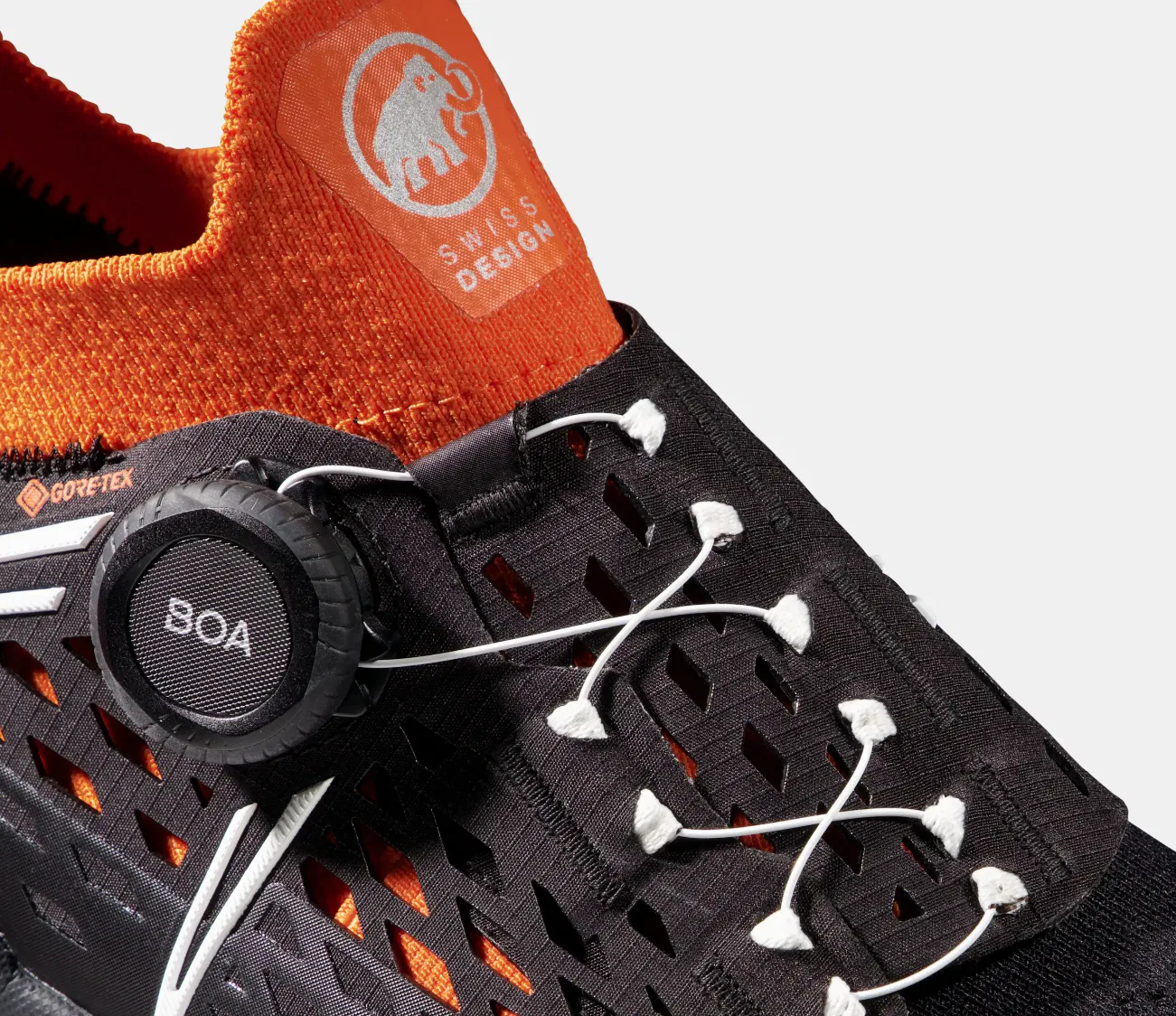 Der Mammut Aenergy TR BOA Mid GTX gefiel bereits beim auspacken durch seine hochwertige Verarbeitung. Das Obermaterial besteht aus strapazierfähigem synthetischem Gewebe, das mit einer GORE-TEX Membran ausgestattet ist, was den Schuh wasserdicht macht. Die sorgfältige Verarbeitung, inklusive der robusten Nähte und der hochwertigen Materialien, lässt keine Wünsche offen. Besonders hervorzuheben ist der umlaufende Geröllschutz, der den Fuß auch in rauem Gelände zuverlässig schützt.