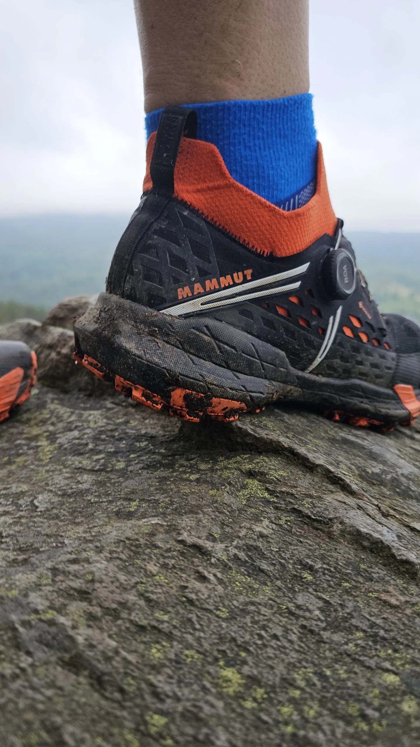 Ein Highlight des Aenergy TR BOA Mid GTX ist das BOA Fit System, das eine präzise und gleichmäßige Anpassung des Schuhs ermöglicht. Mit nur einem Dreh lässt sich die Schnürung optimal einstellen, was besonders beim Trailrunning und in technischem Gelände von Vorteil ist. Die Passform des Schuhs würde Björn als recht komfortabel beschrieben, das auch bei längeren Distanzen. Der Schuh bietet eine sockenähnliche Passform, die sich gut an den Fuß anpasst und Druckstellen vermeidet. Lediglich der Einstieg in den Schuh erwies sich bei Björn als etwas komplizierter, da der Einstieg recht eng ist. ISt man aber erstmal im Schuh, passt alles.