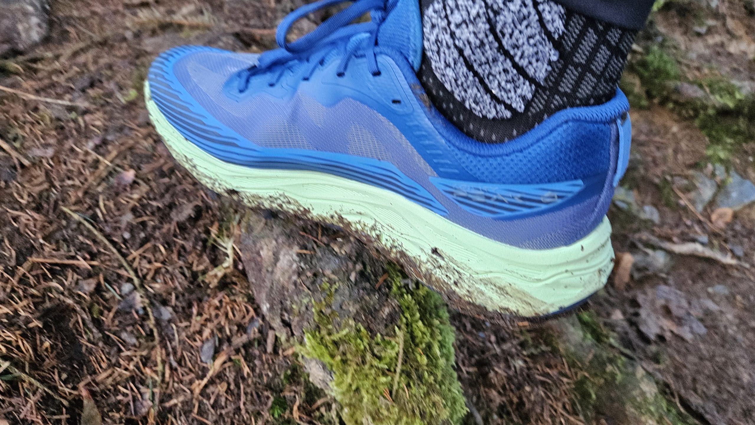 Getestet wurde der Schuh auf steinigen Trails auf Mallorca sowie bei Matsch und Schlamm in der Eifel. Die Traktion überzeugte sowohl auf nassen Steinen als auch im Schlamm. Die Dämpfung schluckt harte Untergründe spürbar, ohne den Kontakt zum Trail zu verlieren. Mit 270 g läuft sich der Schuh angenehm leicht und zeigt auch nach 300 km keine Schwächen.