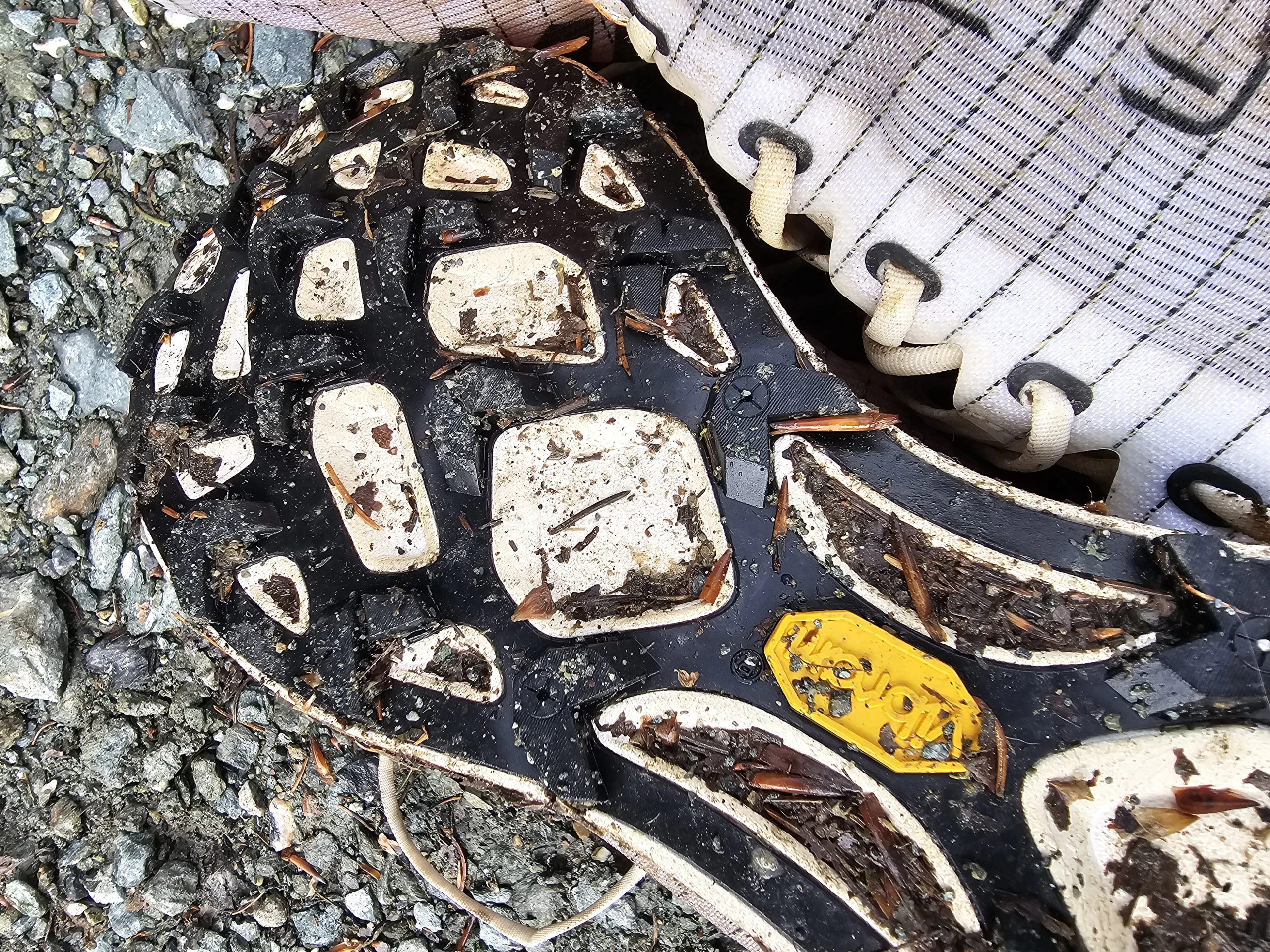 Der Grip des Merrell Skyfire 2 ist einer seiner herausragenden Eigenschaften. Die Vibram Megagrip Außensohle bietet exzellenten Halt, egal ob auf nassem oder trockenem Untergrund. Hier zeigt der Schuh seine Stärke, insbesondere in steilen und technischen Abschnitten. Allerdings bietet er nur wenig Stabilität, was vor allem in unebenem Gelände auffällt. Läufer, die auf zusätzliche Stabilität angewiesen sind, werden mit dem Merrell Skyfire 2 MTL Matryx keine Freude haben