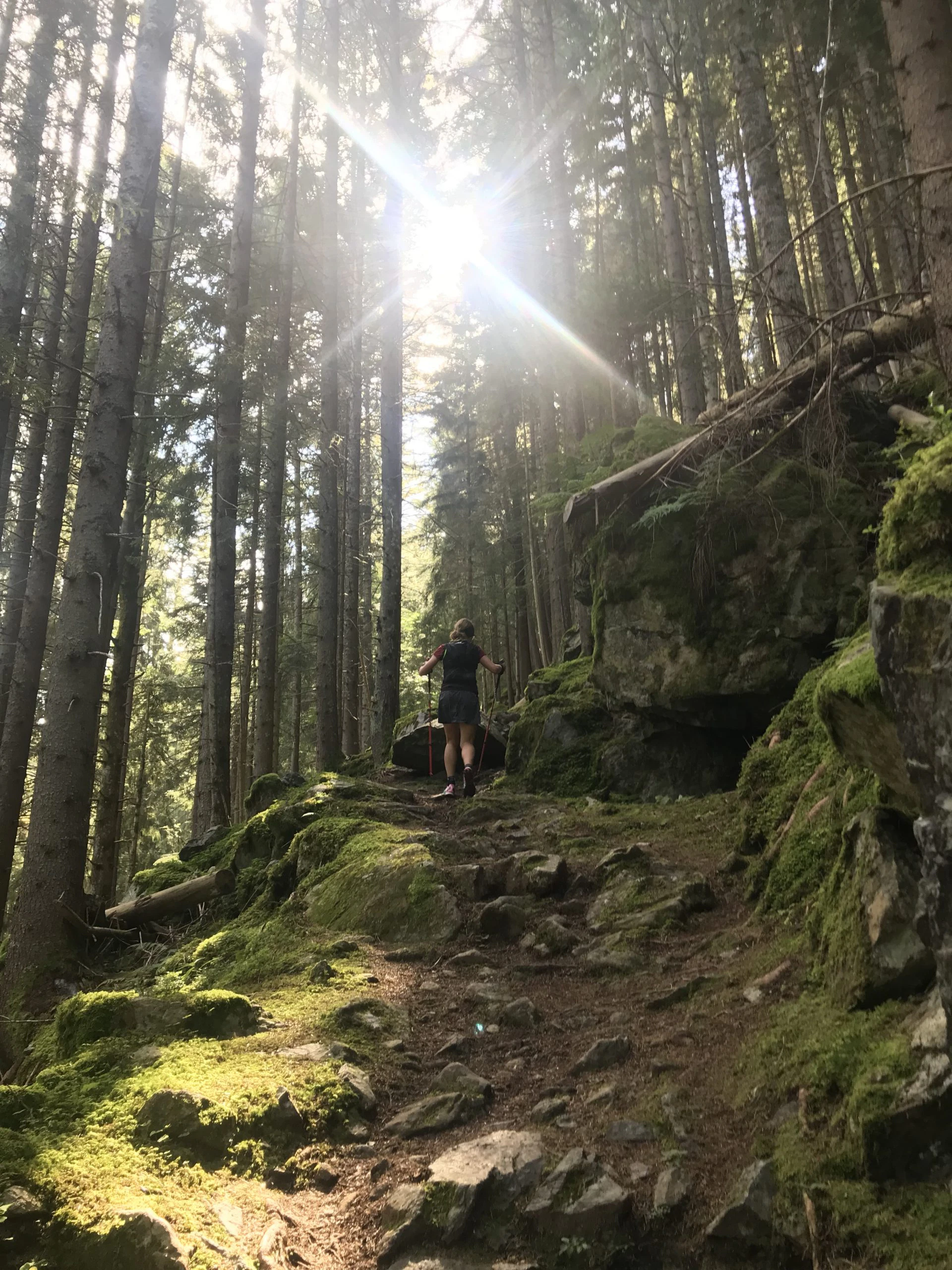 Bei Ankunft an der Talstation der Valisera Bahn, der vierten Verpflegungsstation, füllte ich nochmals beide Flasks auf, nahm mir ein paar Riegelstücke und Apfelschnitze und schüttete nochmals kaltes Wasser über den Kopf, denn mittlerweile war es recht warm und es wartete ein weiterer anspruchsvoller Aufstieg bis zum Ziel auf der Nova Stoba. Mit etwas schweren Beinen vom langen Downhill machte ich mich auf den Weg in Richtung Ziel.