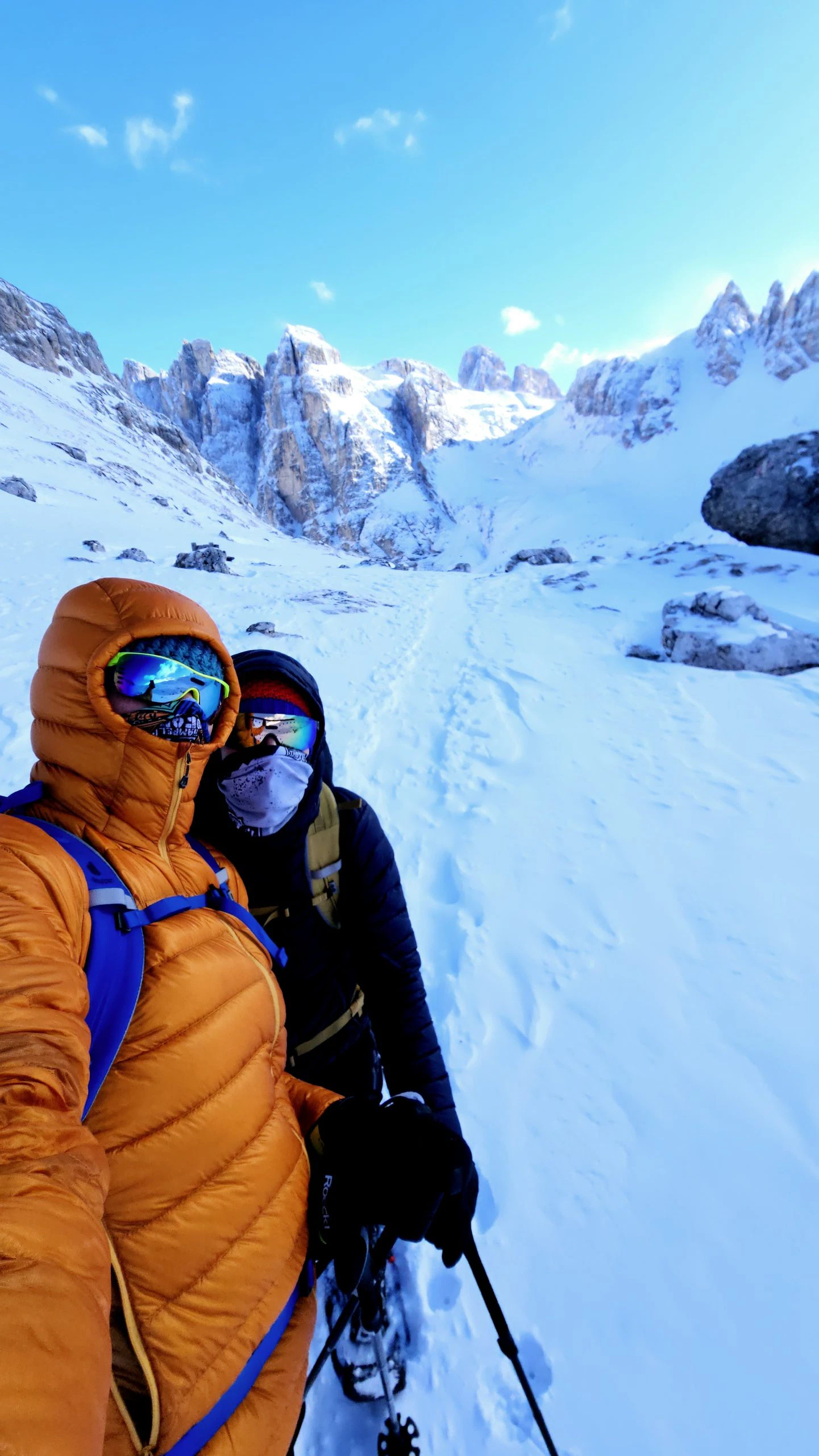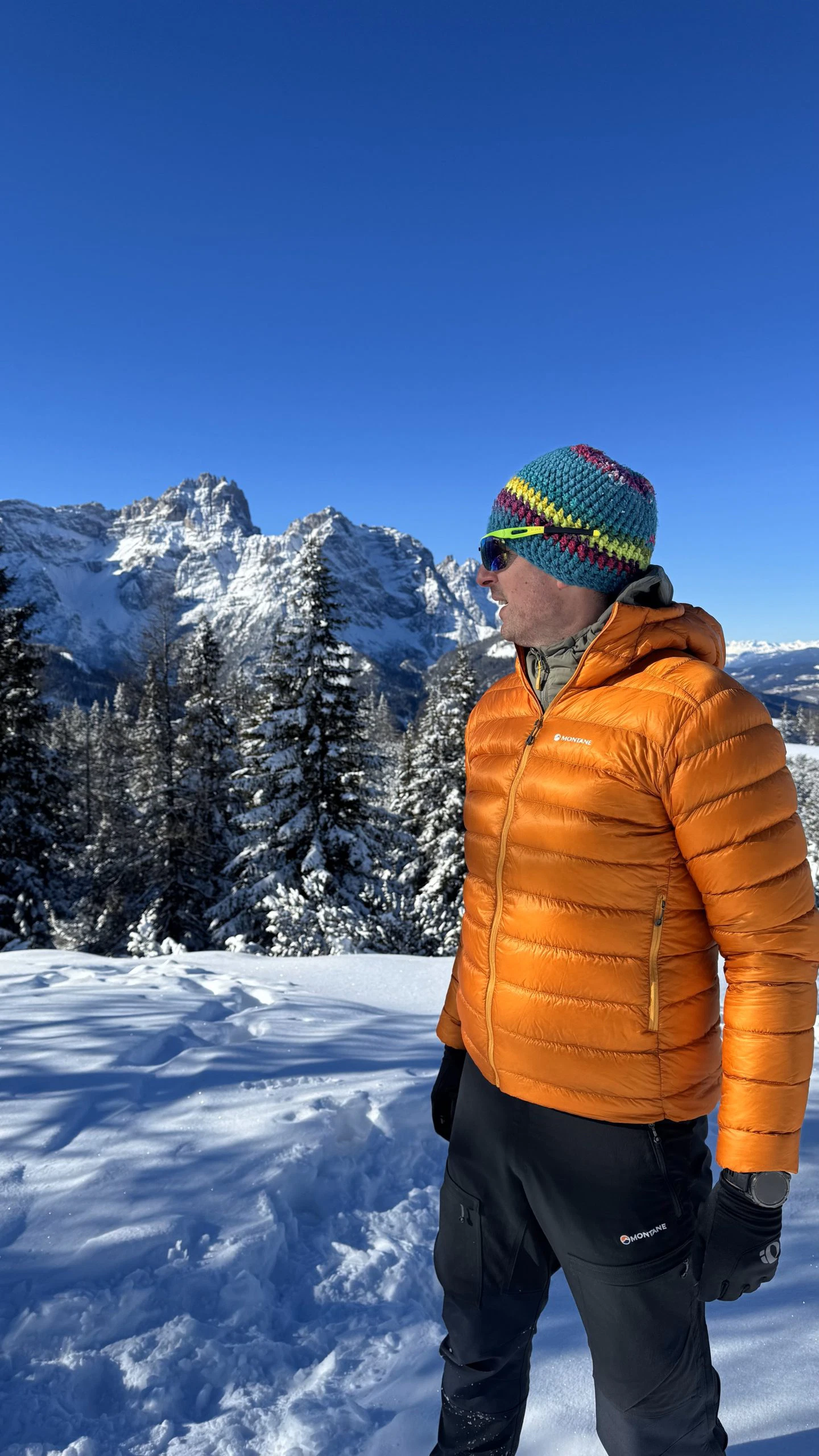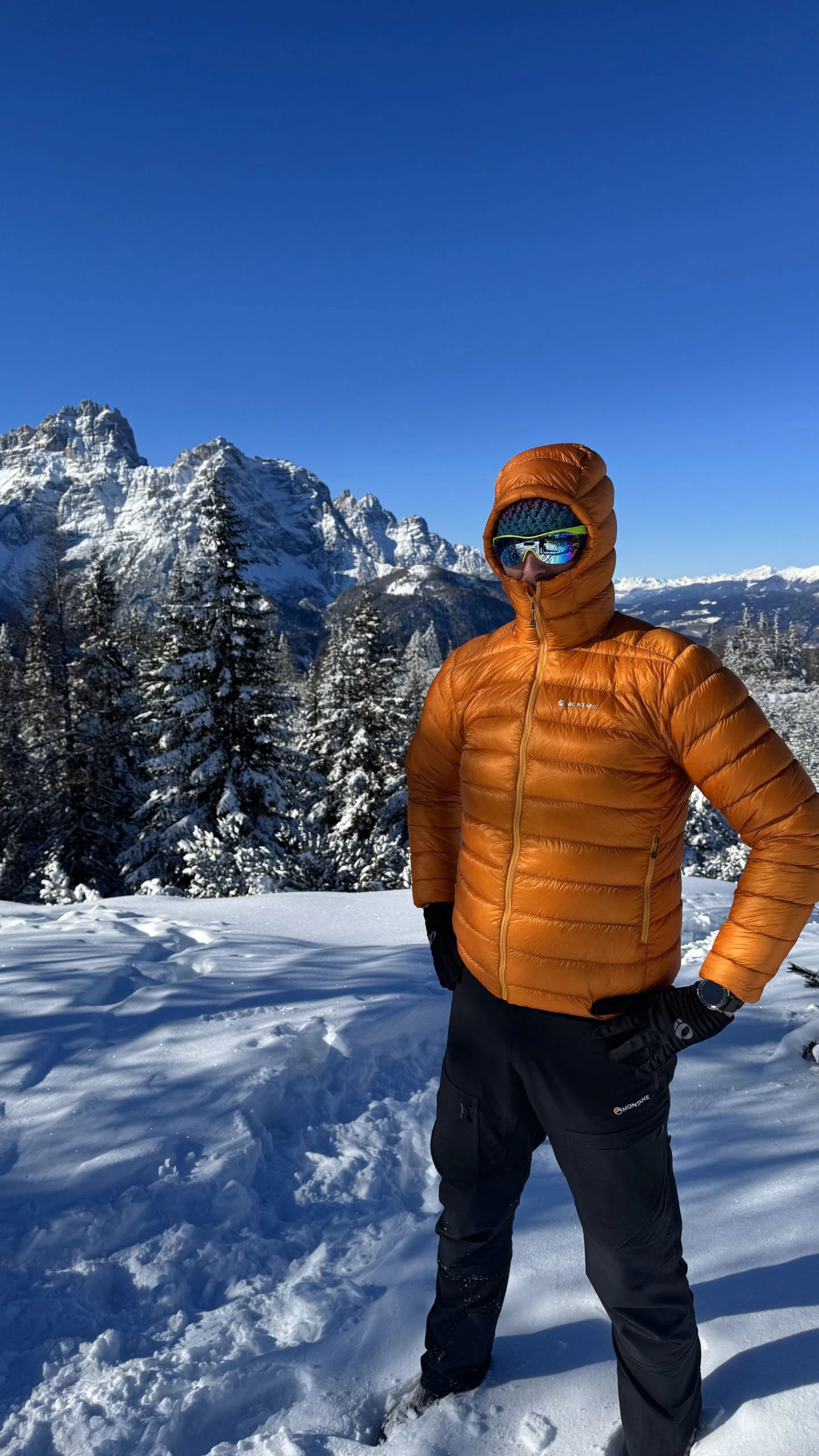 Für den Test der Montane Alpine 850 Lite Hooded Down Jacket wurde die Jacke unter realen Bedingungen bei einer Schneeschuhtour zu den 3 Zinnen in Südtirol getragen. Die Tour fand bei Temperaturen von etwa -6 Grad Celsius statt, begleitet von regelmäßigen eisigen Winden, die vor allem auf den freien Hochflächen deutlich zu spüren waren. Diese Bedingungen boten eine ideale Gelegenheit, die Jacke in puncto Wärmeleistung, Wetterschutz und Komfort zu testen. Bereits beim Start der Tour zeigte sich, dass die Jacke durch ihr geringes Gewicht und Packmaß kaum auffällt, wenn sie im Rucksack verstaut wird. Sobald der eisige Wind einsetzte, wurde sie jedoch schnell zum unverzichtbaren Begleiter.