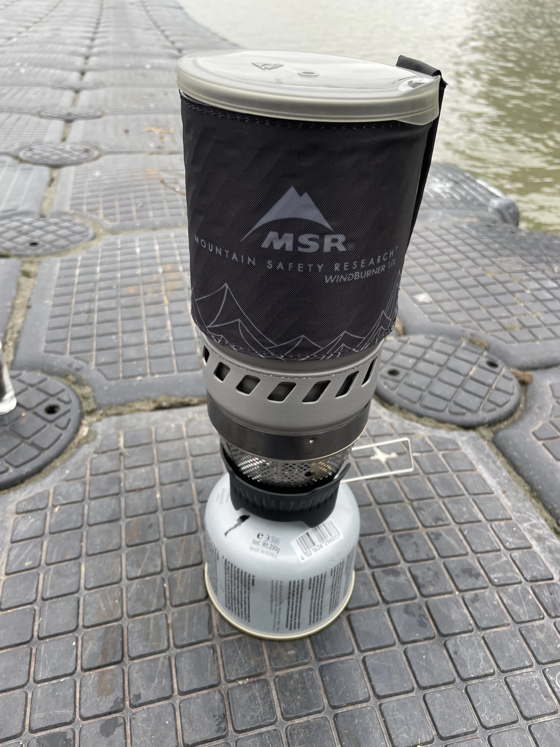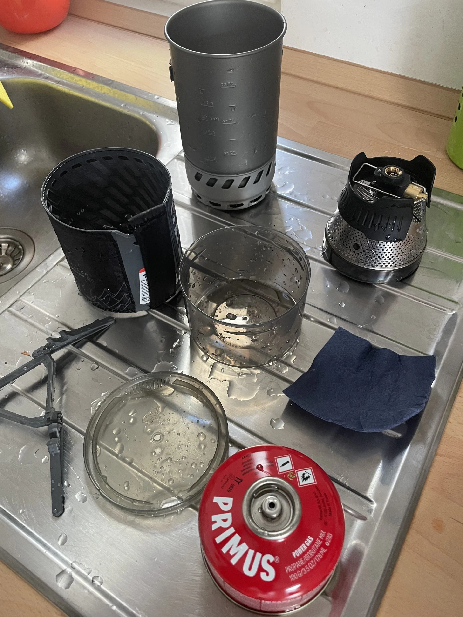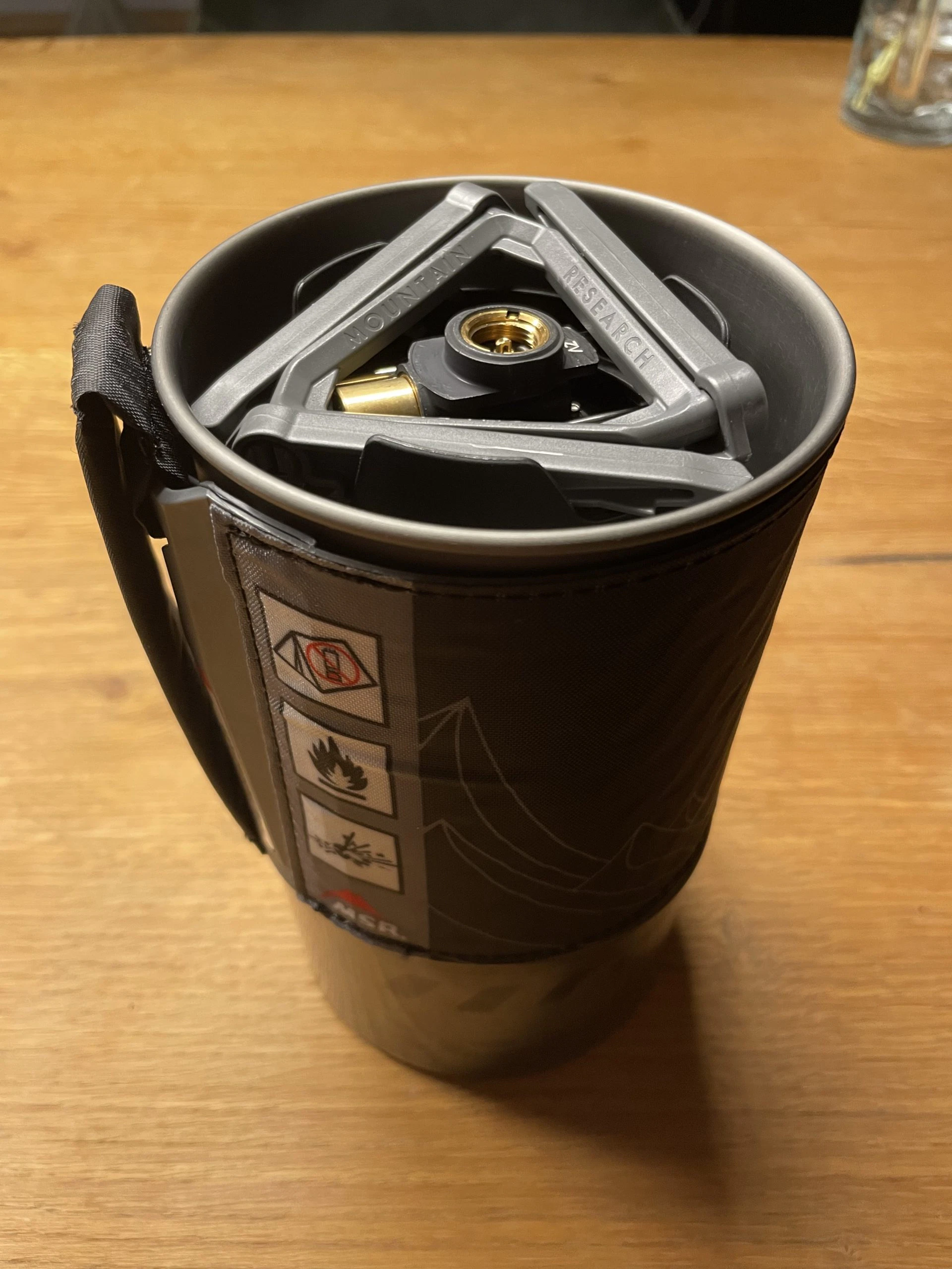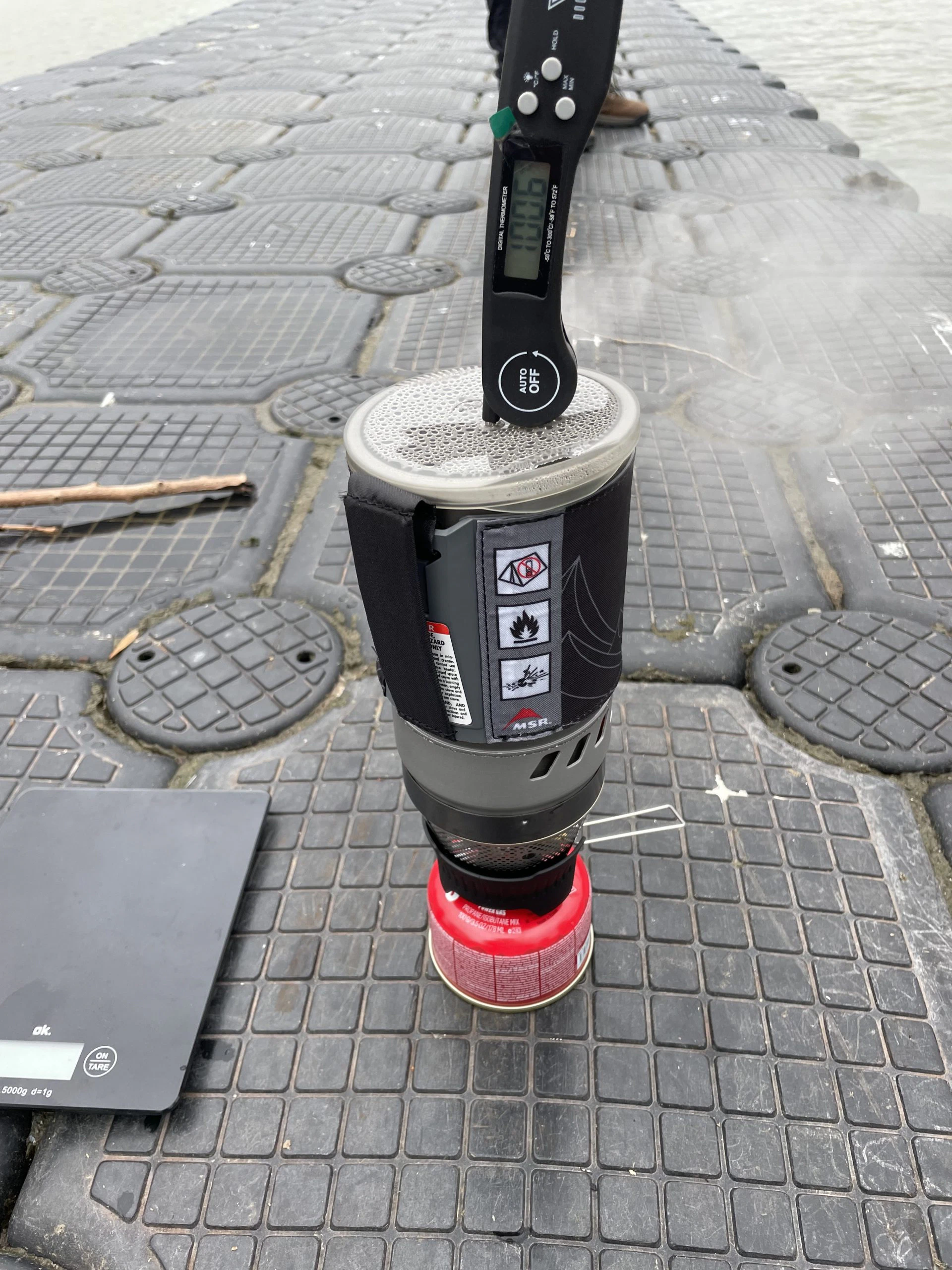 Da Christian leider nicht den Kaffeefilter vom MSR dabei hatte, jedoch auf seinen Kaffee nicht verzichten wollte, hat er erfolgreich einen 6-eckigen Bialetti-Espressokocher (nicht von MSR) zusammen mit dem Windburner Personal Stove System verwendet. Dies hat aber nur geklappt, weil gerade so ausreichend Sauerstoff die Flamme erreicht hat – bei größeren Töpfen oder Bechern wird ein zusätzliches Modul benötigt, um die Sauerstoffzufuhr zu gewährleisten.