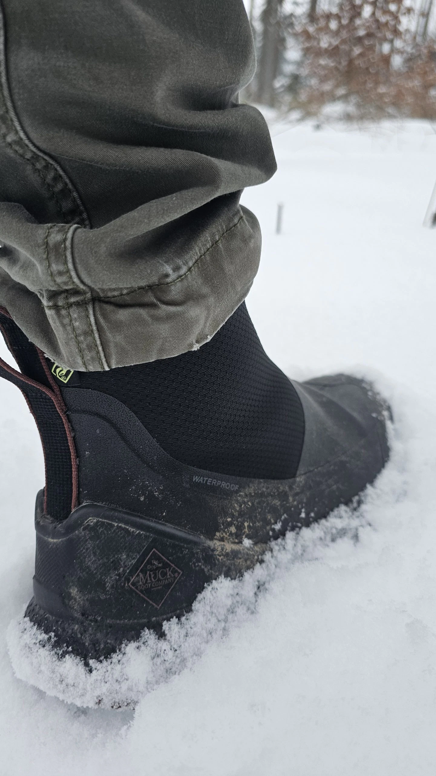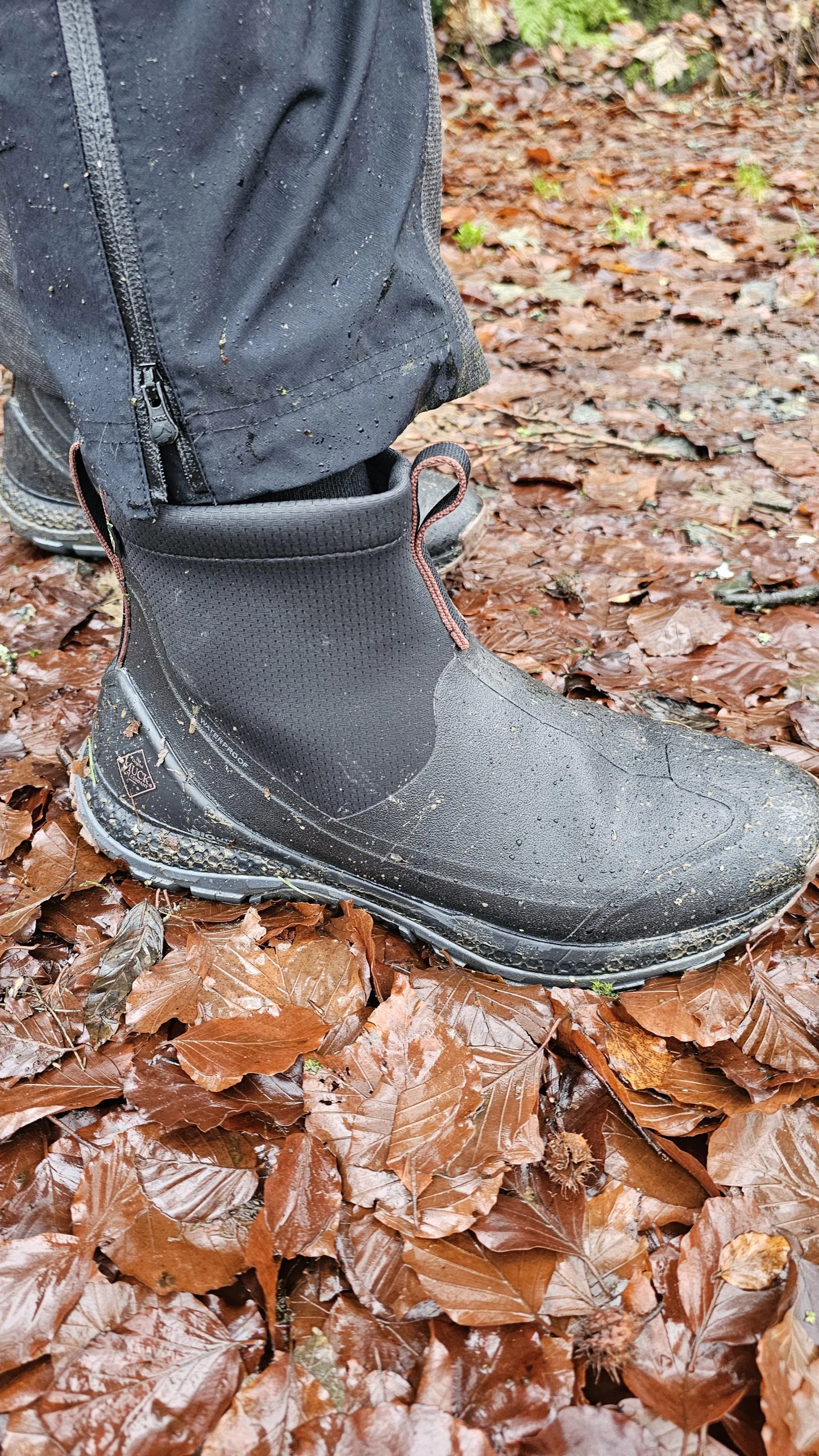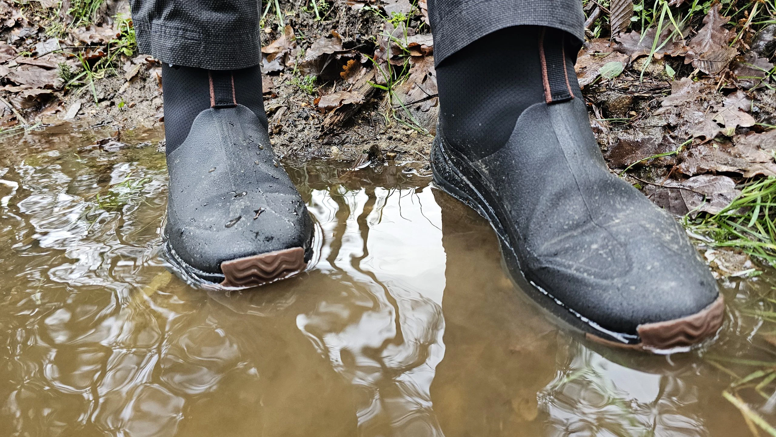 Björn nutzte den Muck Boot Herren Outscape Max überwiegend für die morgendliche und abendliche Gassirunde mit Nugget. Durch das Slip-On Prinzip entfällt das lästige Binden und gerade wenn es morgens mal schnell gehen muss, findet Björn dies als großen Pluspunkt. Da die Schuhe durch das 3mm dicke Neopren komplett wasserdicht sind, bleiben die Socken trocken. Dies ist gerade auch morgens klasse, da man so keine Socken mehr wechseln muss, bevor es auf die Arbeit geht. Dem Gang über die nasse Wiese oder durch Pfützen steht mit diesem Schuh also nichts mehr im Wege. Da wir die Schuhe im Winter zum Test hatten, sorgte das 3mm Neopren zudem für angenehm warme Füße. Wie sich das Schuhklima im Sommer entwickelt, wird sich zeigen.