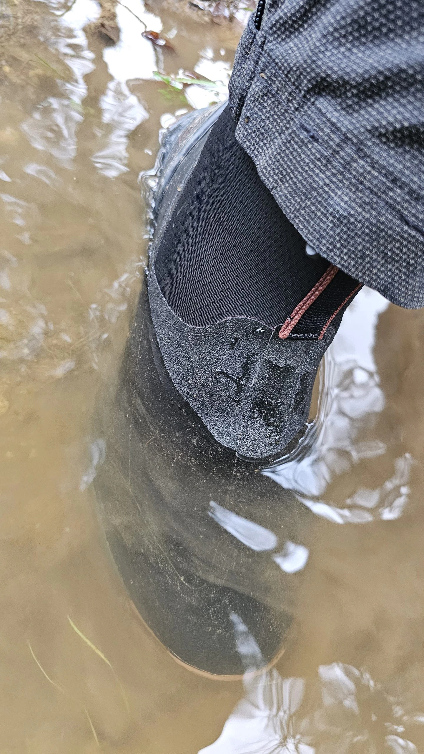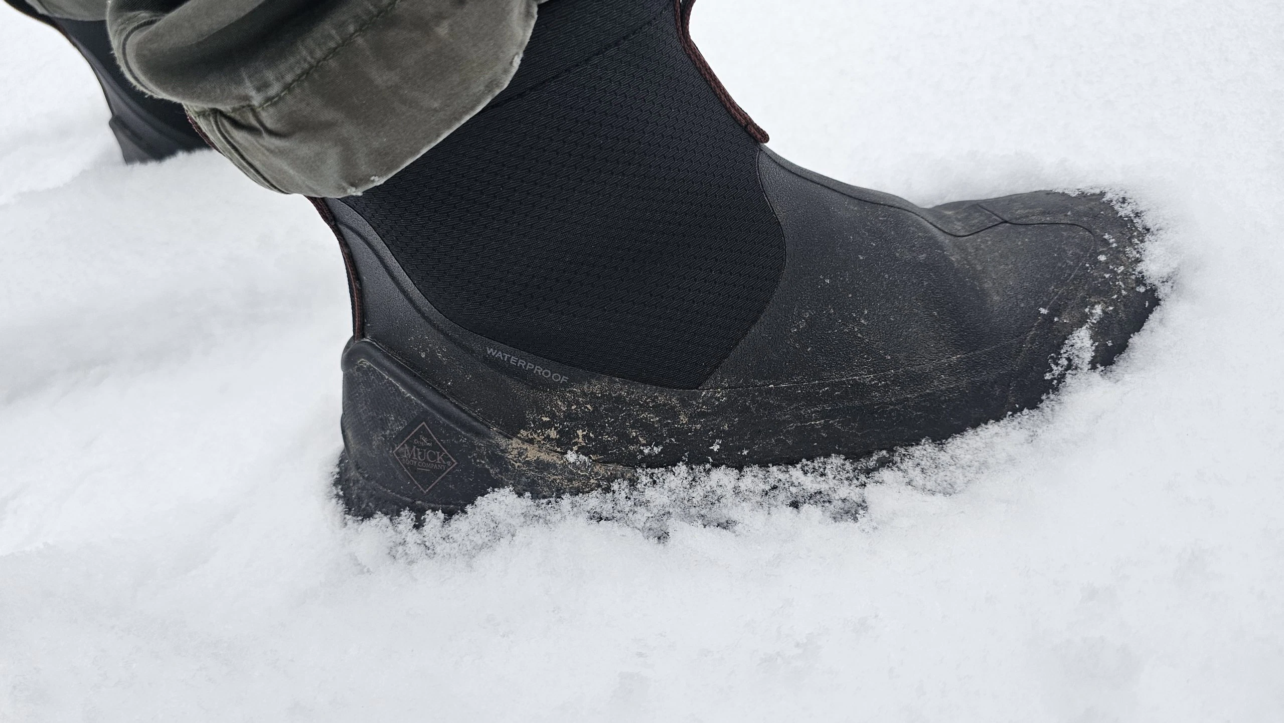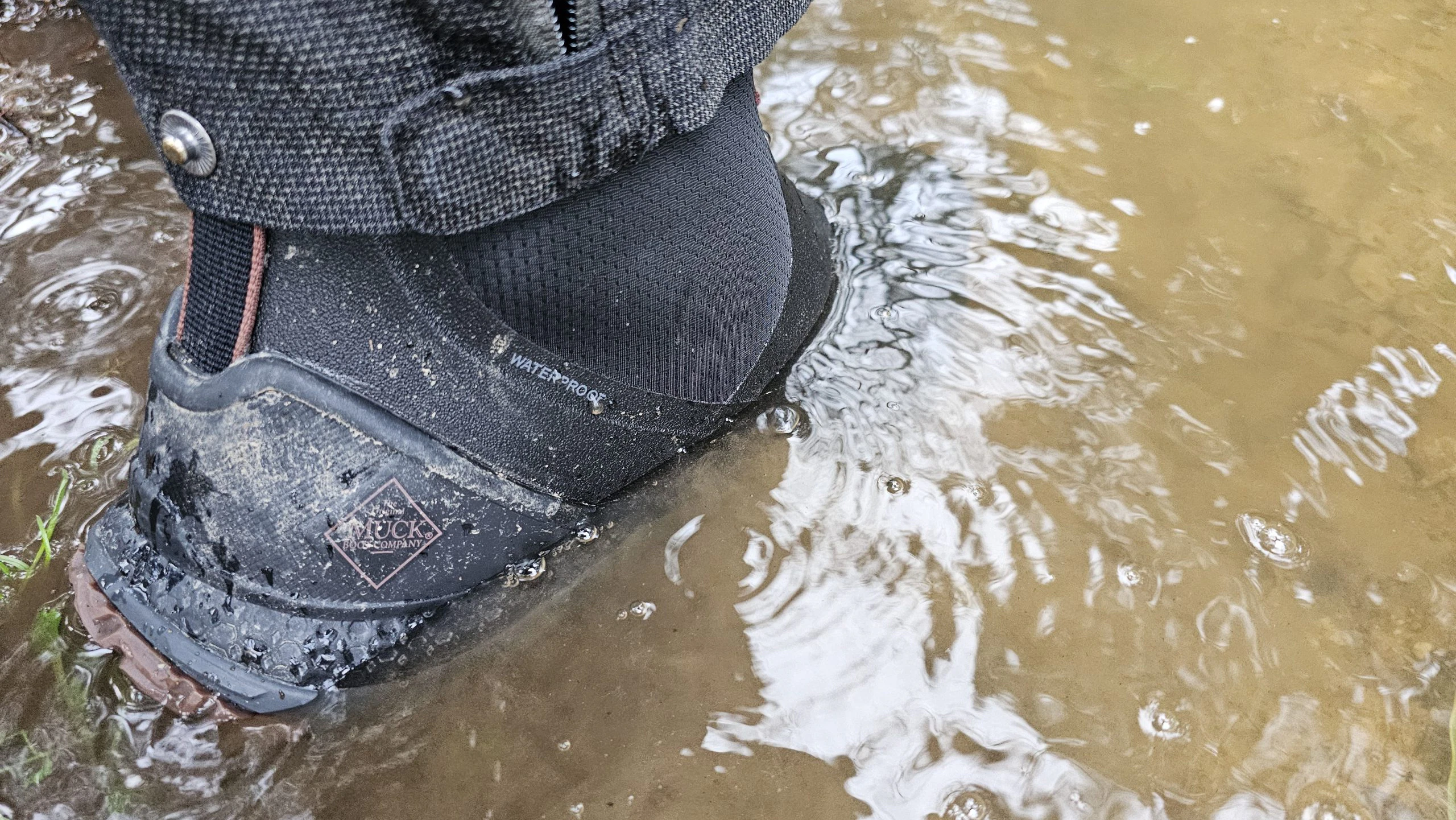 Björn nutzte den Muck Boot Herren Outscape Max überwiegend für die morgendliche und abendliche Gassirunde mit Nugget. Durch das Slip-On Prinzip entfällt das lästige Binden und gerade wenn es morgens mal schnell gehen muss, findet Björn dies als großen Pluspunkt. Da die Schuhe durch das 3mm dicke Neopren komplett wasserdicht sind, bleiben die Socken trocken. Dies ist gerade auch morgens klasse, da man so keine Socken mehr wechseln muss, bevor es auf die Arbeit geht. Dem Gang über die nasse Wiese oder durch Pfützen steht mit diesem Schuh also nichts mehr im Wege. Da wir die Schuhe im Winter zum Test hatten, sorgte das 3mm Neopren zudem für angenehm warme Füße. Wie sich das Schuhklima im Sommer entwickelt, wird sich zeigen.