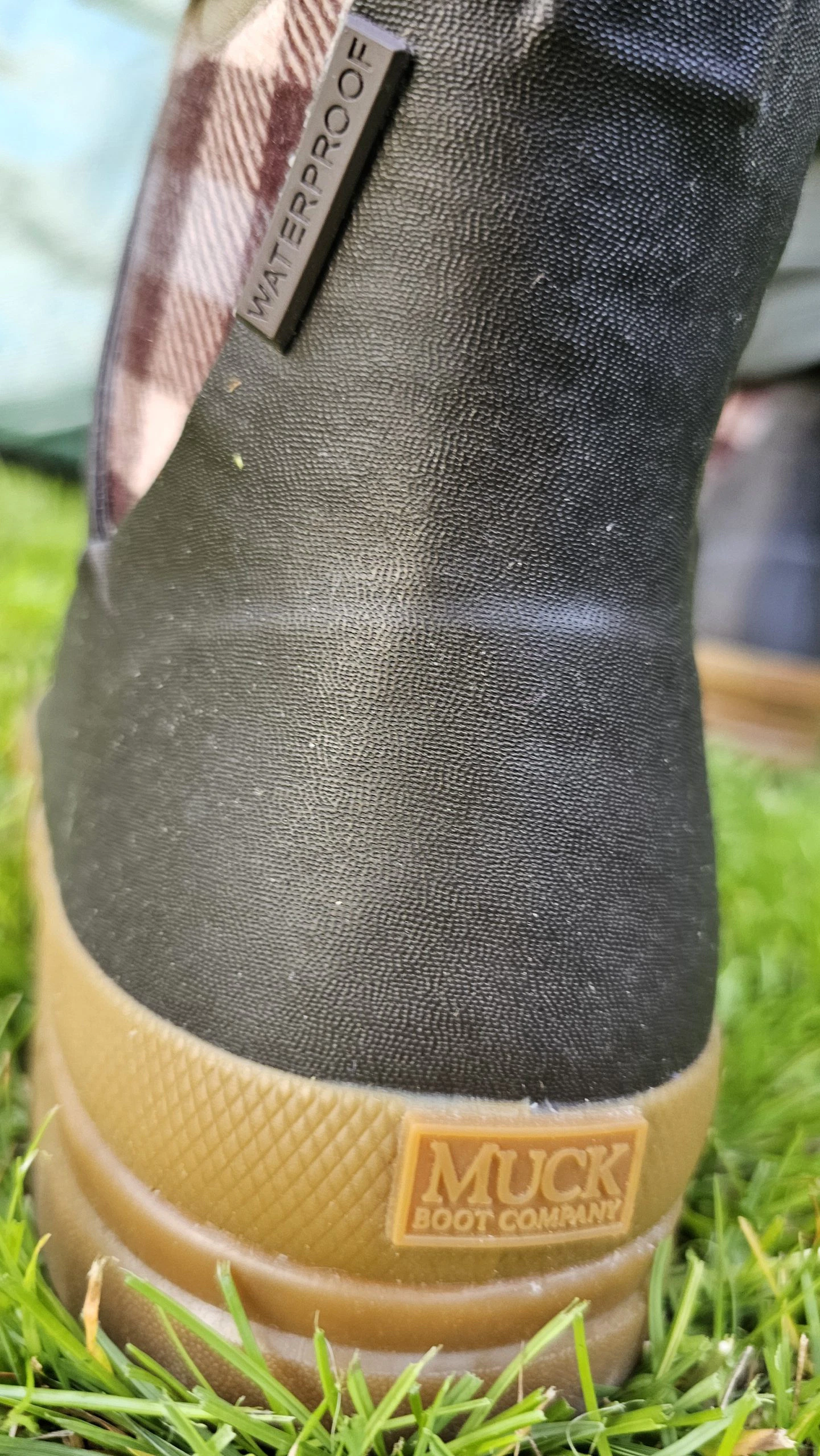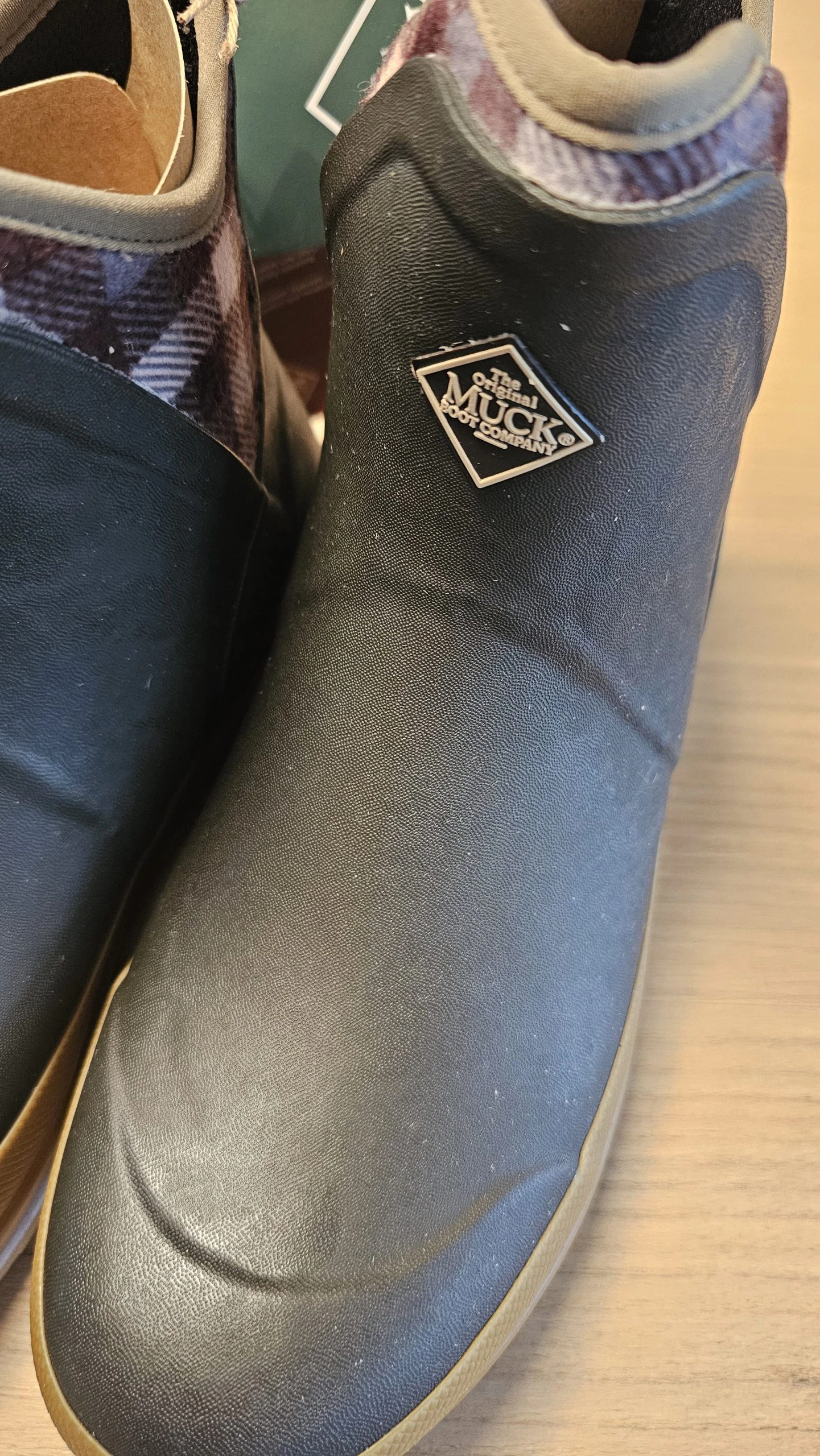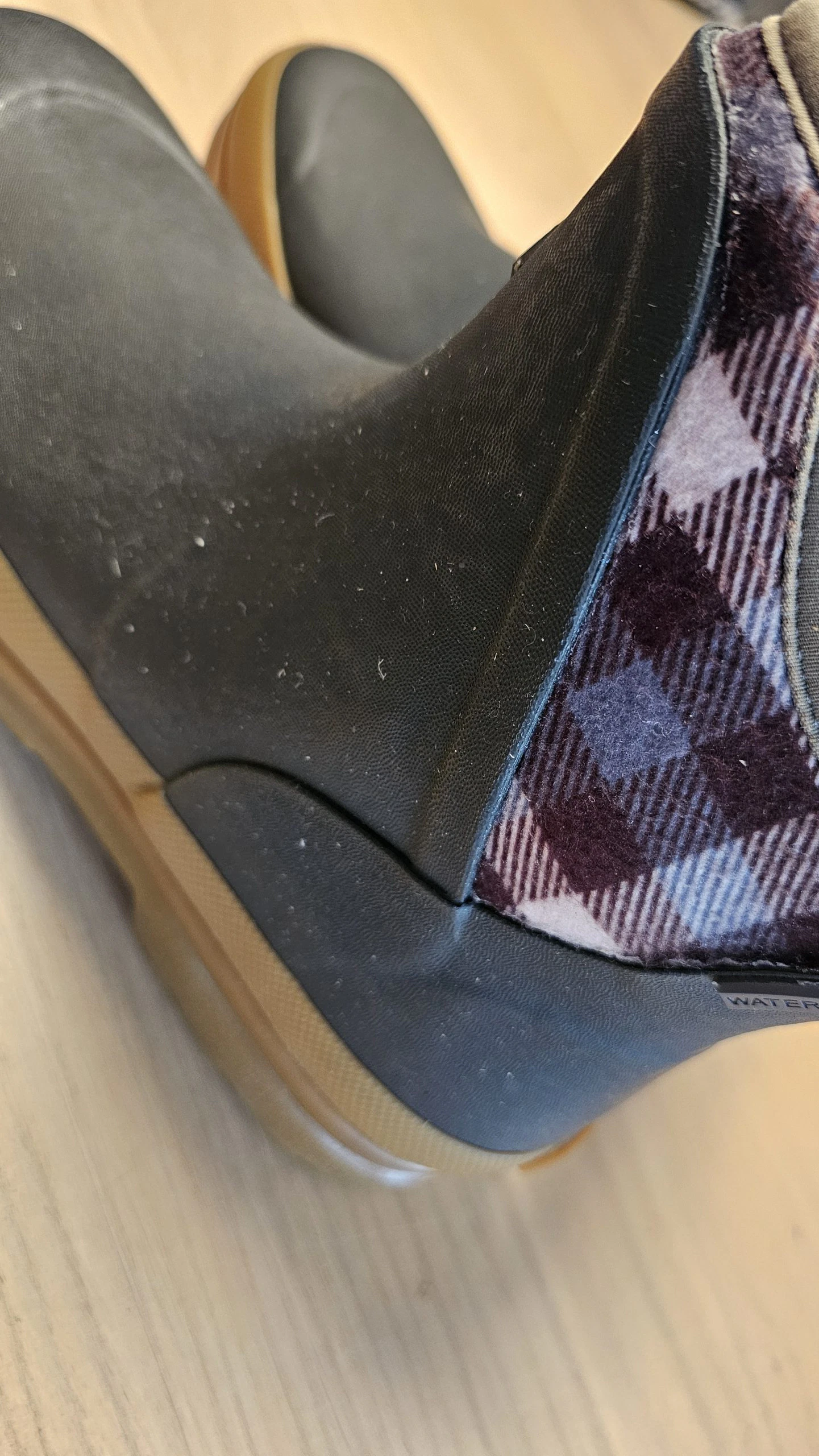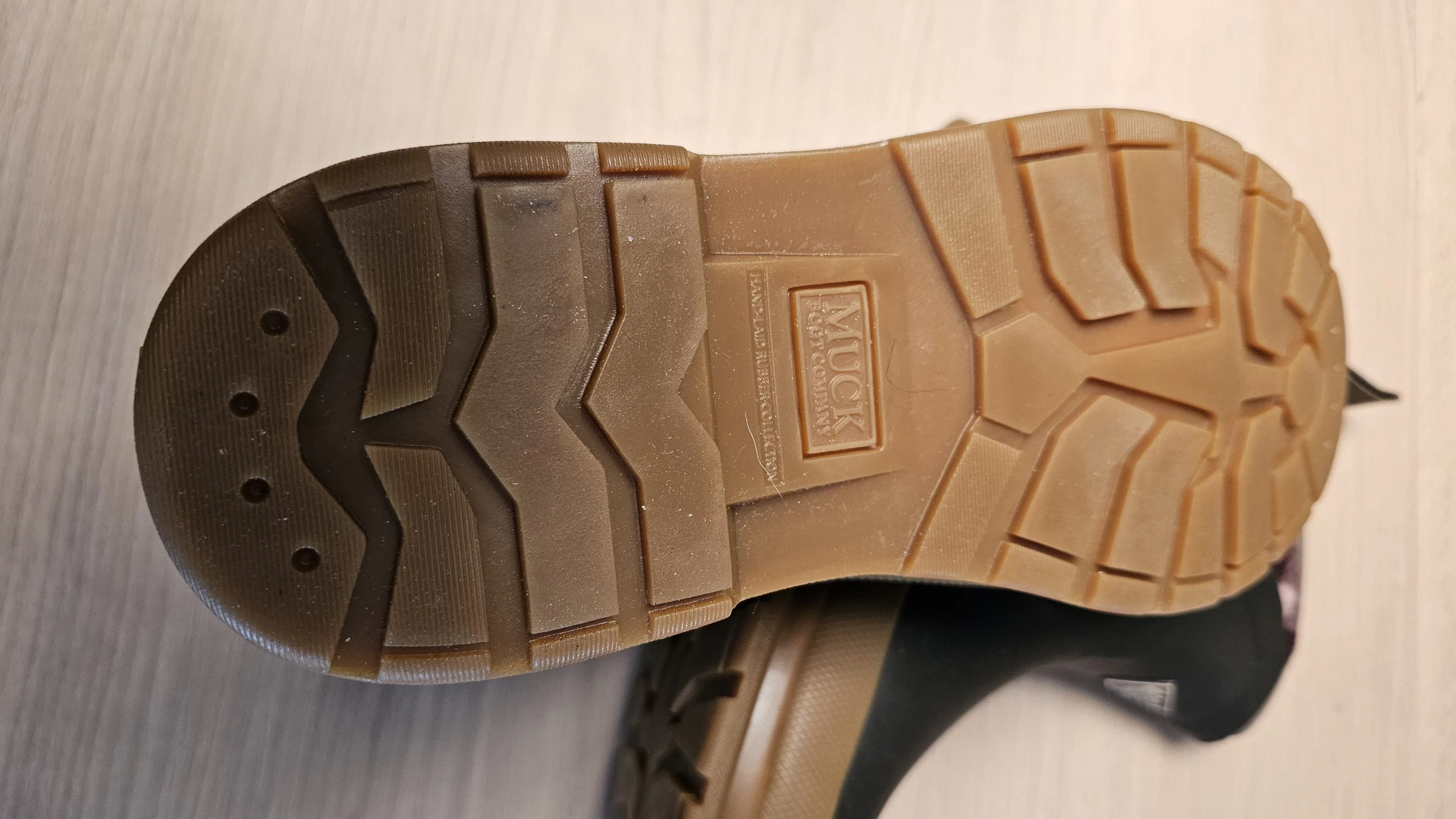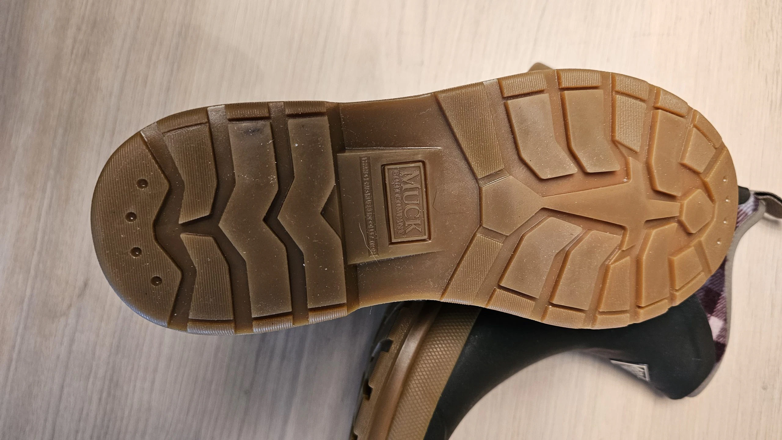 Der Ersteindruck überzeugt mit einer hochwertigen Gummi-/Neopren-Kombination in Braun/Karomuster – die Oberfläche wirkt glatt, die Nähte sauber verarbeitet. Der Schuh wirkt robust, das Material ist dick und hochwertig. Leichter Neopren-Geruch ist zu erwarten, verfliegt jedoch schnell. Die Anziehlasche ist stabil befestigt und fügt sich dezent in das Design ein. Insgesamt macht das Modell optisch und haptisch einen sehr soliden Eindruck.