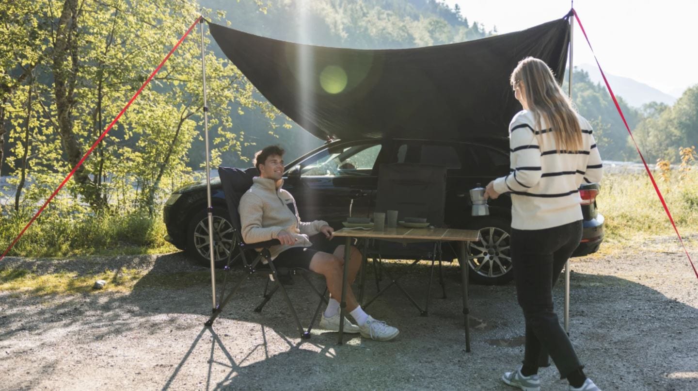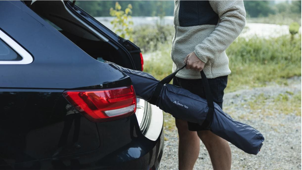 Das qeedo Motor Tarp Car ist vom Packmaß sehr kompakt und mit 3 kg auch leicht. Es ist super schnell am Auto angebracht und bietet mit 250 x 400 cm ausreichend Schutz vor Sonne und Regen. Das gesamte Material ist sehr hochwertig und robust. Dass es unter dem Tarp bei über 30 Grad recht warm wurde, überraschte etwas.