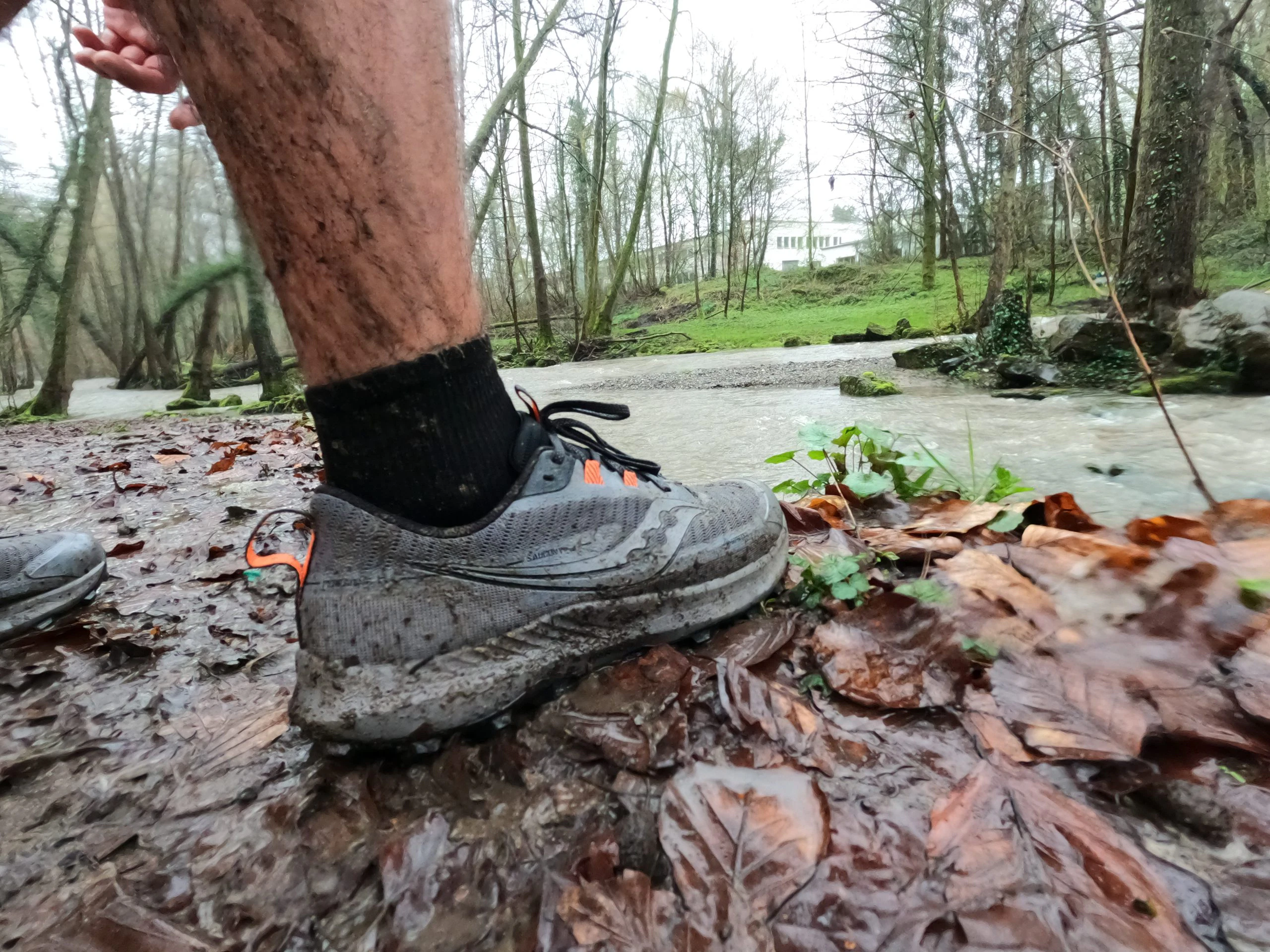 Hasret ist den Peregrine 13 GTX sehr gerne gelaufen. Besonders in der kalten und nassen Jahreszeit machte die GORE-TEX-Beschichtung ihren Job. Die Füße blieben trocken. Wenn dann aber doch Wasser über die Knöchel in die Schuhe reinkam, war die Atmungsaktivität trotz der Beschichtung ausreichend gegeben. Man hatte nicht das Gefühl, dass man in einer Pfütze läuft, sondern der Schuh führte das Wasser gut ab und war auch atmungsaktiv genug. Was Hasret auch gefiel, war, dass der Peregrine 13 GTX trotz der Beschichtung vom Material her gar nicht steif war, sondern immer noch flexibel genug. Der Peregrine 13 GTX wurde von unserem Tester sowohl auf langen (bis 4 h) als auch auf kurzen Läufen gelaufen. Besonders die Agilität und die Direktheit des Schuhs machten auf den Trails sehr viel Spaß. Nach 100 Kilometern gibt es an der Sohle nahezu keine Verschleißerscheinungen, was ebenfalls positiv ist.