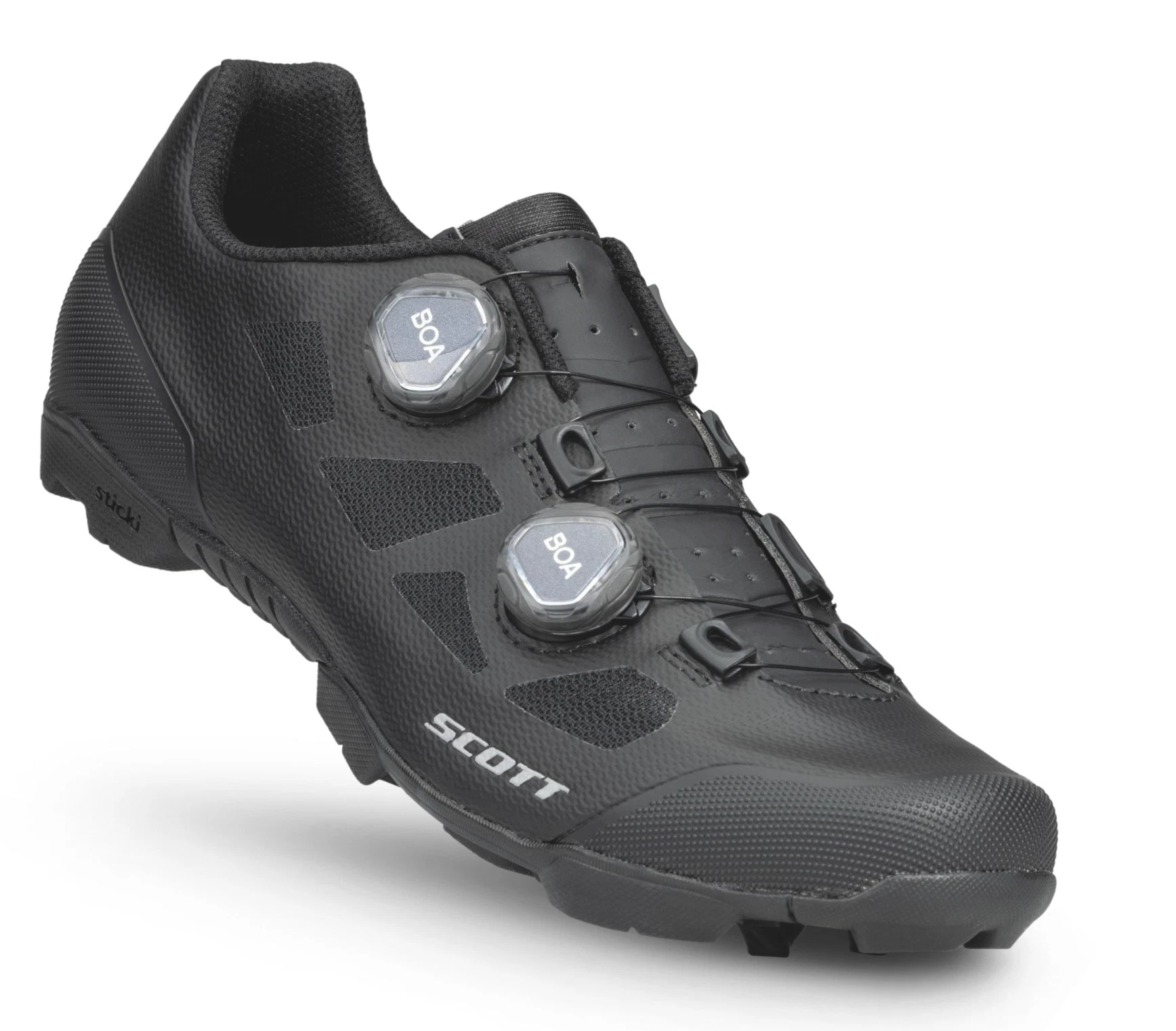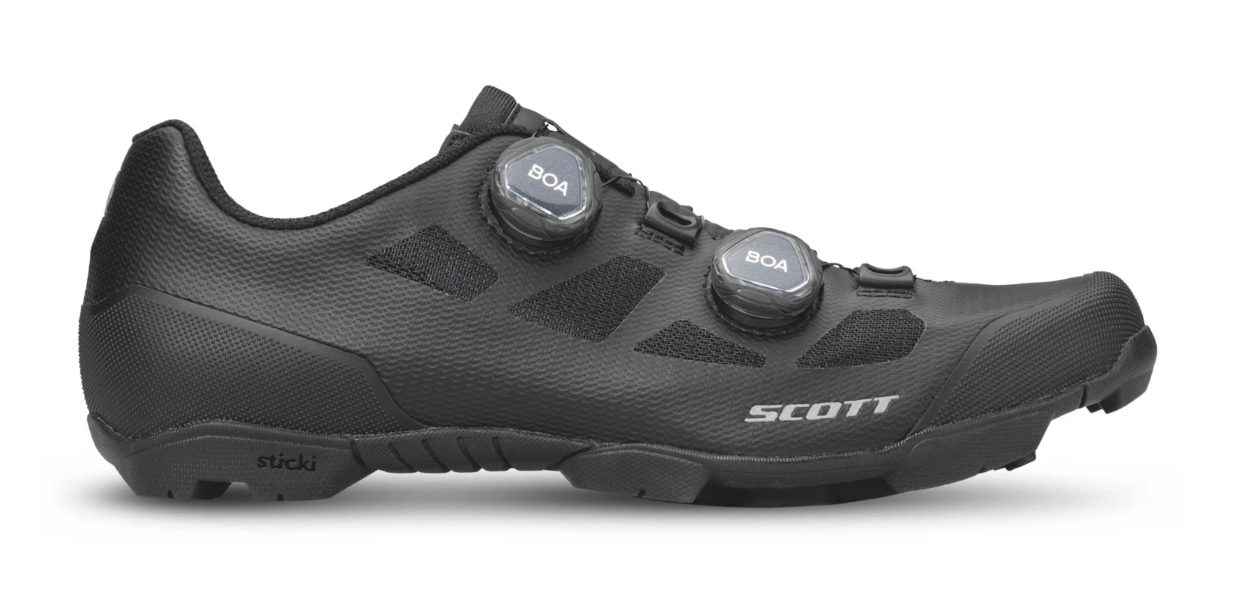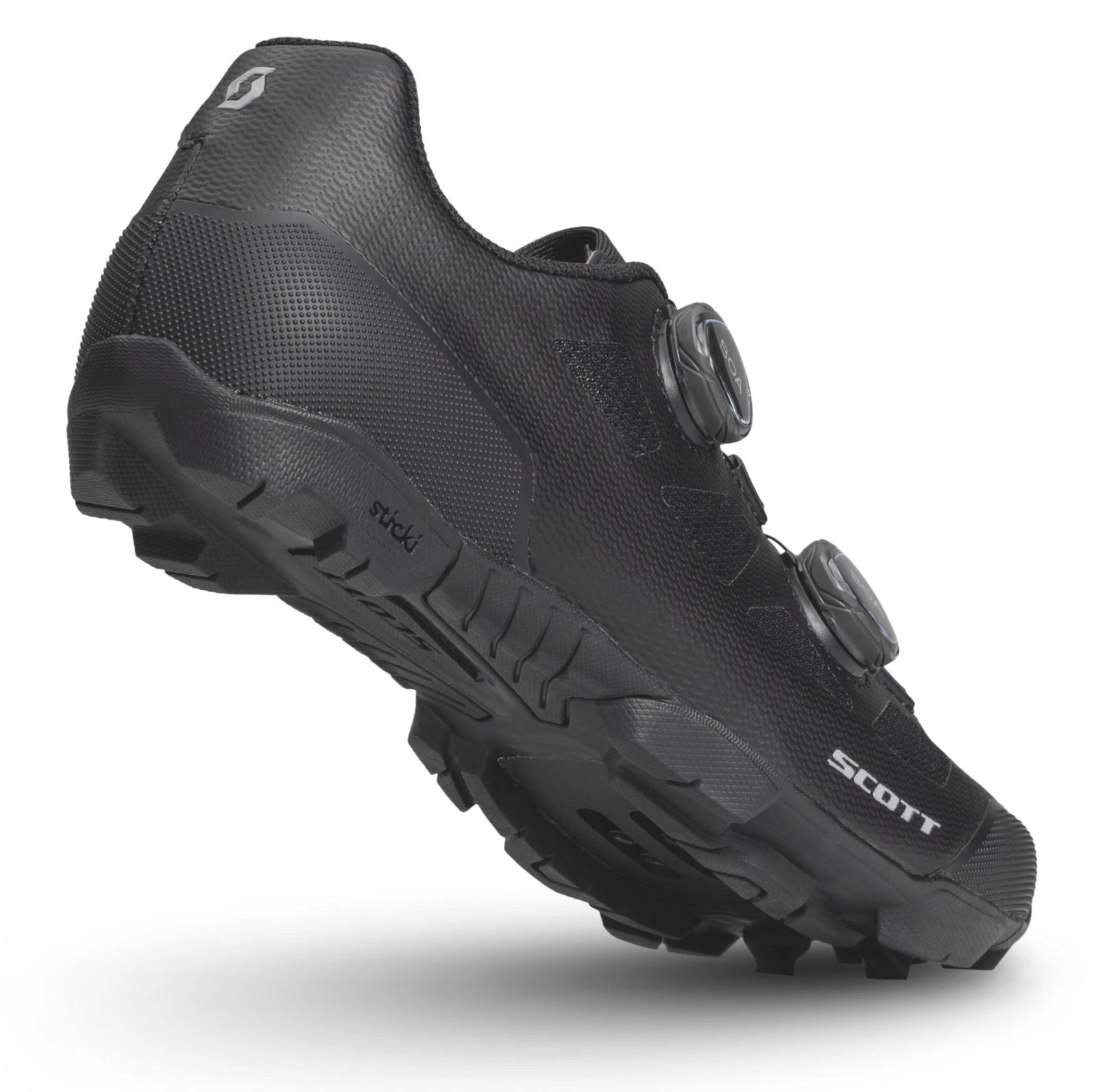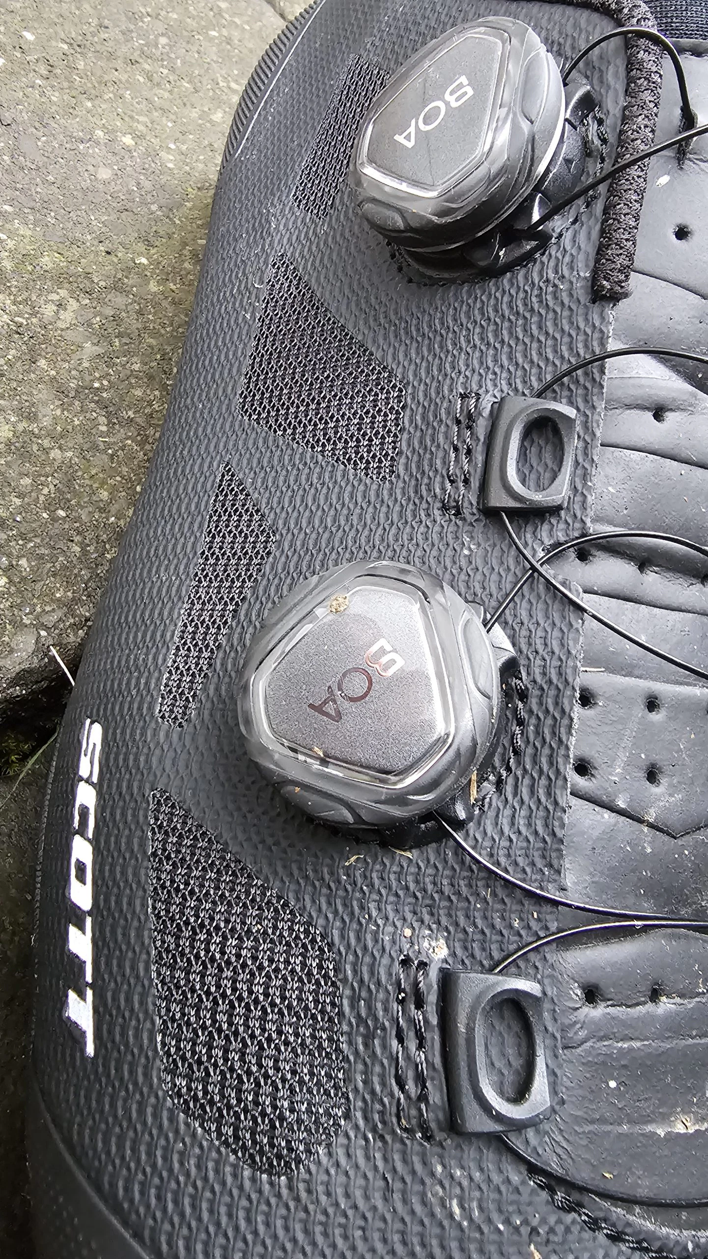 Schon beim Auspacken macht der SCOTT MTB Vertec einen sehr hochwertigen Eindruck. Die komplett schwarze Optik verleiht dem Schuh ein edles, unaufdringliches Design, das sowohl sportlich als auch clean wirkt. Besonders auffällig: das doppelte BOA®-System, das sofort den Anspruch an Präzision und Kontrolle unterstreicht. Die Materialien fühlen sich robust und gleichzeitig angenehm an – keine harten Kanten, keine sichtbaren Verarbeitungsmängel. Nähte und Übergänge sind sauber verarbeitet, das Obermaterial wirkt langlebig und funktional. Insgesamt vermittelt der Schuh schon auf den ersten Blick, dass er für harte Einsätze gebaut ist.