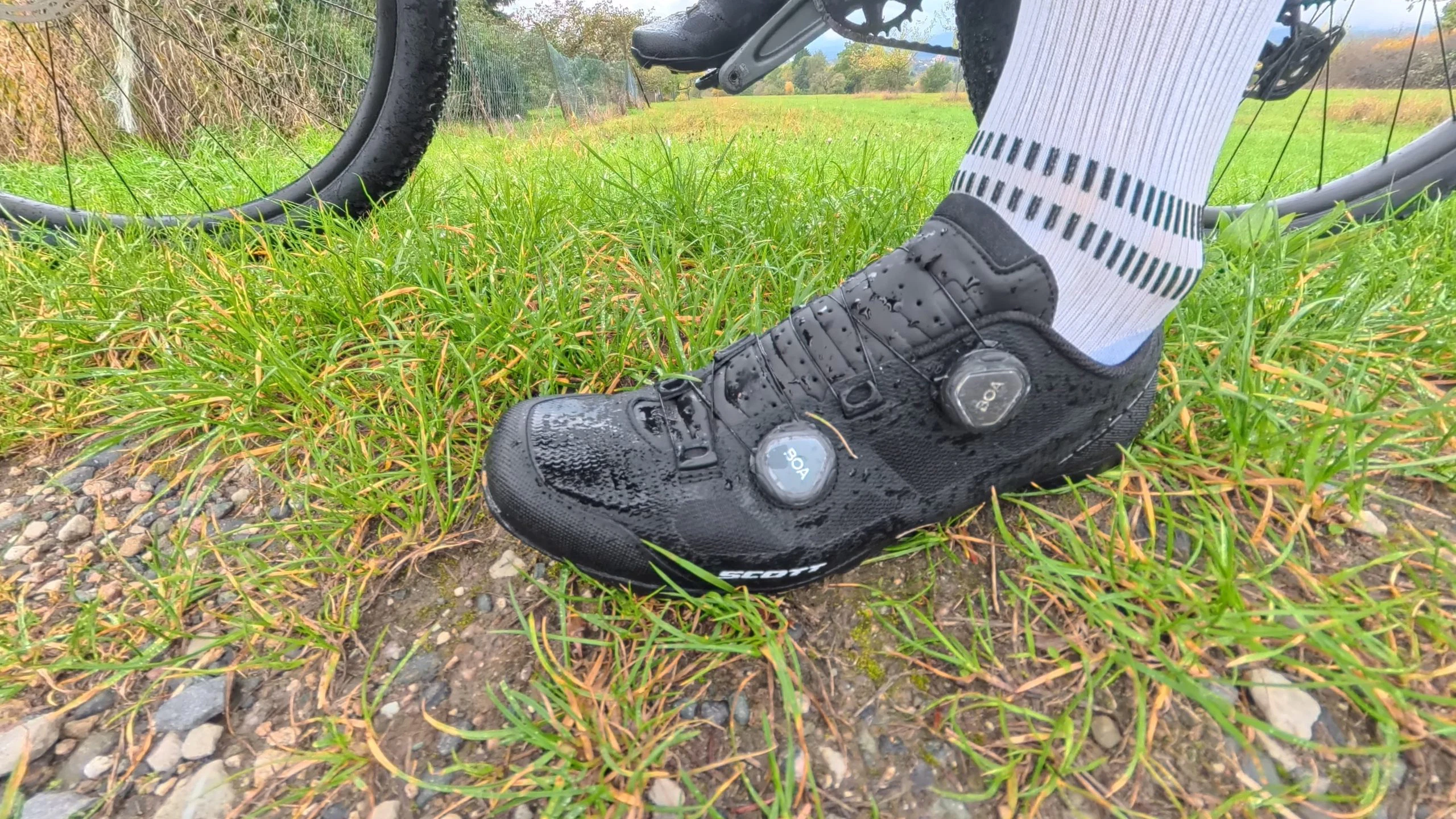 In Größe 47 passte der SCOTT MTB Vertec bei Björn überraschend gut – und das trotz eher anspruchsvoller Fußform. Der Schuh sitzt insgesamt fest und sicher, ohne unangenehme Druckstellen zu erzeugen. Lediglich im Fersenbereich wäre etwas mehr Breite wünschenswert, hier könnte der Schuh für etwas mehr Komfort sorgen. Das doppelte BOA®-System überzeugt hingegen auf ganzer Linie: Es lässt sich präzise und fein dosiert einstellen, hält die gewählte Spannung zuverlässig und erlaubt auch während der Fahrt schnelle Anpassungen – ein klarer Pluspunkt bei wechselndem Gelände oder langen Touren.
