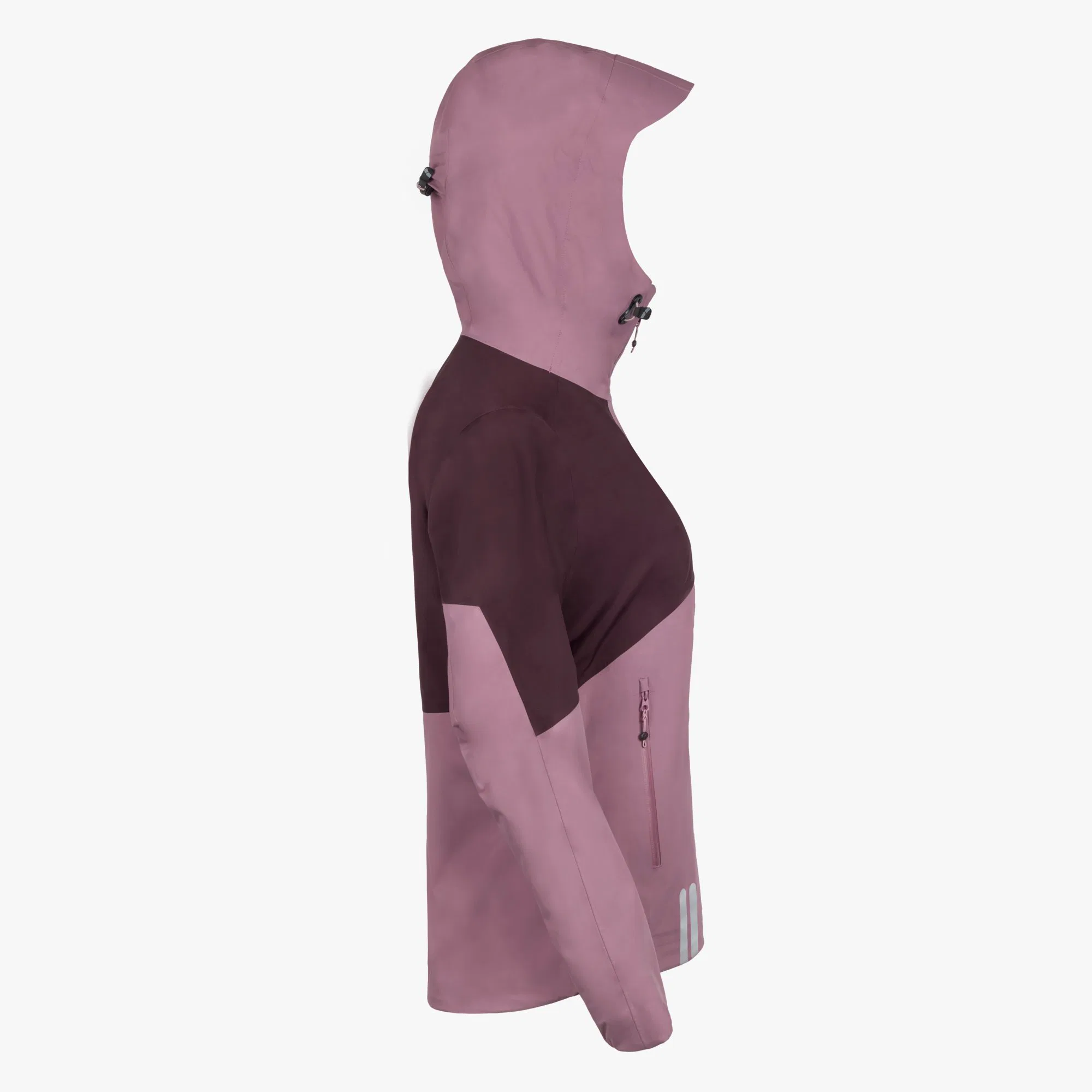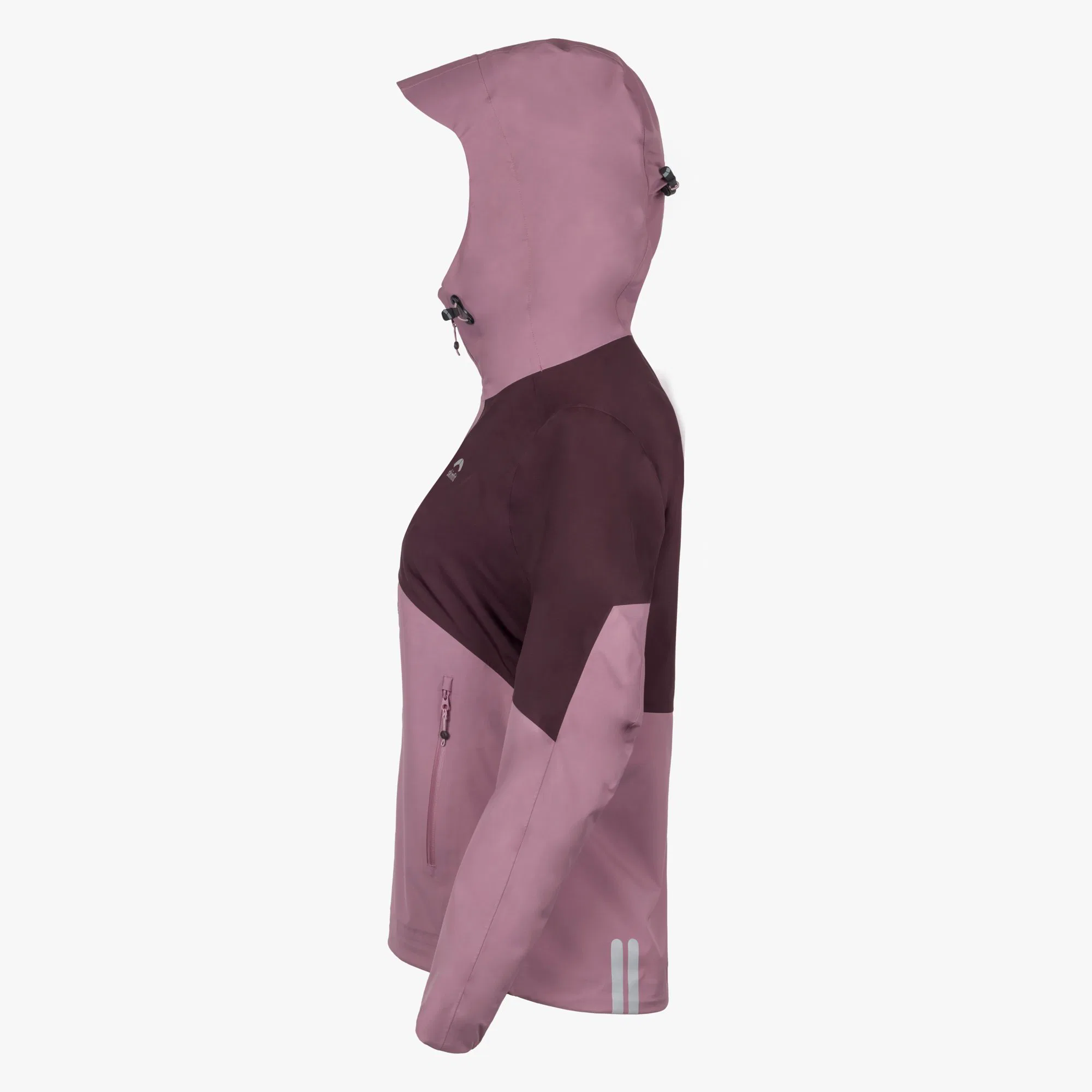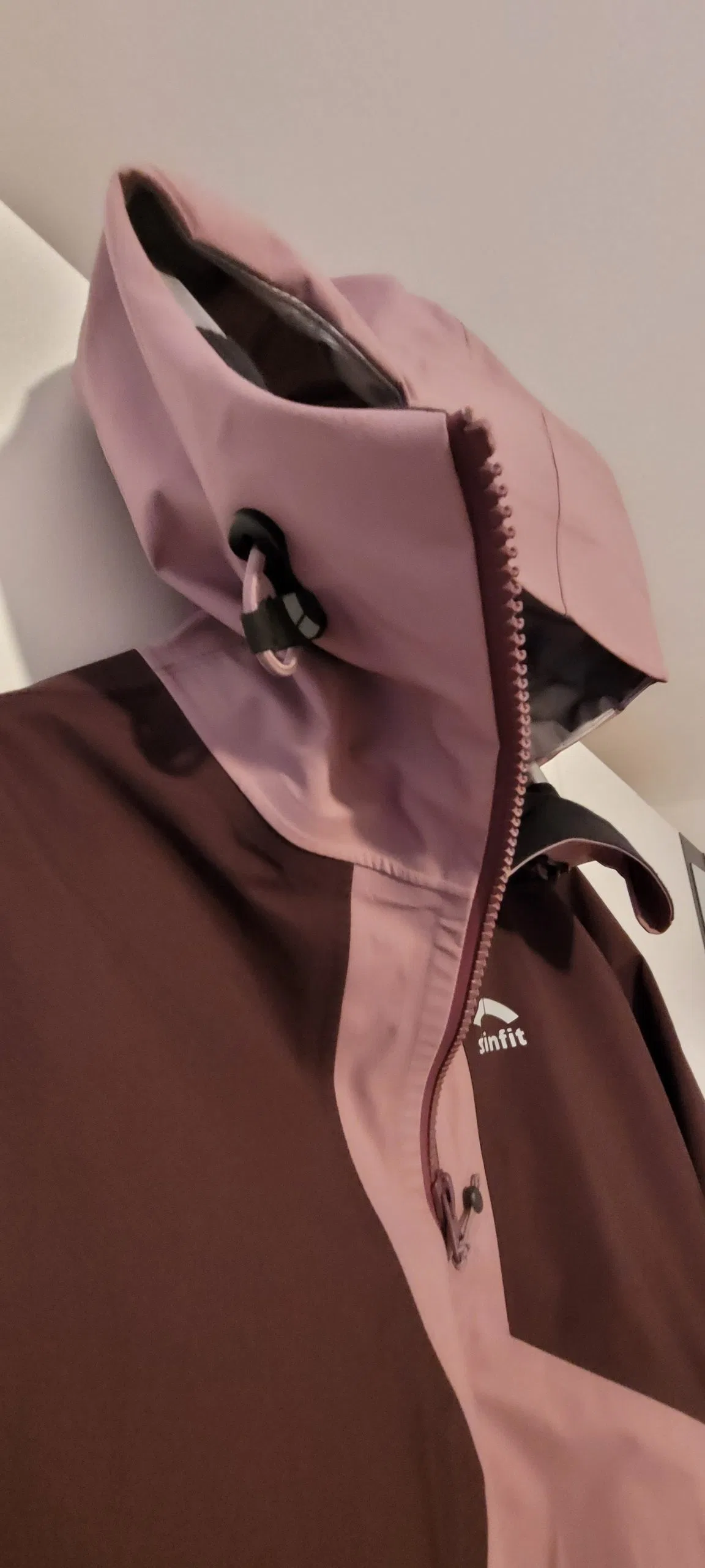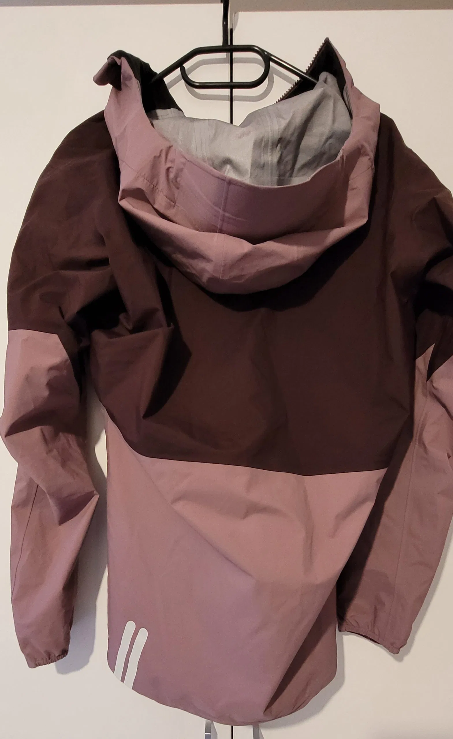 Die Damenvariante der Vermunt Hardshell Jacke kommt in der Farbe „Summersweet“ zur Testerin. Diese ist eine Kombination aus einem hellen und dunkleren Lila. Lena gefällt dieses Farbmodell sehr gut und sie lässt sich auch gut mit vielen anderen Farben kombinieren. Die Herrenvariante der Jacke, auch als Unisex Modell geeignet, bietet Skinfit dagegen in vier Farbvarianten an. Zur Auswahl stehen eine Kombination aus Dunkelgrün und Schwarz oder Schwarz, Sand und Senffarben. Das Skinfit-Logo ist gut sichtbar, aber dennoch dezent auf der linken Brust aufgedruckt. Dieser Aufdruck fungiert zugleich als Reflektor. Zudem sind am rechten Jackenrand vorne und an der Rückseite am linken Jackenrand jeweils weitere Reflektordrucke angebracht. Die Jacke ist mit zwei seitlichen Taschen ausgestattet, die sich mittels Reißverschluss gut verschließen lassen und relativ viel Platz bieten. Die Hardshell Jacke macht einen sehr hochwertigen Eindruck und alle Nähte scheinen sehr gut verarbeitet.