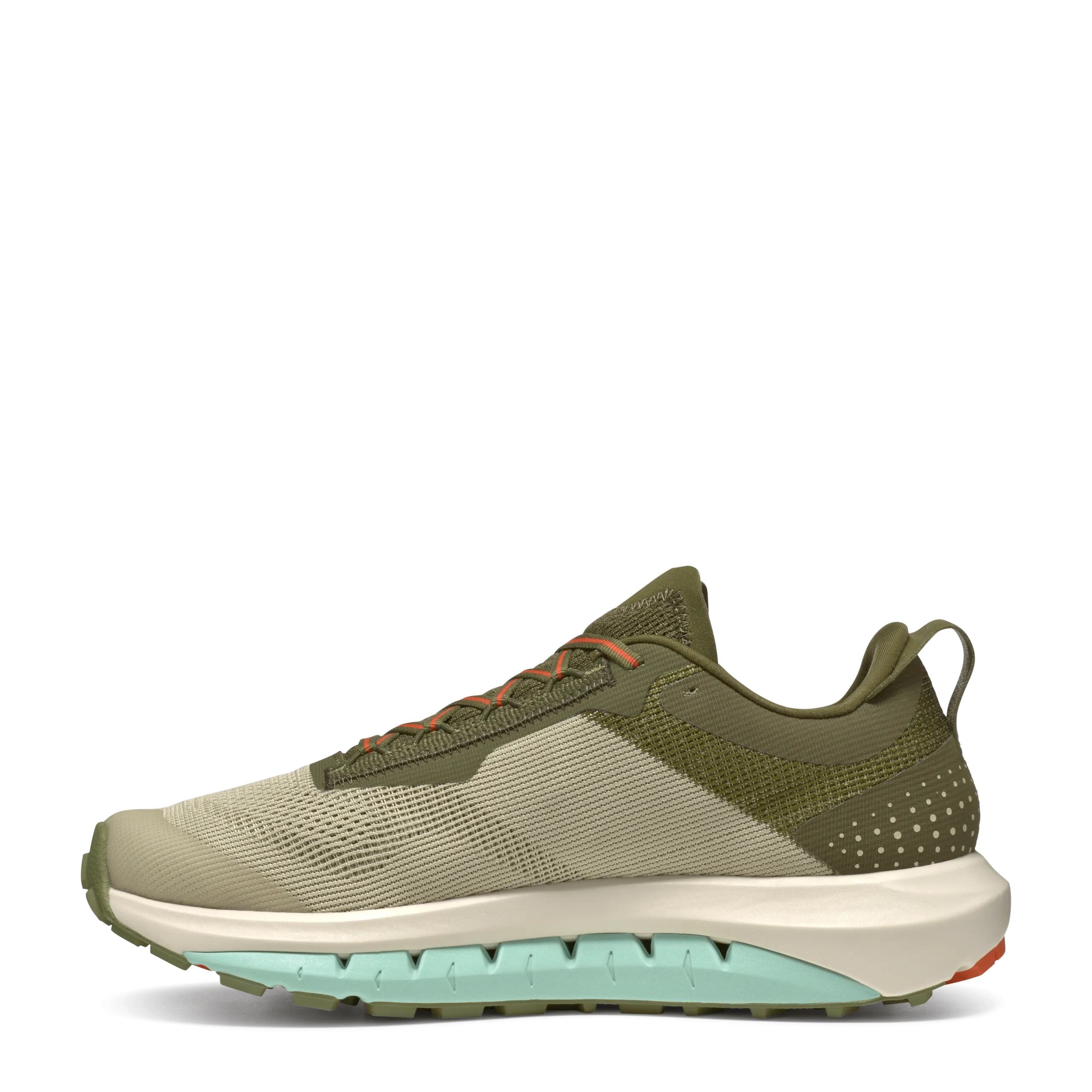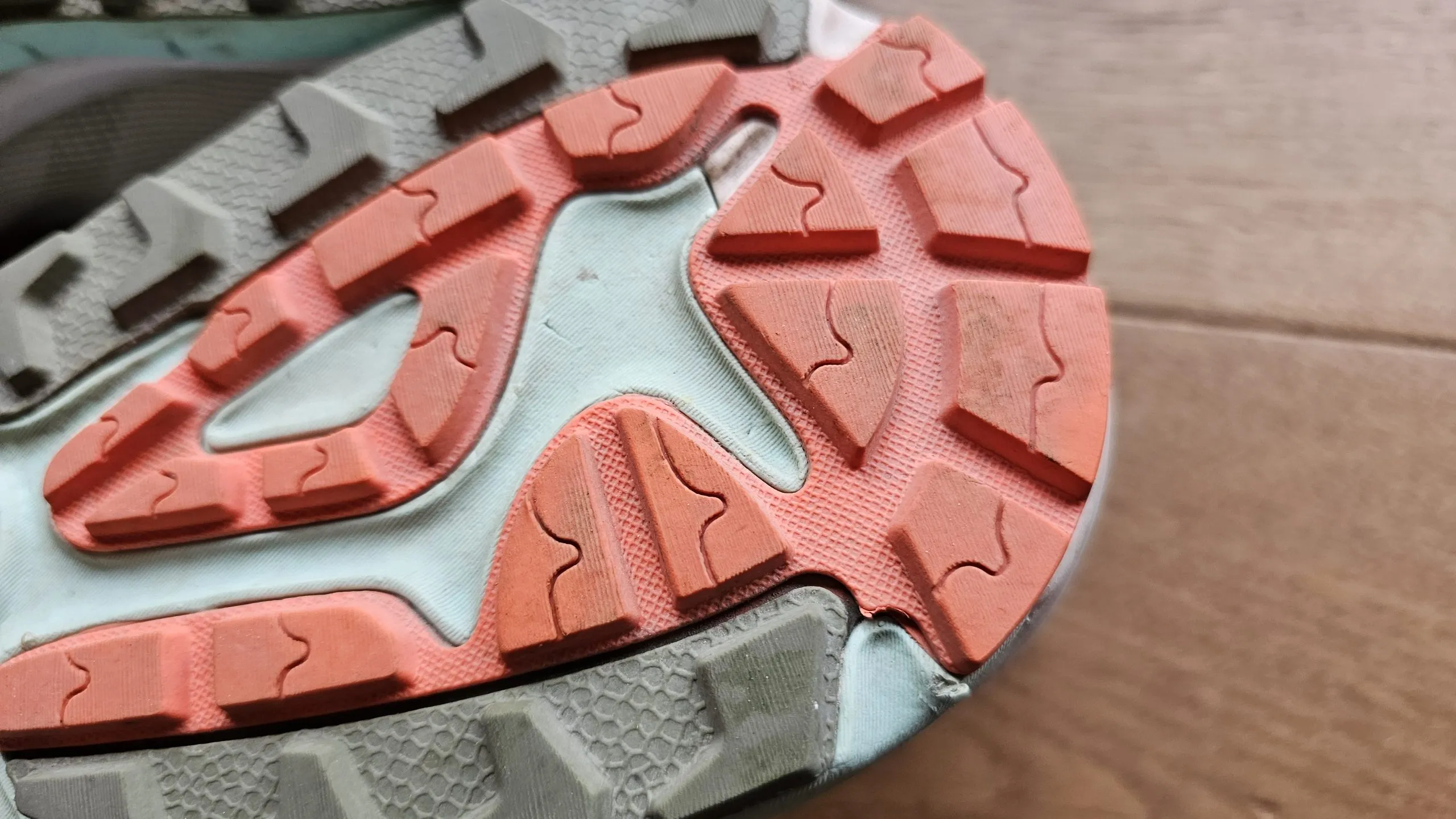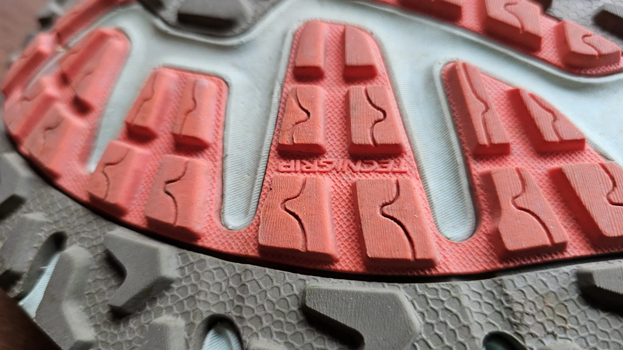 Die Außensohle mit 3,5 mm Stollen und dem Tecnigrip Alpha Compound zeigte sich im Test als zuverlässiger Begleiter auf trockenen Wegen. Die breite Sohlenbasis vermittelt ein stabiles Laufgefühl, das auch bei unebenem Untergrund Sicherheit gibt. In sehr nassen Bedingungen kann es jedoch hilfreich sein, einen spezialisierten Schuh mit gröberem Profil zu wählen.