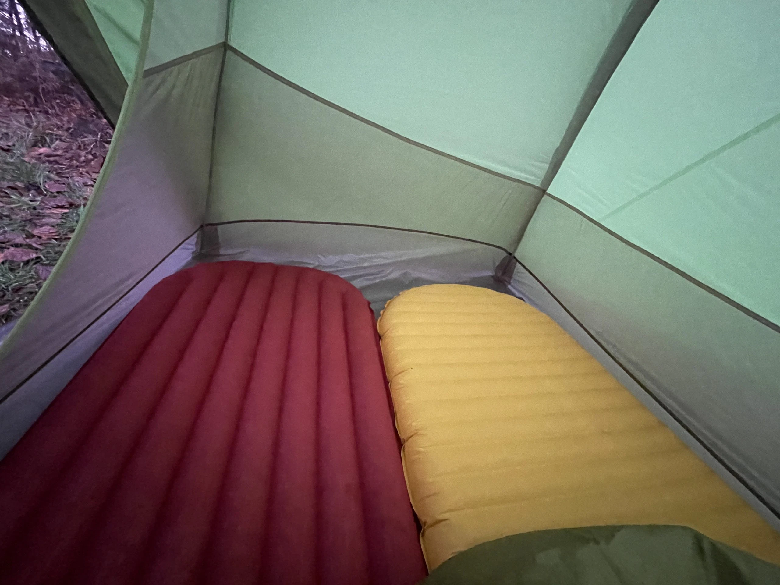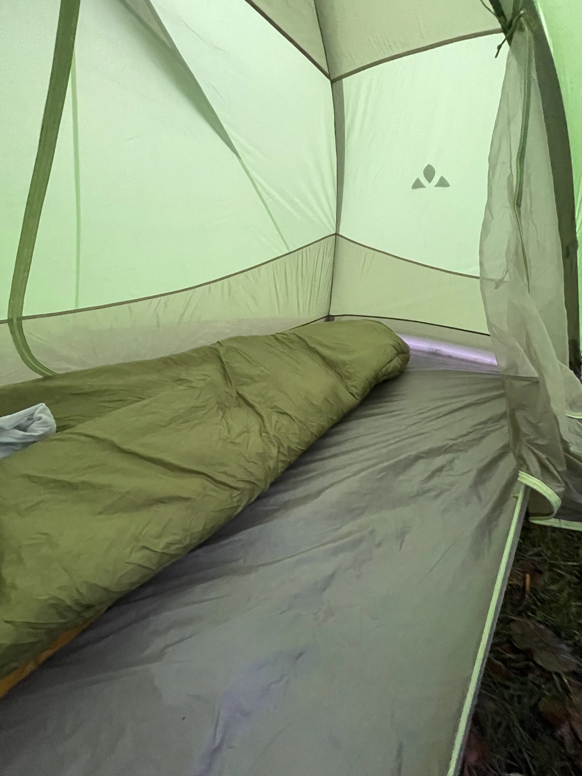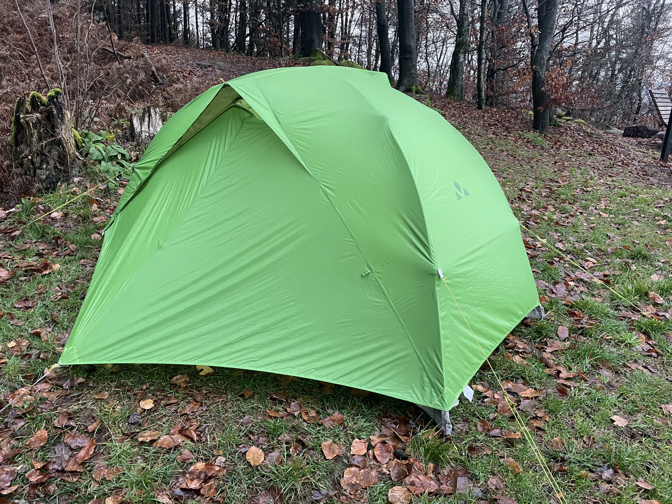 Christian hat das Vaude Space Seamless 1-2 Personen an sehr regnerischen und windigen Tagen bei seinen Trekking-Touren in den Pfälzer Wald mitgenommen. Hierbei hat er sich absichtlich auf Lichtungen niedergelassen, um der Witterung noch stärker ausgesetzt zu sein und das Space Seamless herauszufordern. Da Christian gemeinsam mit einer weiteren Person (Mann, ca. 1,85 Meter) im Zelt übernachtet hat, konnte er ebenfalls den Wohnkomfort zu zweit austesten.