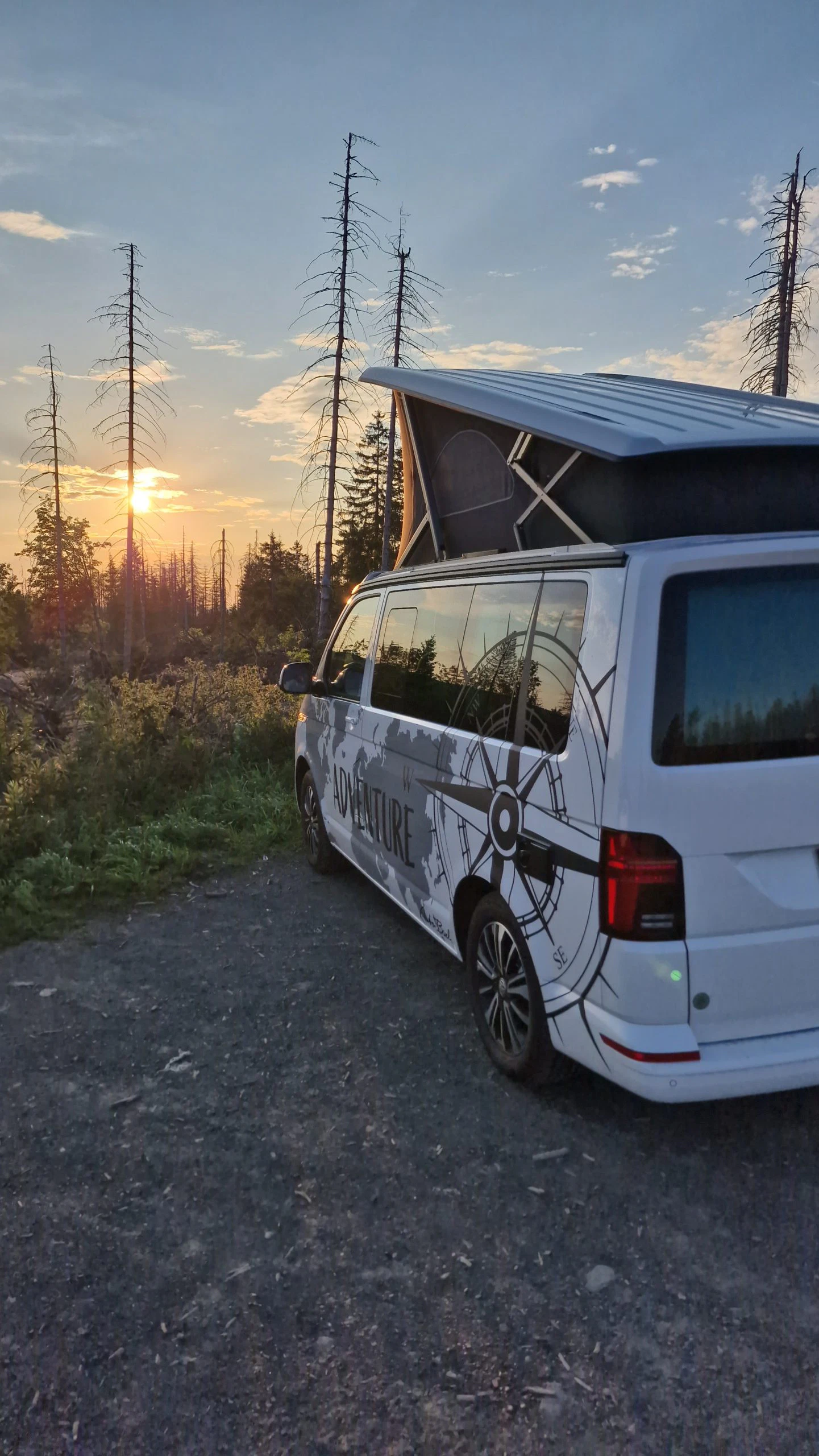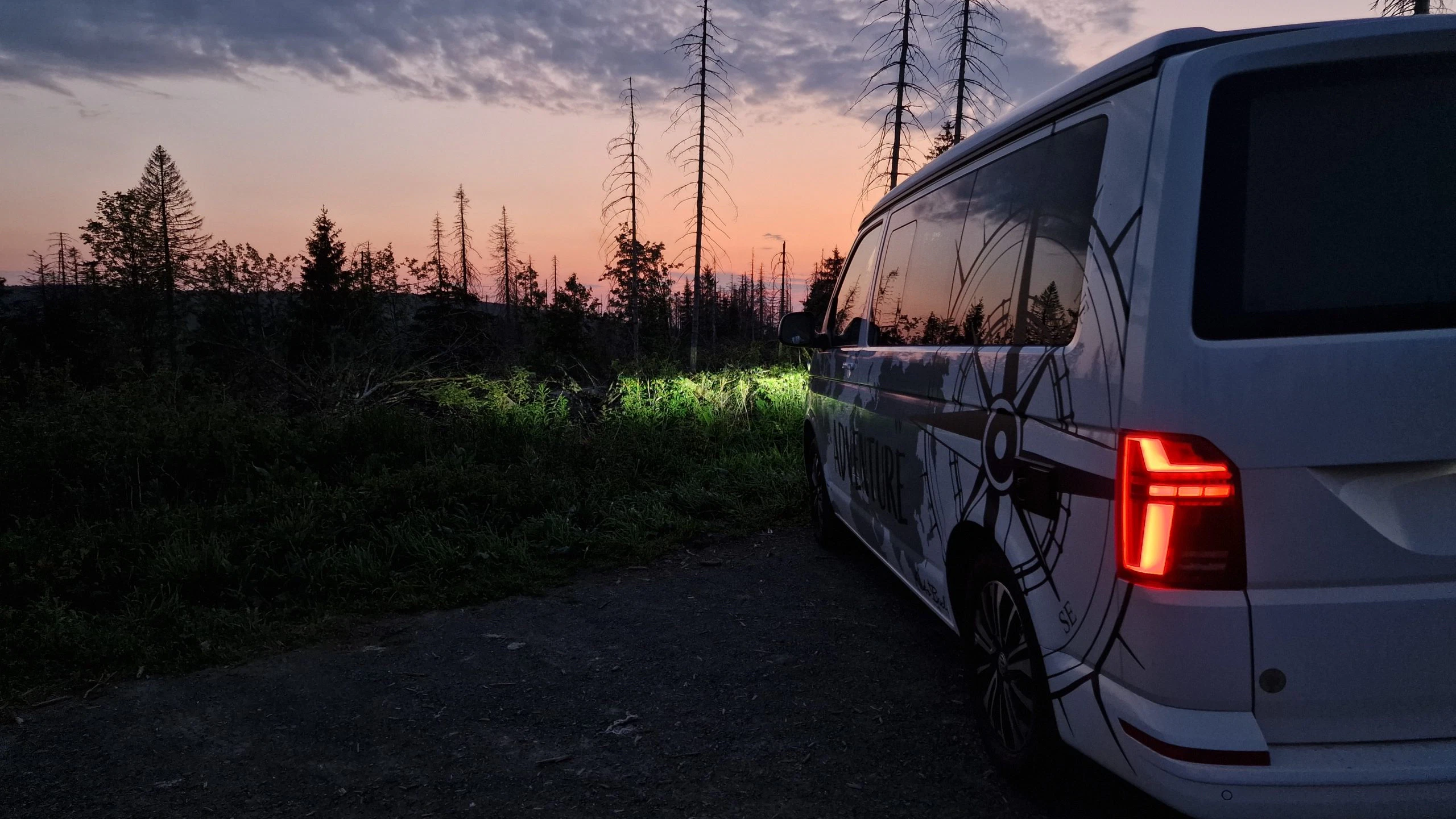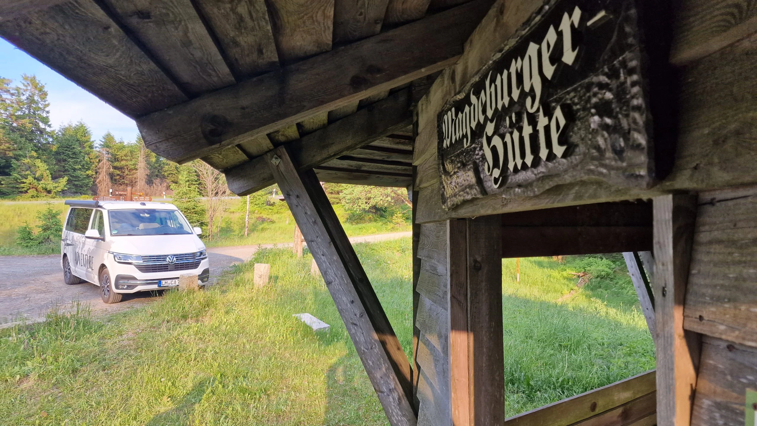 Die erste Nacht mit Zwischenstopp bei Kassel war noch aufregend und viele Dinge waren noch nicht so eingespielt wie im Caddy. In seinem Caddy weiß Björn genau, was wo ist und was wie funktioniert. Das wurde mit dem Bulli von Stellplatz zu Stellplatz besser. Da im Vorfeld der Stellplatz für die Nacht von Donnerstag auf Freitag gebucht wurde, stand ein Ziel der Reise fest, der Rest des Wochenendes war nicht im Vorfeld geplant. Wir wollten einfach spontan entscheiden. Dank der Empfehlung eines guten Freundes, haben wir die beiden weiteren Nächte am Oderteich verbracht. Hier war es tagsüber zwar touristisch gut besucht, allerdings war ab 20 Uhr kaum noch was los und morgens hatte man bis 10 Uhr auch seine Ruhe. So waren wir während die Massen tagsüber um den Oderteich wanderten auf anderen Trampelpfaden im Harz unterwegs und genossen dann die Zeit früh morgens oder spät abends um noch ein Bad im See zu nehmen. Da der Bulli um die Ecke stand, musste man zum Baden außer einem Handtuch nichts mitnehmen. Hier kam bei Björn dann dieses Freiheitsgefühl auf, von dem so viele reden. Es war schon ein Stück Luxus, dieses schöne Plätzchen für sich alleine zu haben.