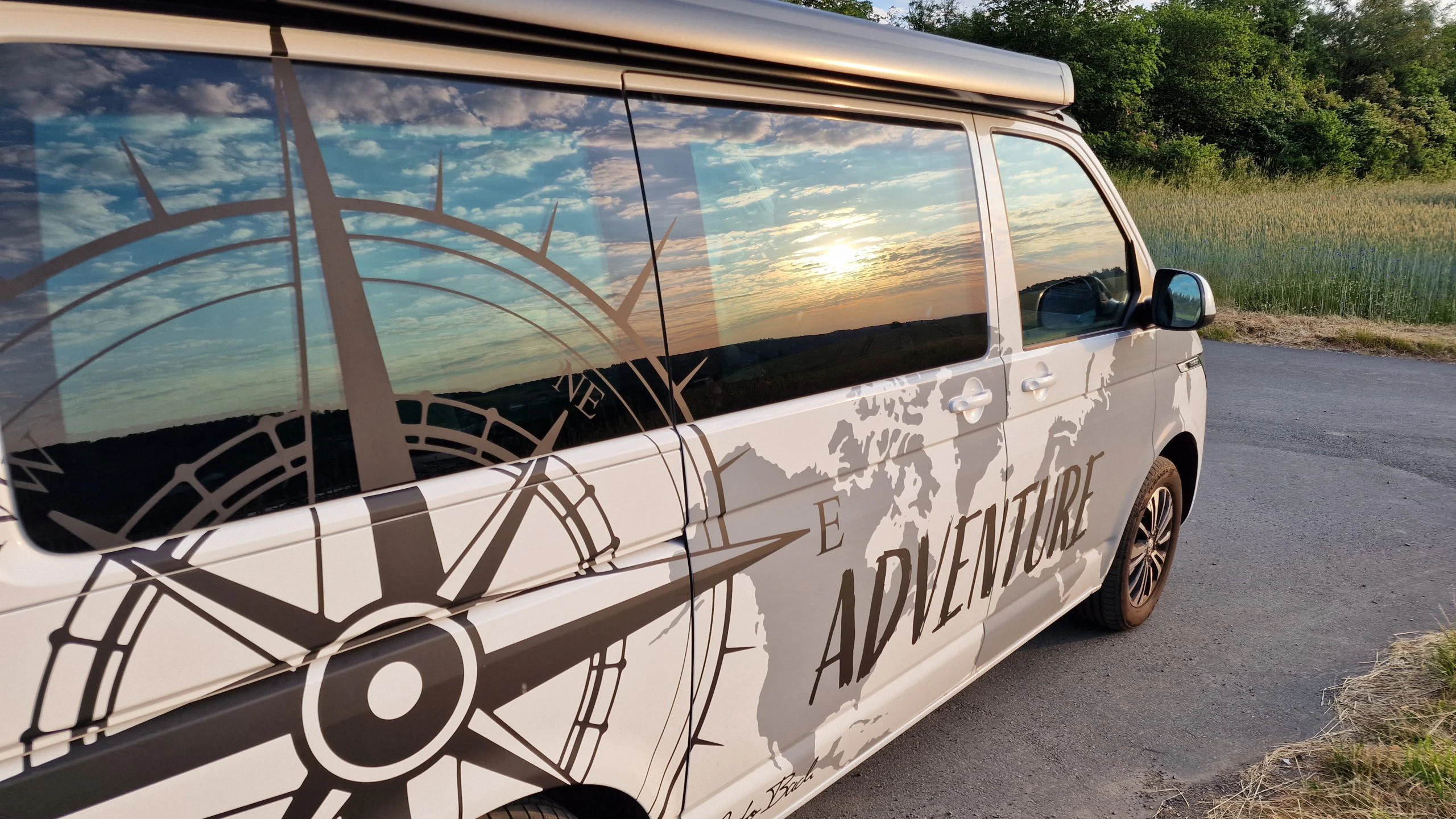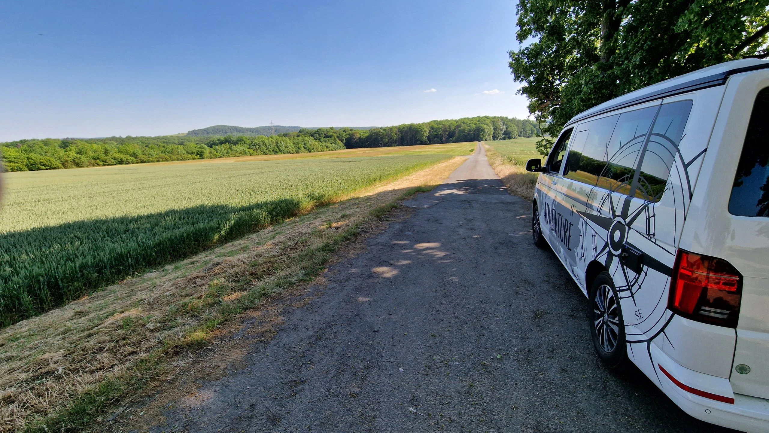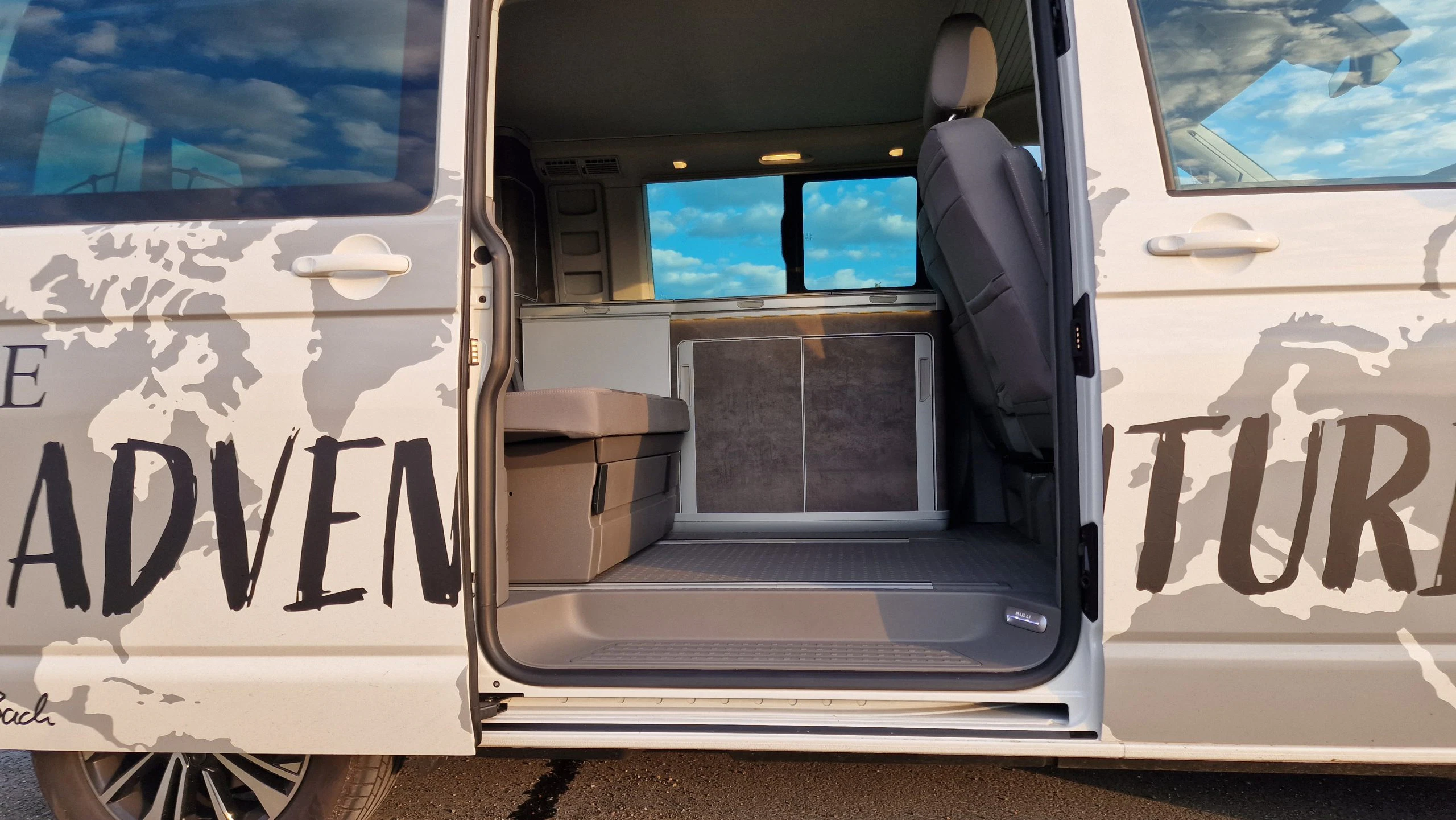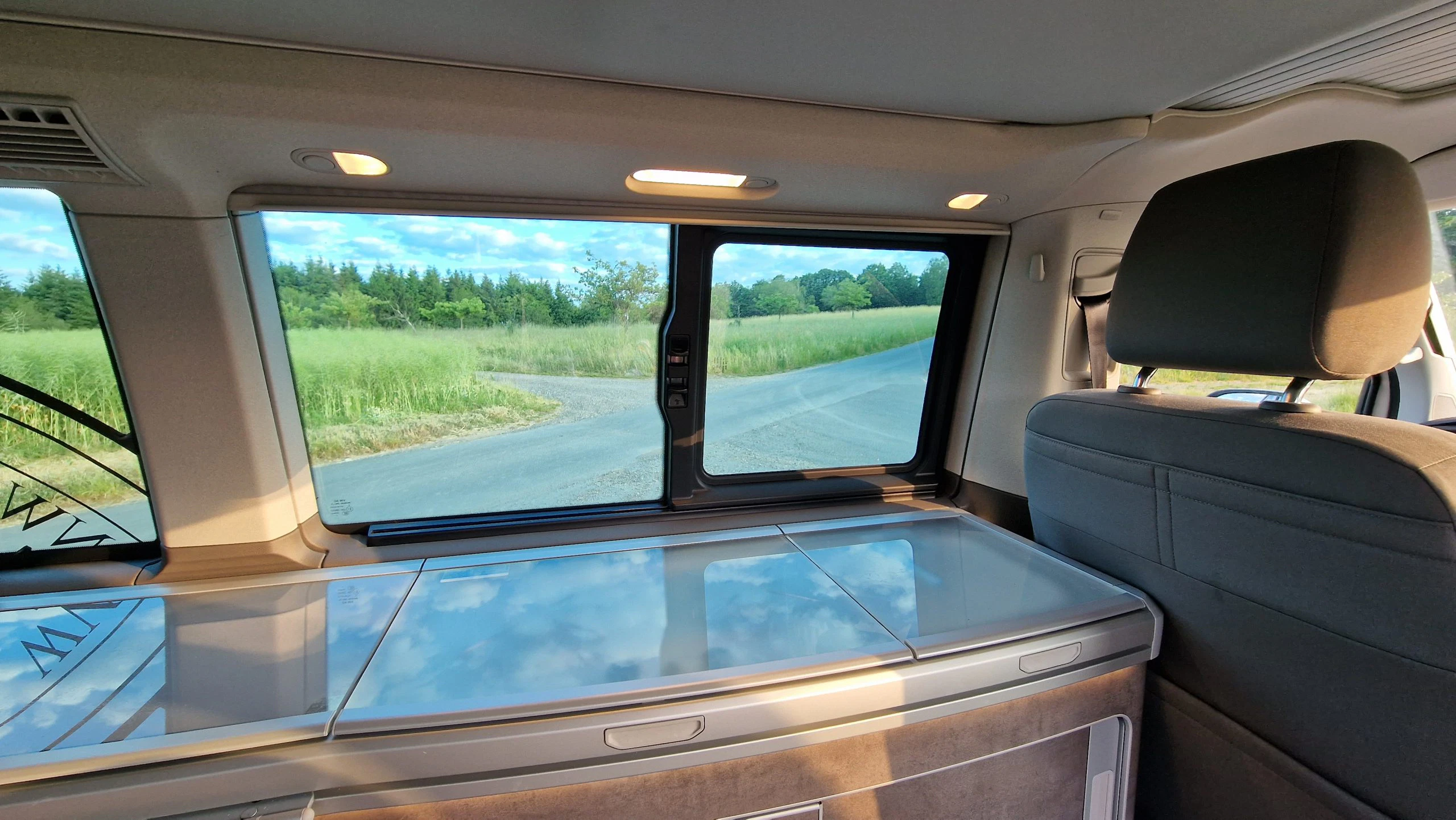 Nach einem gemeinsamen Aus- und Einfahren des Aufstelldachs, wurde der Schalthebel auf D gestellt und los ging die Fahrt. An die Größe des Bulli’s hatten wir uns sofort gewöhnt und die hohe Sitzposition begeisterte direkt.