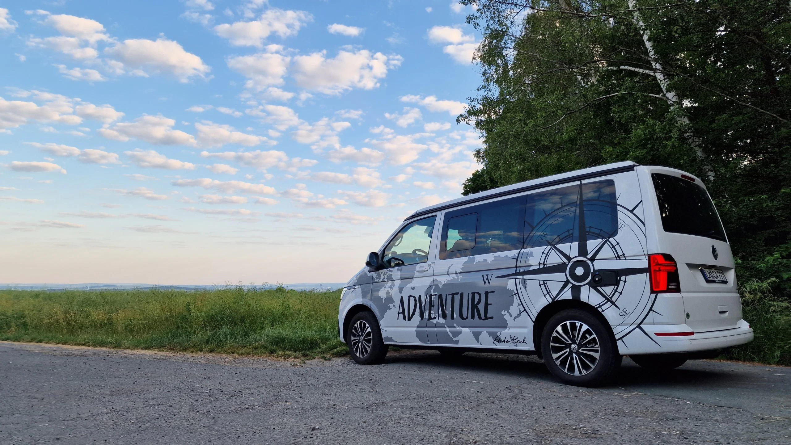 Am Tag der Übergabe war Björn schon sehr nervös, sollte er doch für 5 Tage einen California 6.1 Ocean 2.0 bekommen. Als er im Auto BACH ankam, stand das Testfahrzeug schon frisch geputzt auf dem Hof. Wobei man das Auto gar nicht hätte putzen müssen, denn der Wagen hatte erst 600 km auf dem Tacho. Nach einem kurzen Gespräch mit Herrn Uthe und Regelung der Formalitäten, ging es dann endlich zum Bulli. Herr Uthe meinte noch, dass es für unseren 2m großen Björn vielleicht etwas eng werden könnte, da hinter dem Fahrersitz direkt die Küchenzeile anschließt und der Testwagen über keinen höhenverstellbaren Sitz verfügt. Beim ersten Platznehmen gab es dann aber Erleichterung, Björn hatte ausreichend und bequem Platz im Fahrerraum. Im Cockpit des California fühlte Björn sich auf Anhieb wohl und kam auch sofort gut zurecht, da vieles in der Bedienung seinem Volkswagen CADDY CALIFORNIA gleicht. Dennoch gab es ein paar neue Funktionen , besonders für den Campingmodus, die nach einer kurzen Einweisung von Herr Uthe aber auch einfach zu bedienen waren..
