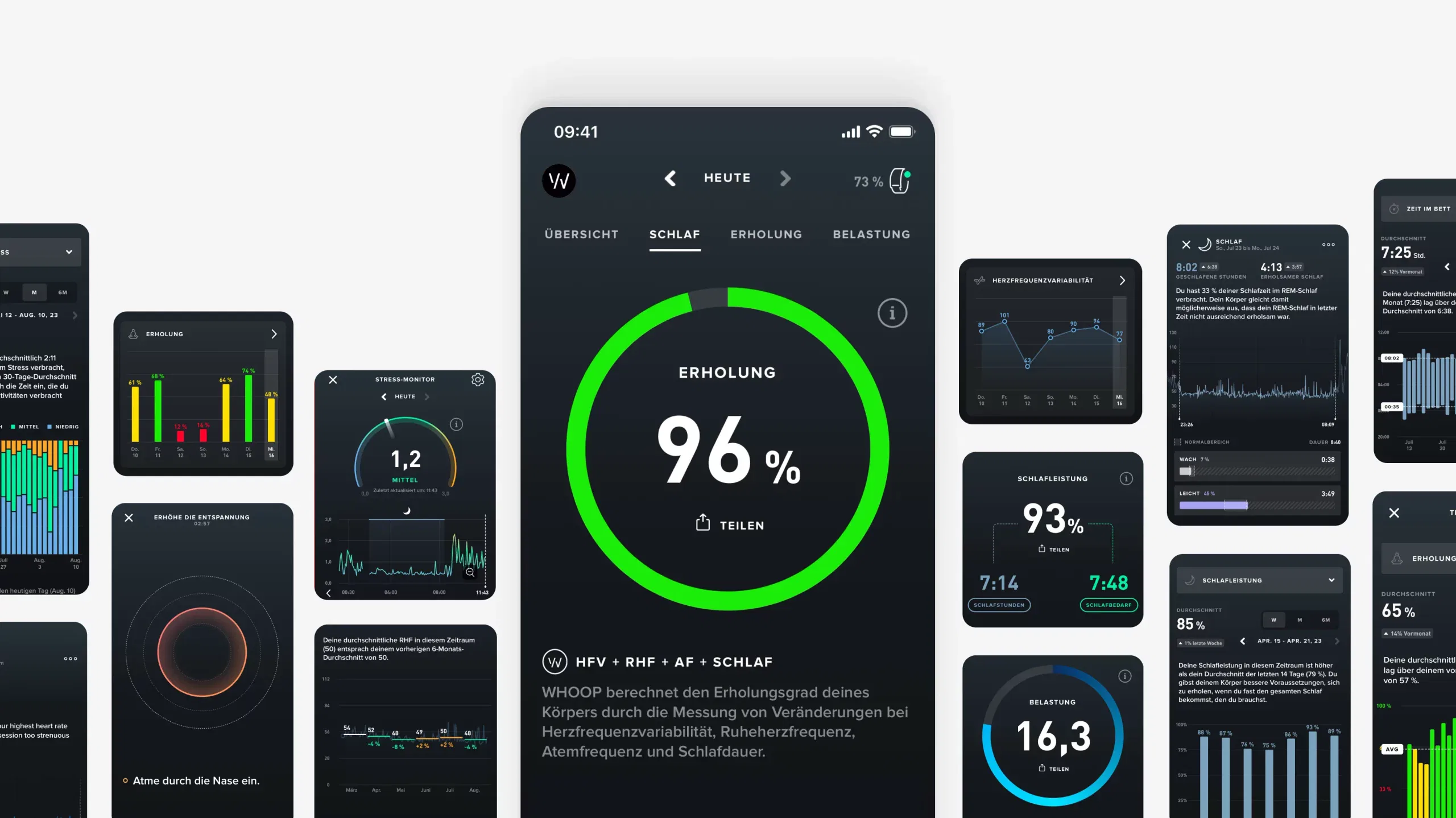 Der Whoop 4.0 konzentriert sich auf drei Hauptbereiche: Erholung, Schlaf und Belastung. Er nutzt verschiedene Sensoren, um Daten zu erfassen, und bietet basierend auf diesen Daten detaillierte Einblicke und Empfehlungen.