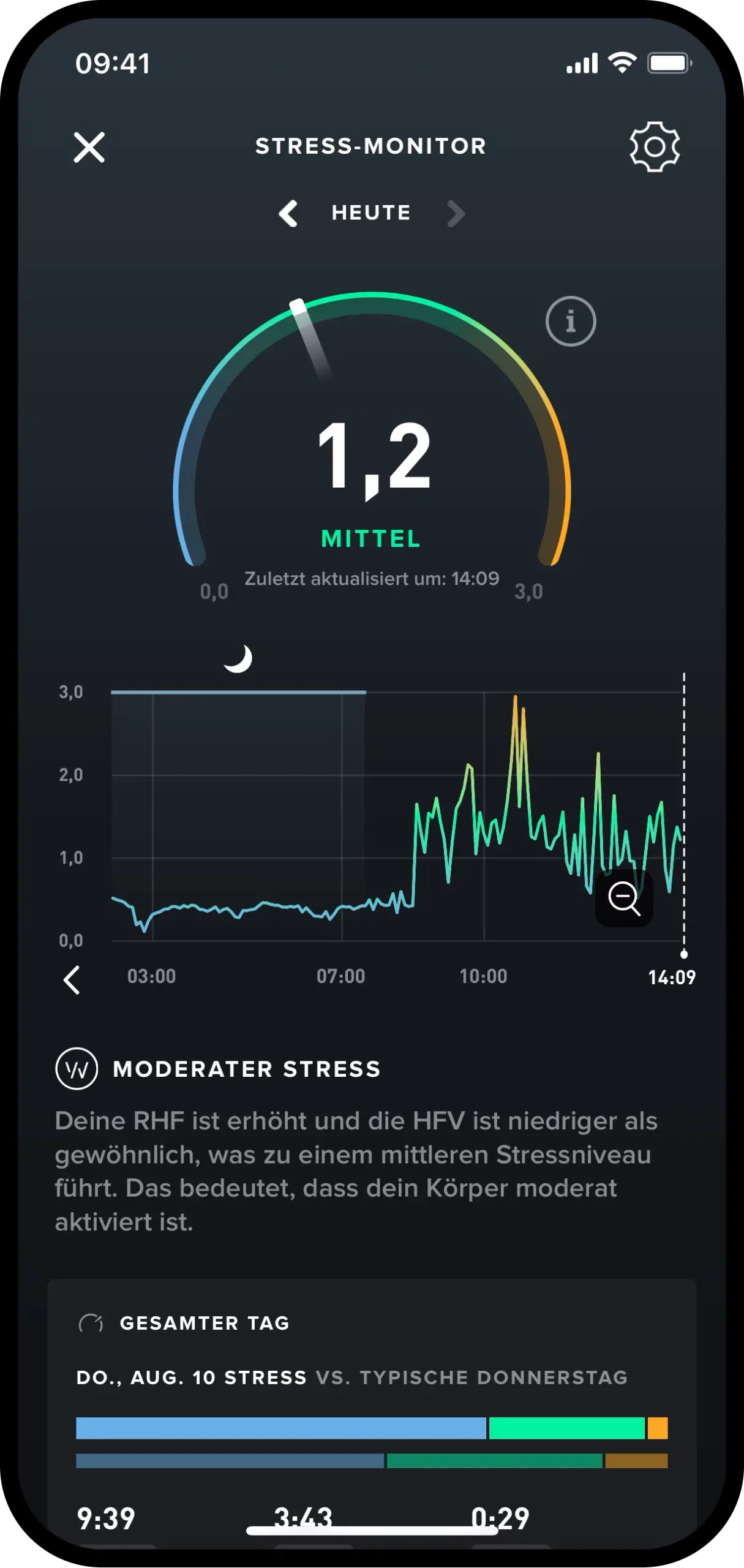 Der Stress Monitor überwacht das tägliche Stressniveau und bietet Strategien zur Stressbewältigung. Er analysiert physiologische Marker wie Herzfrequenz und Atemfrequenz, um das Stressniveau zu bestimmen und gibt Empfehlungen zur Entspannung und Stressbewältigung.
